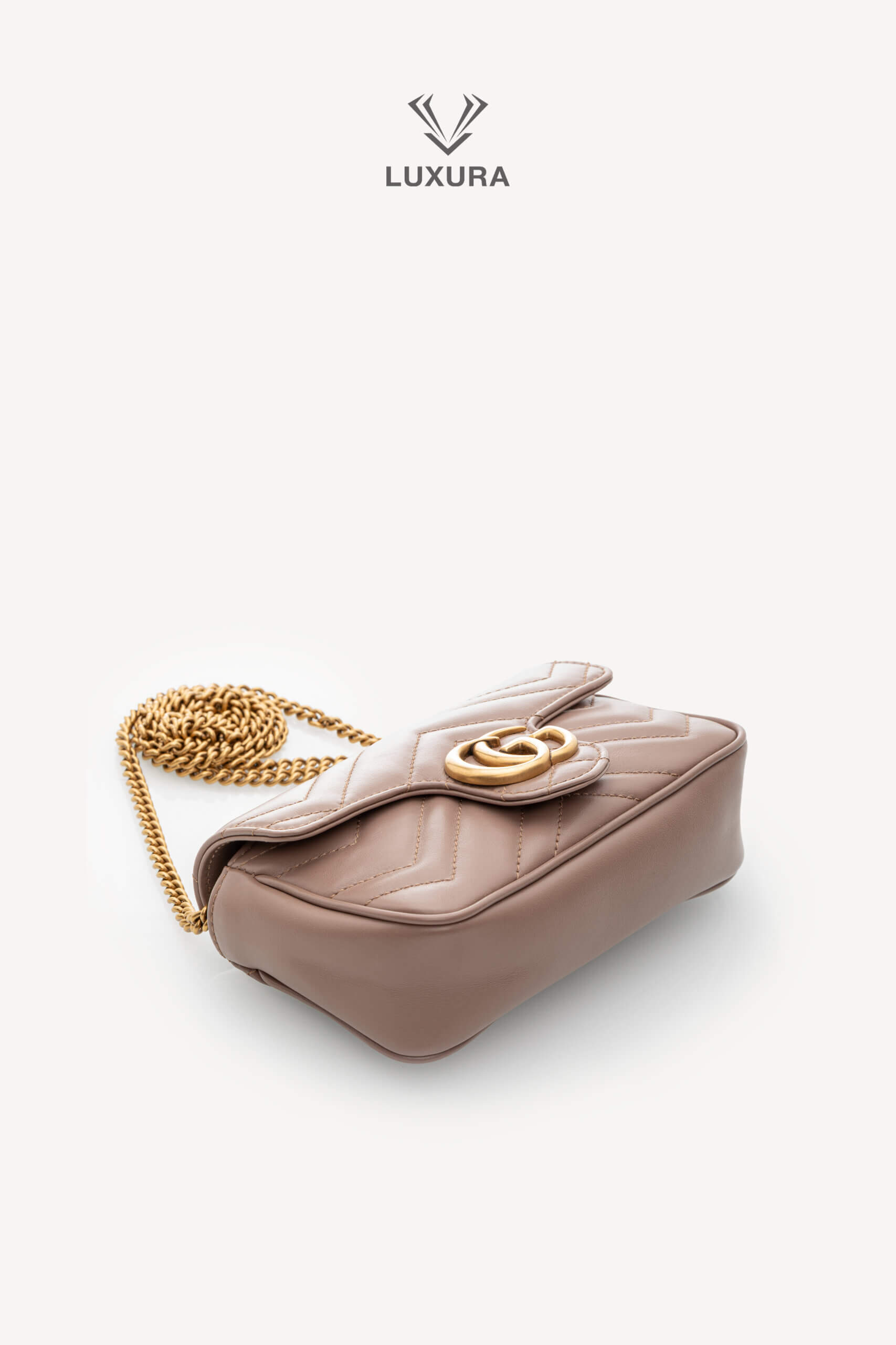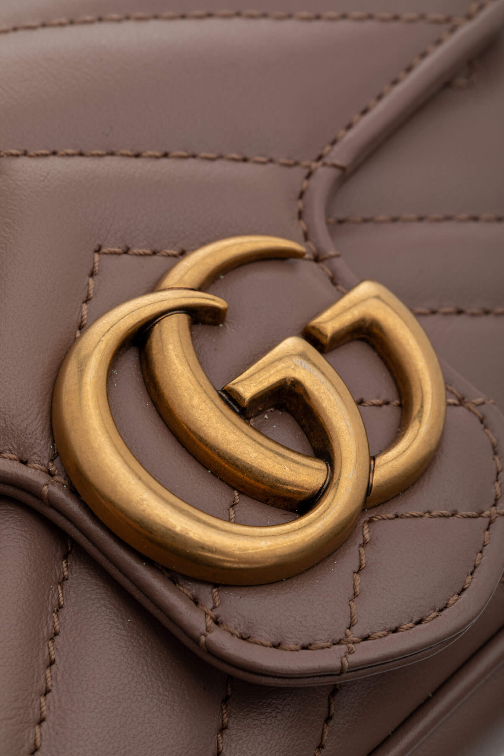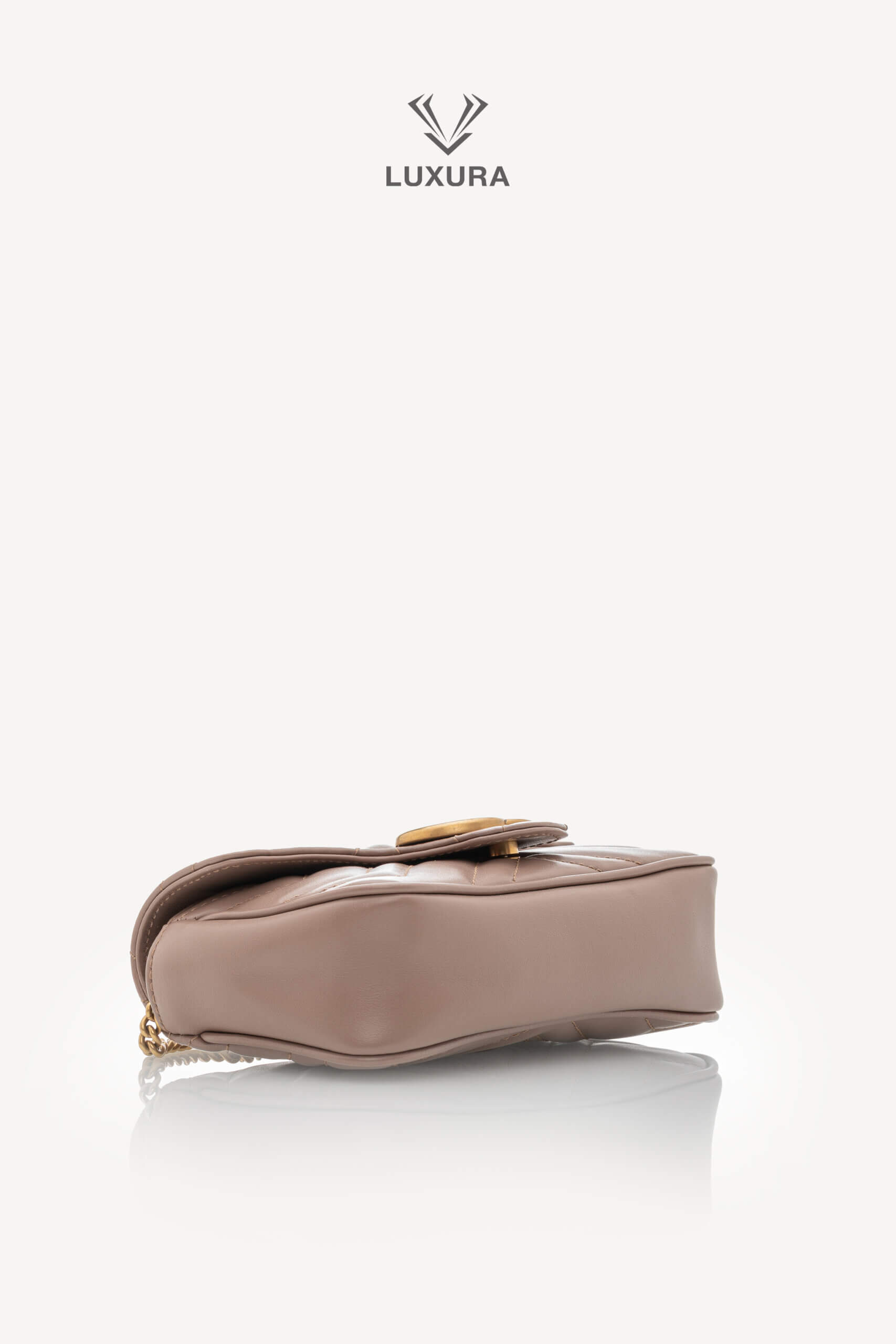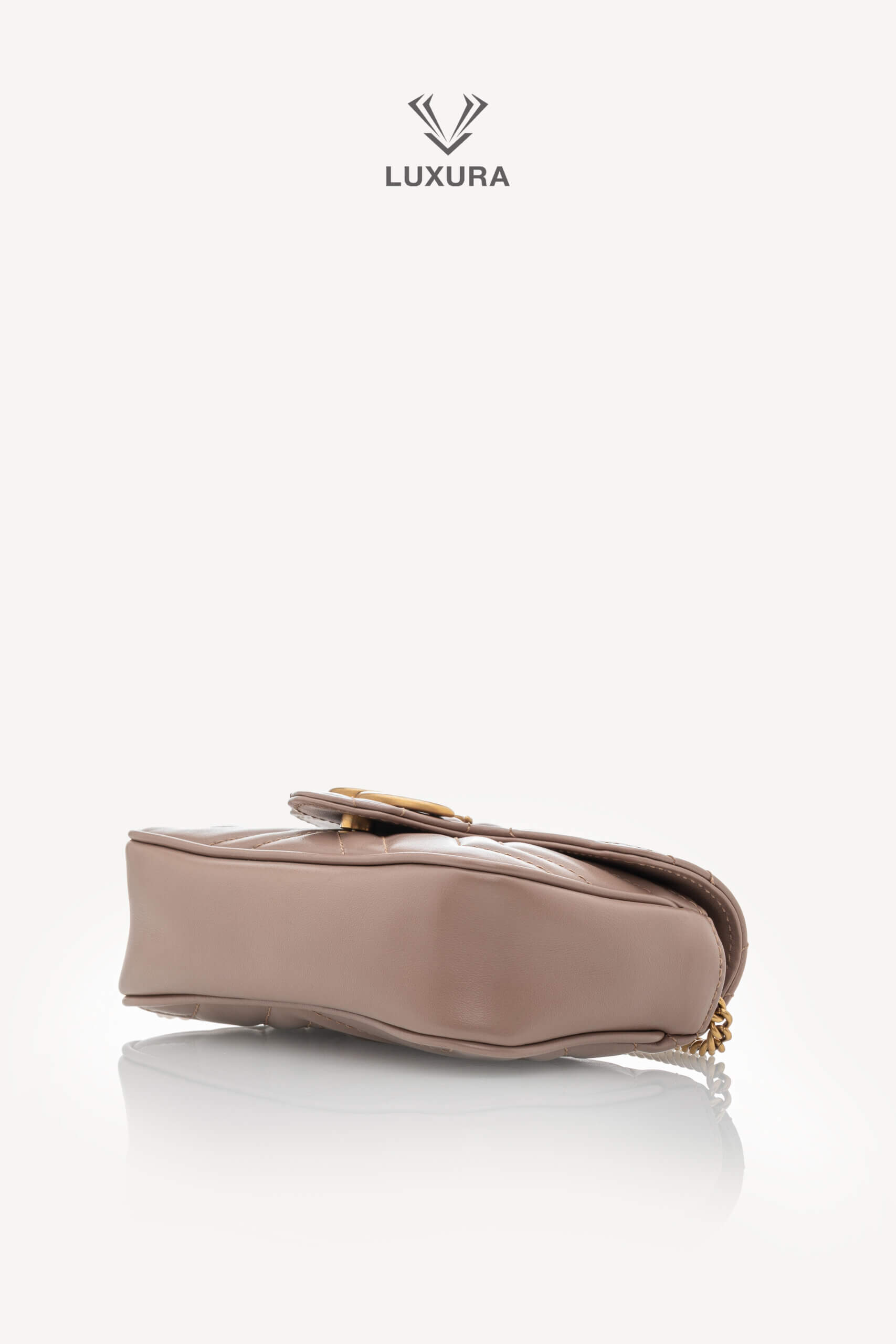 GUCCI GG Marmont Mini Bag Taupe Leather Taupe, Bej – Genti de colecție