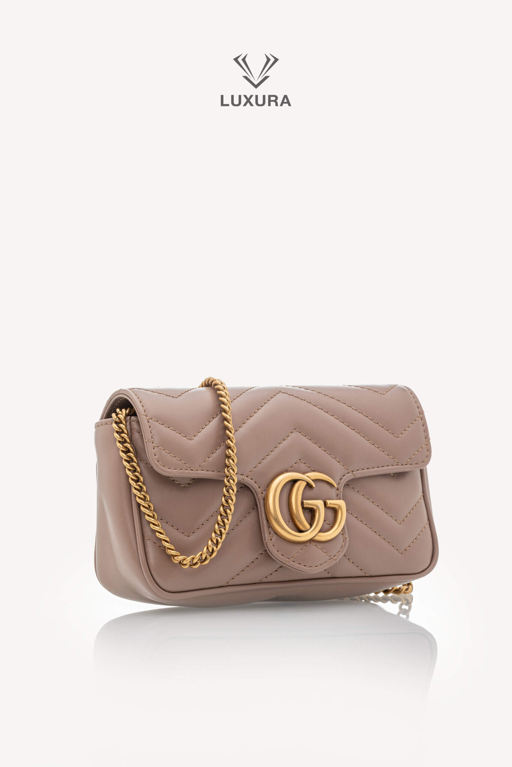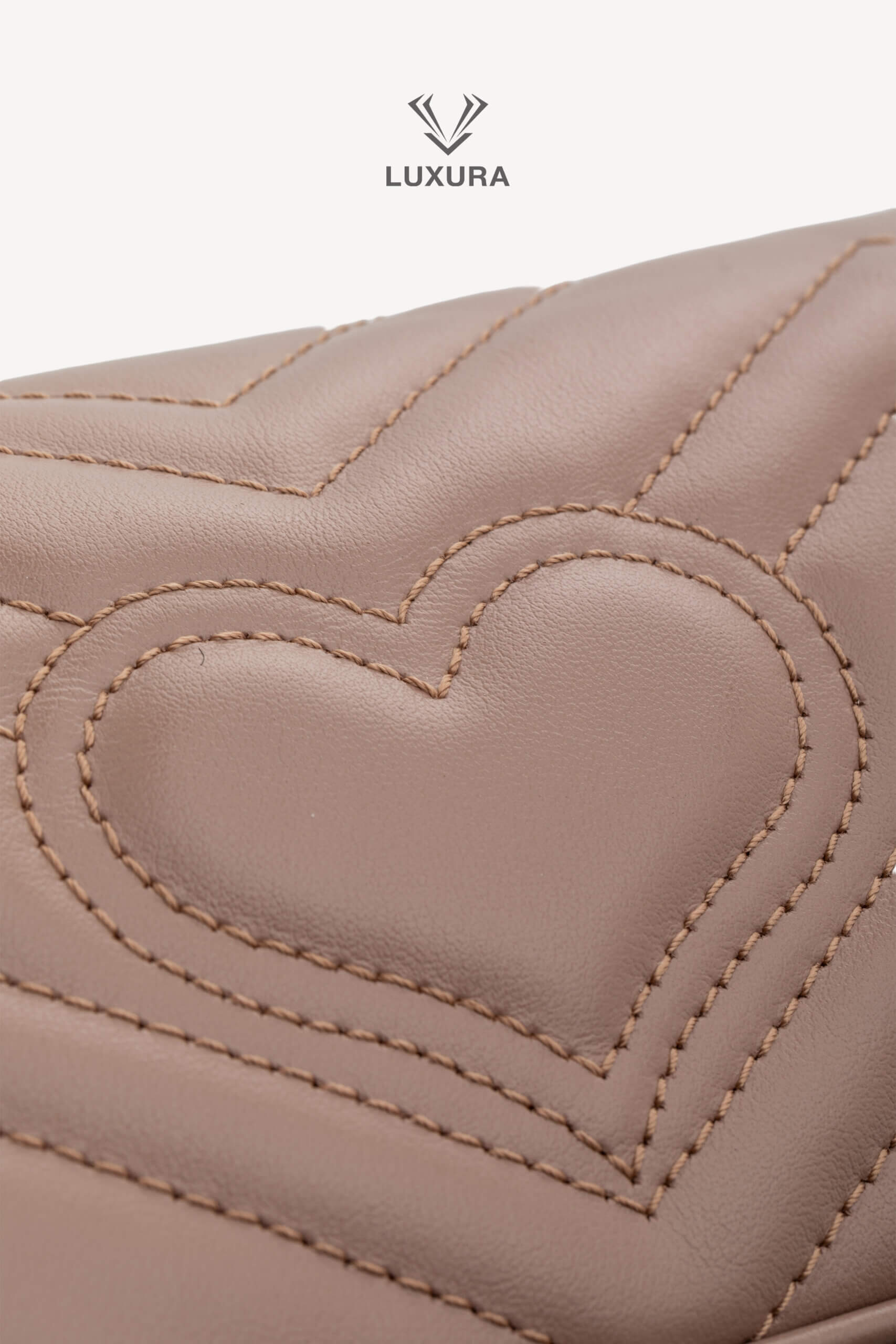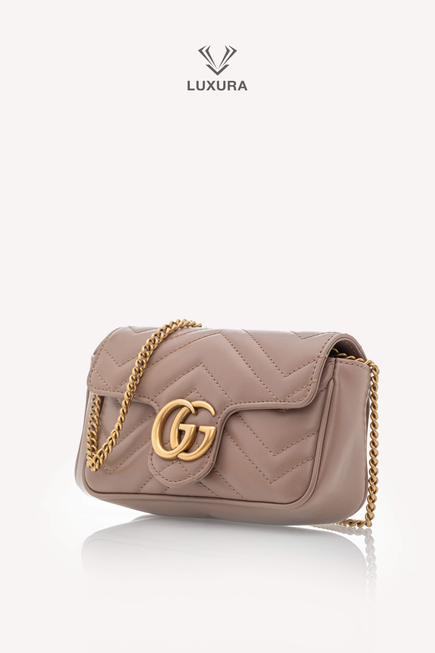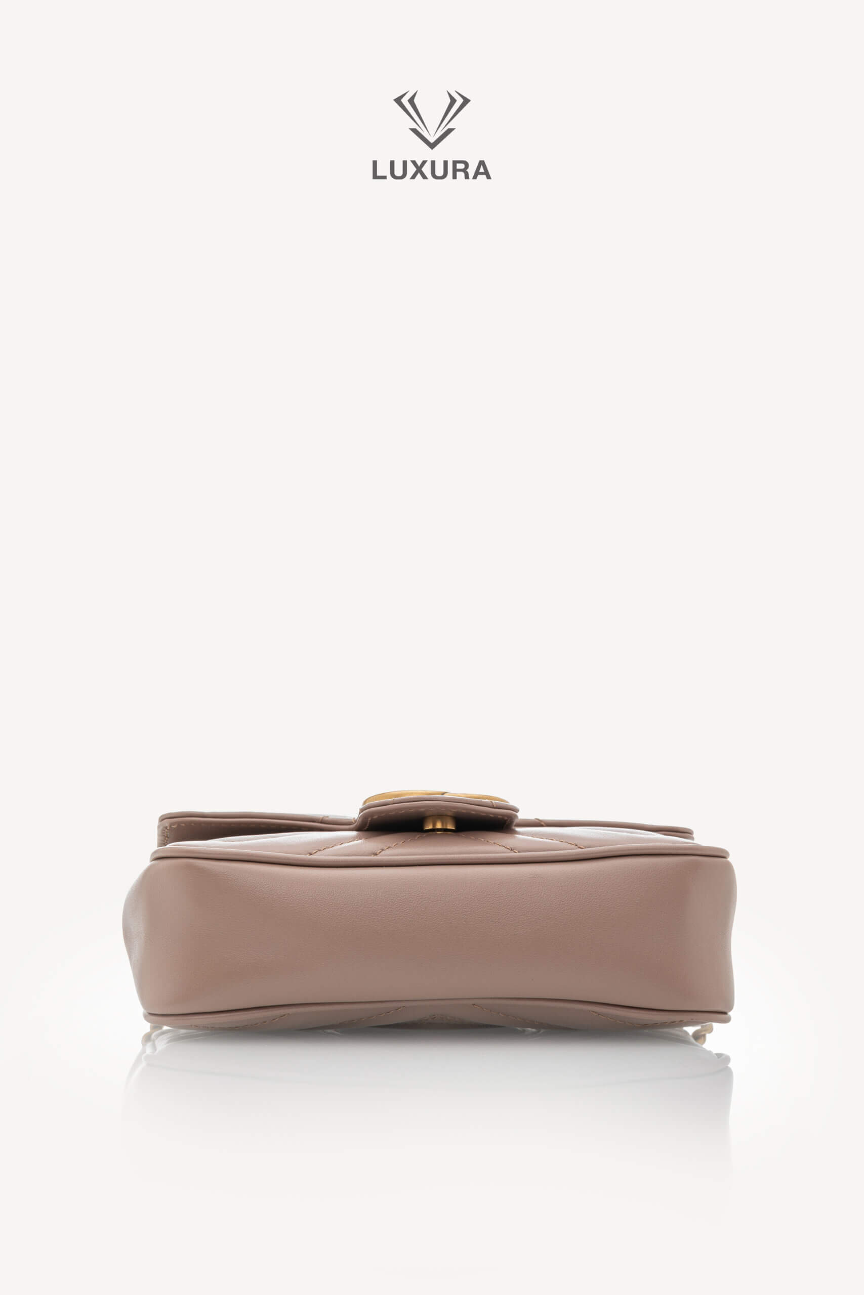GUCCI GG Marmont Mini Bag Taupe Leather Taupe, Bej – Genti de colecție