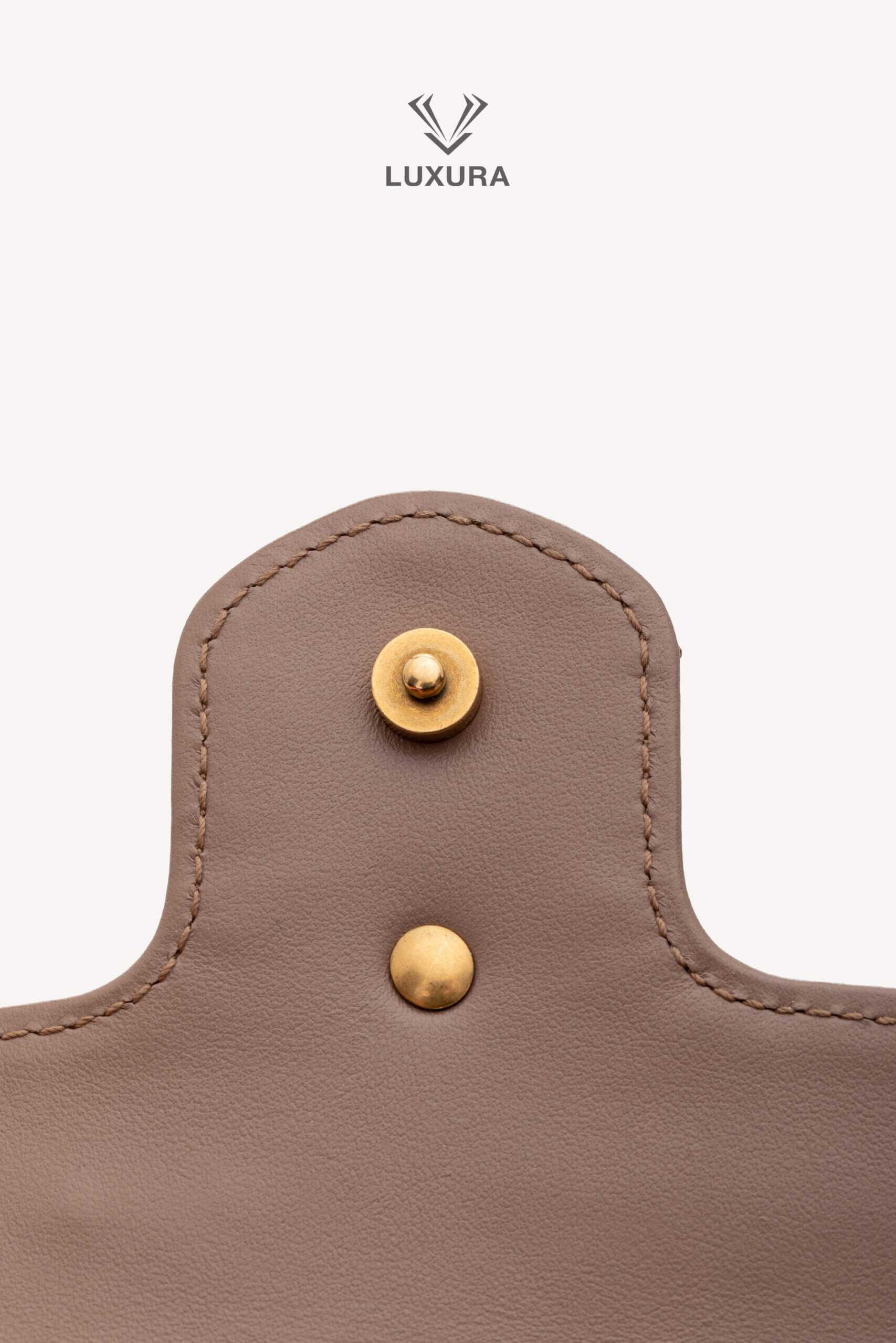 Geanta GG Marmont Mini Bag Taupe Leather de la Gucci este realizată din piele de calitate superioară și microfibră, având un design compact cu dimensiunile de 16.5 cm lungime, 10 cm lățime și 4.5 cm adâncime. Aceasta prezintă un finisaj exterior taupe și interior bej, completat de detalii hardware aurii. Produsul este pre-owned, în stare excelentă, autenticificat și vine însoțit de cutia producătorului, dust bag, card și certificat de conformitate. Luxura Elite este o platformă independentă de resale și nu este afiliată brandului Gucci.