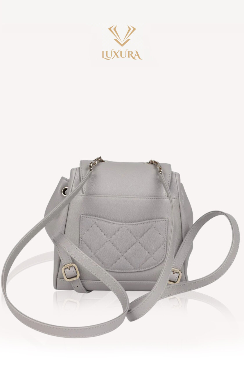 Small Affinity Backpack Light Grey Shiny Caviar Light Gold Hardware