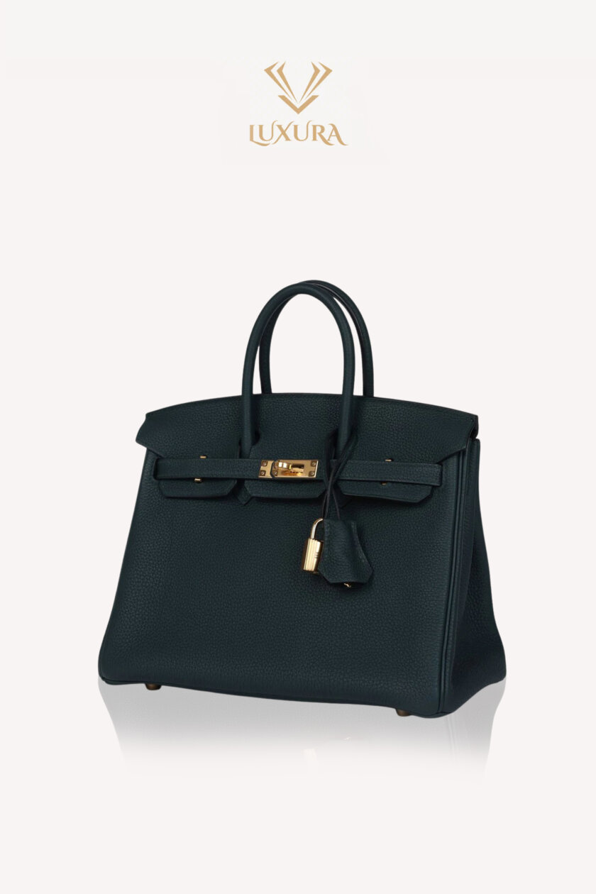 Aceasta geanta Hermès Birkin 25 este o ediție specială, realizată din piele Togo, într-o combinație rafinată de culori gold și Vert Cypress.Cu dimensiunea compactă de 25 cm, este perfectă atât pentru ocazii formale, cât și pentru ținutele de zi cu zi. Un accesoriu iconic, destinat colecționarilor și celor care apreciază luxul autentic.