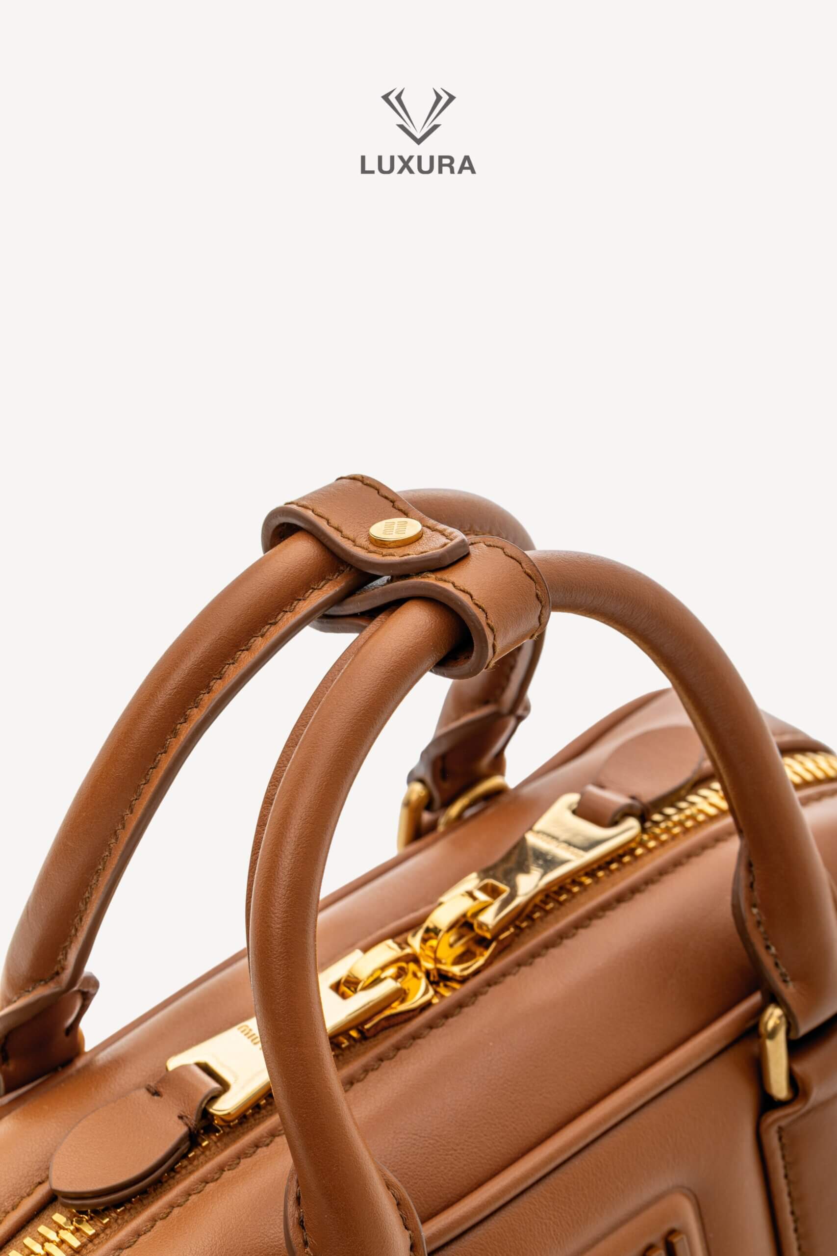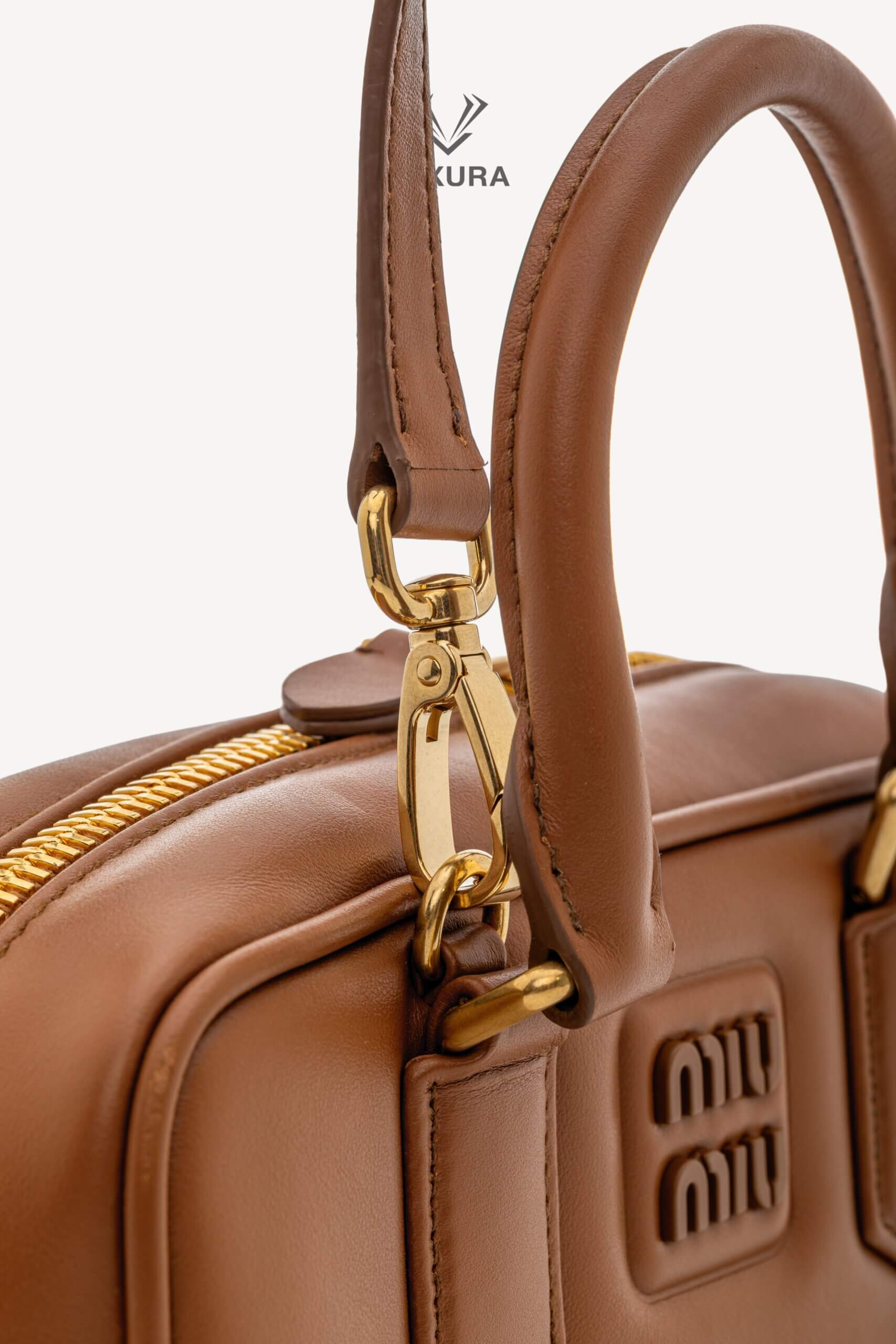 MIU MIU Calfskin Small Arcadie Top Handle Cognac Maro, Maro – Genti de colecție
