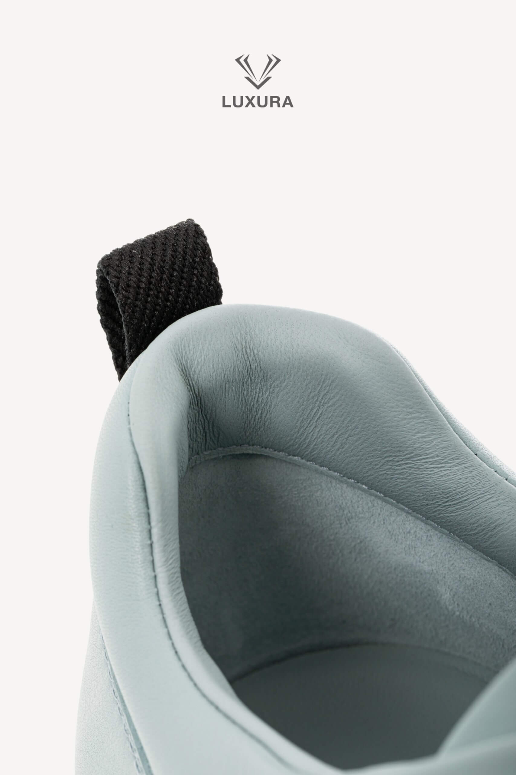 - Material: Piele de miel, Captuseala din piele de miel albastra