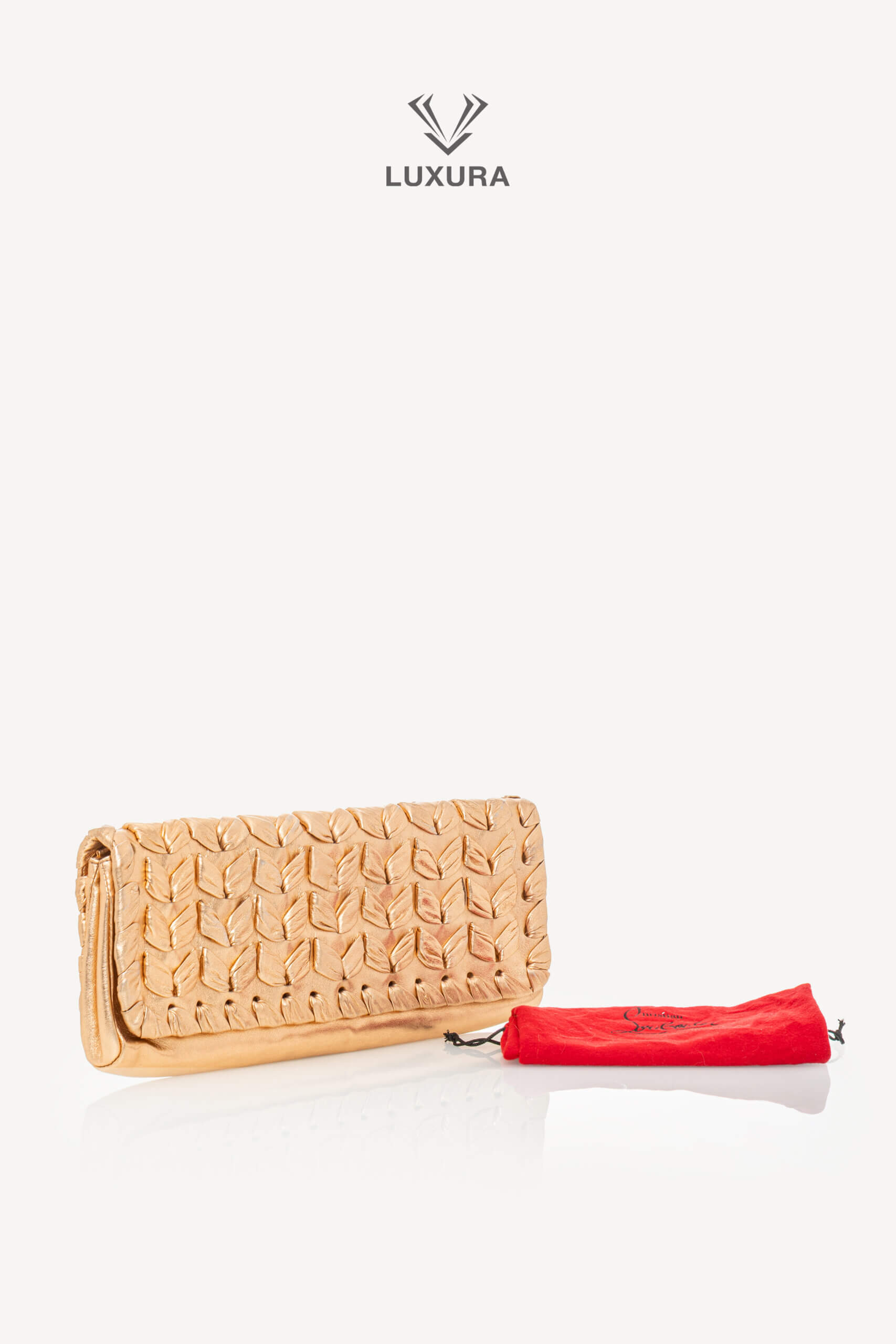 Descoperiți rafinamentul unui clutch Christian Louboutin pre-owned, disponibil acum prin Luxura Elite, platformă independentă de resale.