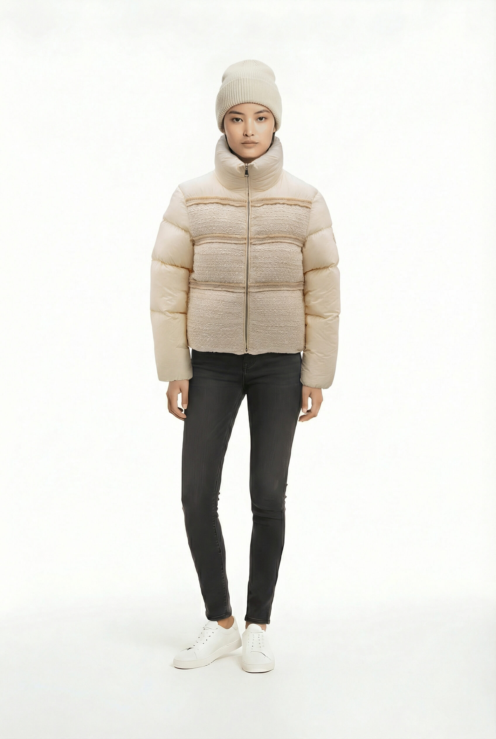 MONCLER Aucun Tweed Puffer Jacket Open White 0 Crem – Imbracaminte de colecție