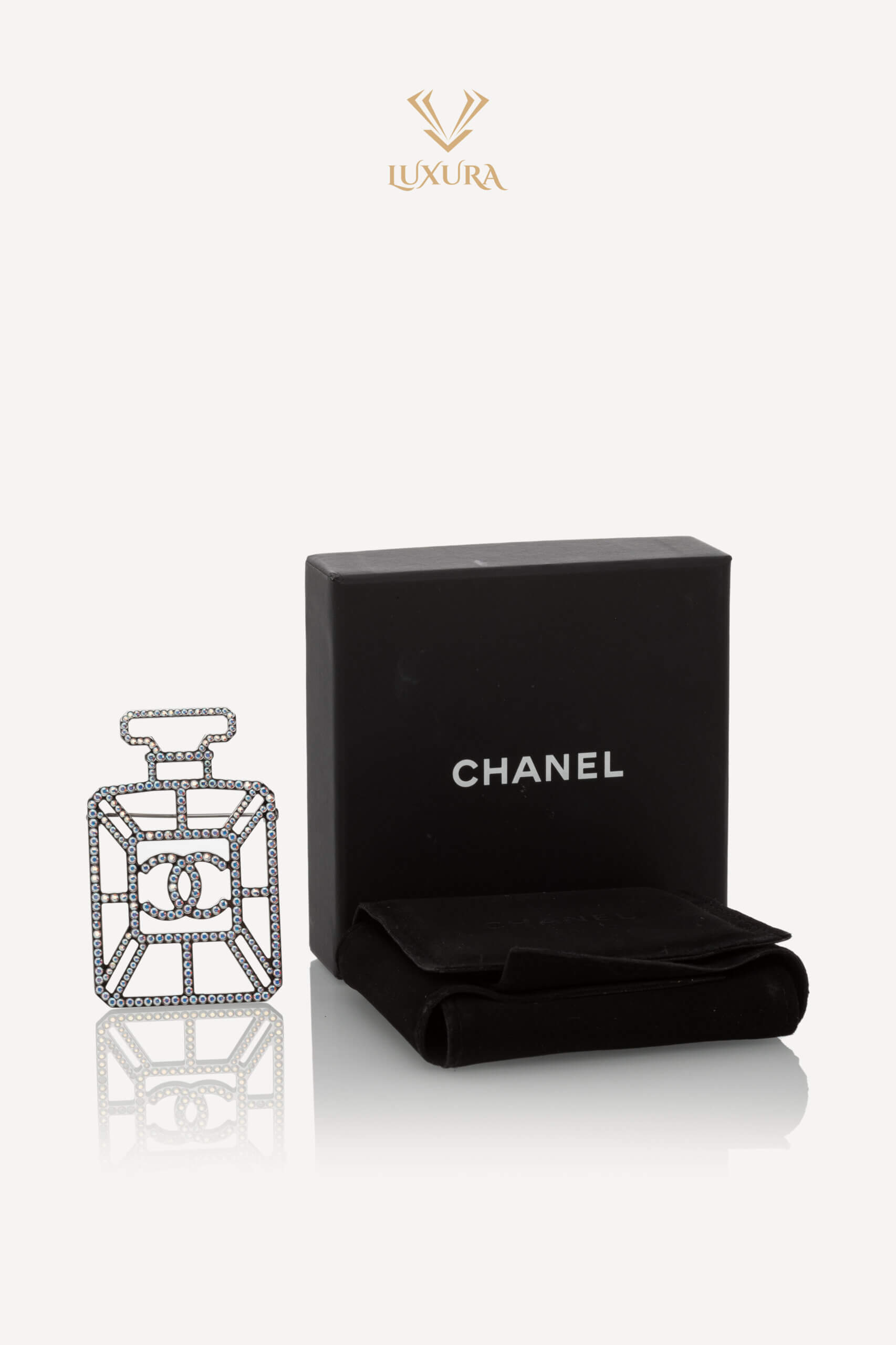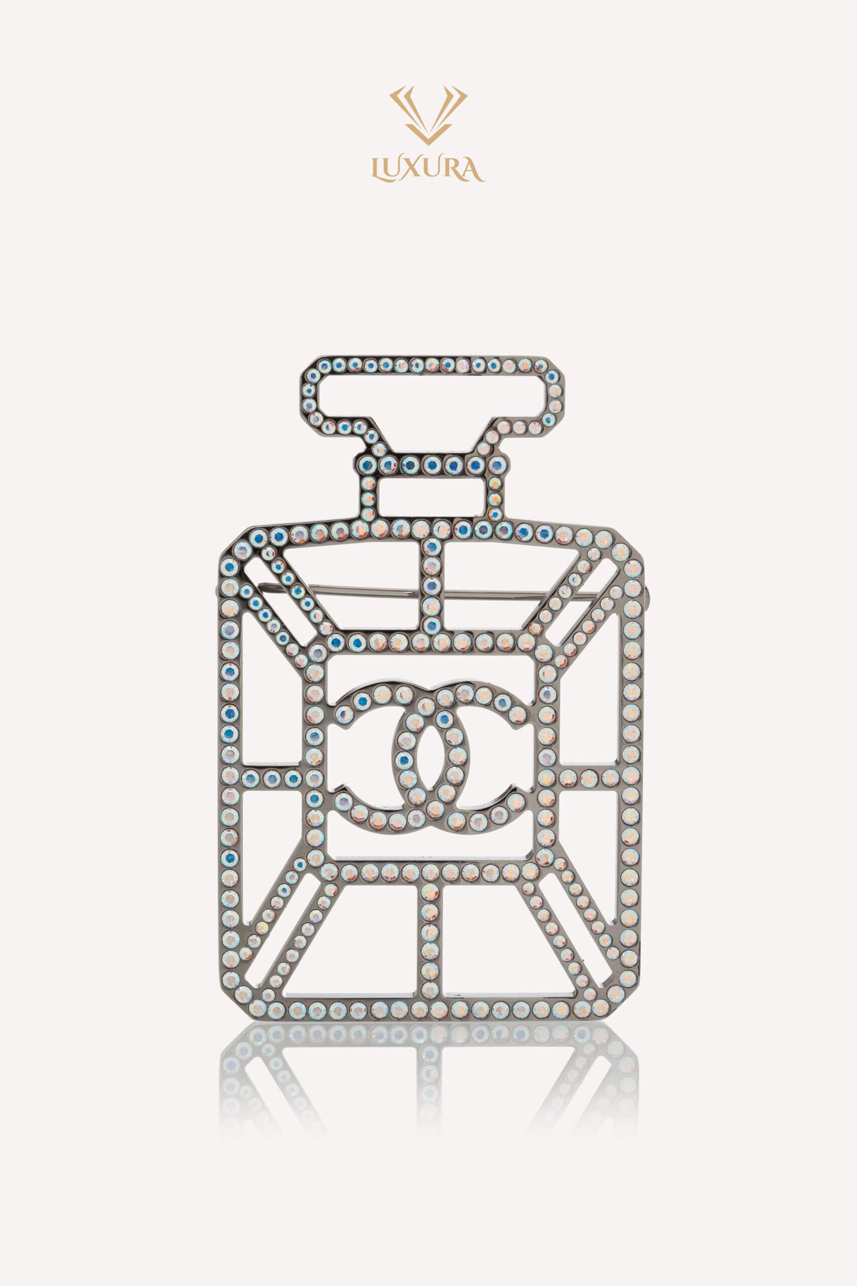 Ruthenium Crystal Perfume Bottle CC Brooch Iridescent Rose-Blue