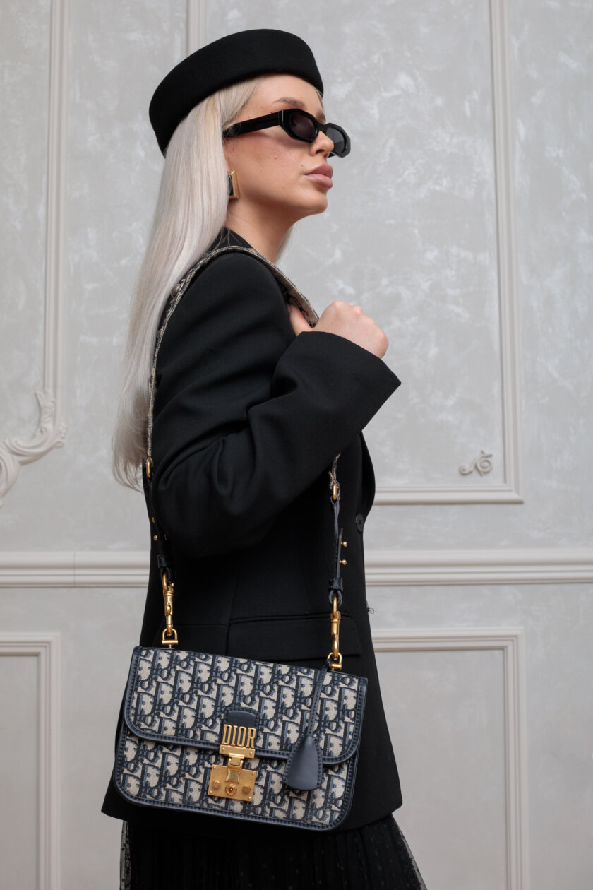 Imprimeul Oblique al casei Dior a fost readus la viață în 2017 pentru sezonul primăvară-vară de către Maria Grazia Chiuri. Un adevărat simbol emblematic al anilor 2000, acest imprimeu a rămas și astăzi unul dintre cele mai râvnite. Modelul Dioraddict prezentat la Paris Fashion Week în 2018 este realizat în totalitate folosind celebrul monogram, accentuat cu elemente din piele de vițel și cu un logo metalic Dior. Cureaua detașabilă este la rândul ei realizată din același material și decorată cu medalioane cu inspirație cowboy. O adevărată piesă statement Dior care nu trebuie să lipsească din colecția ta.
