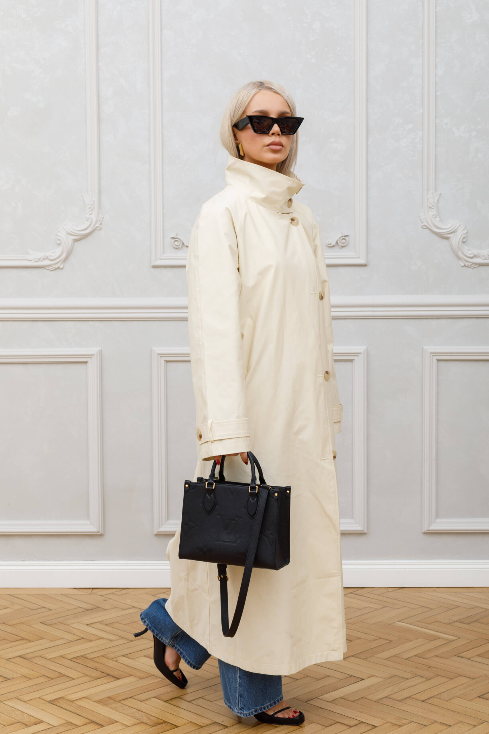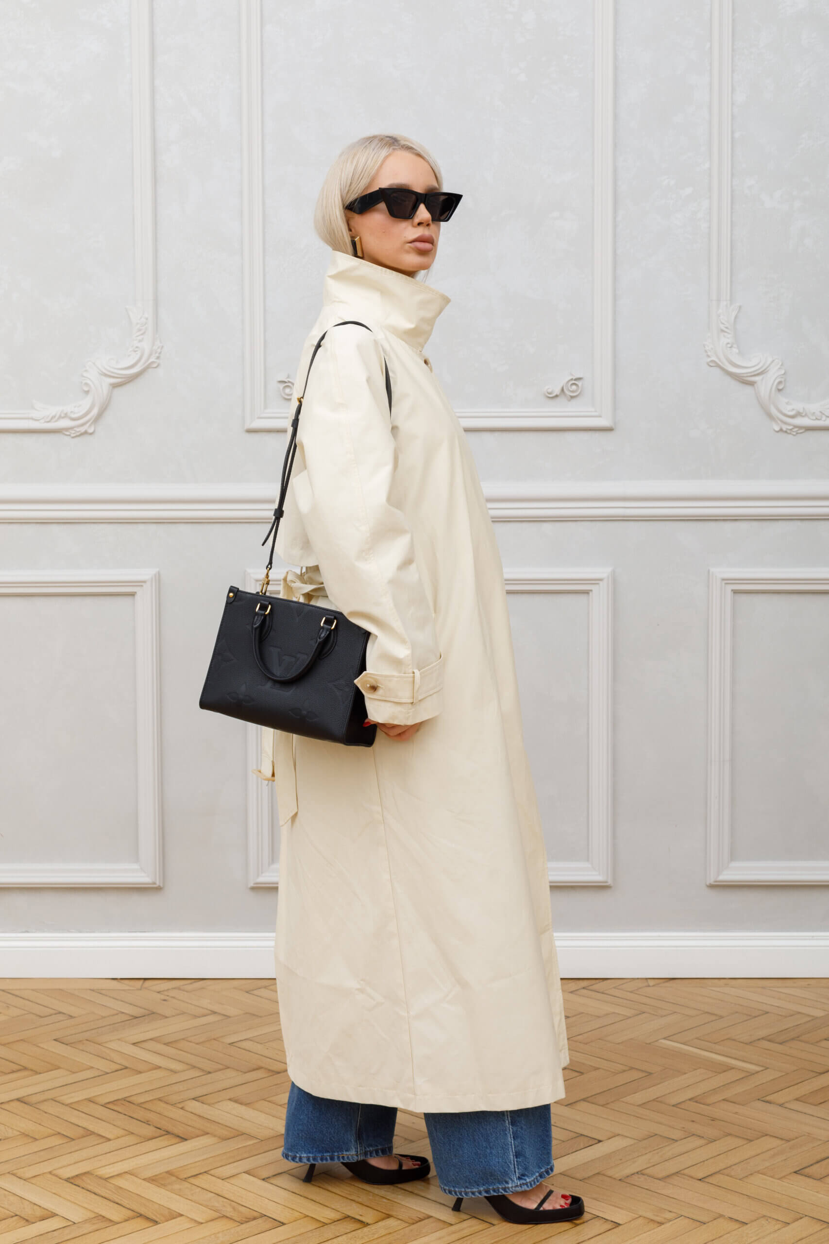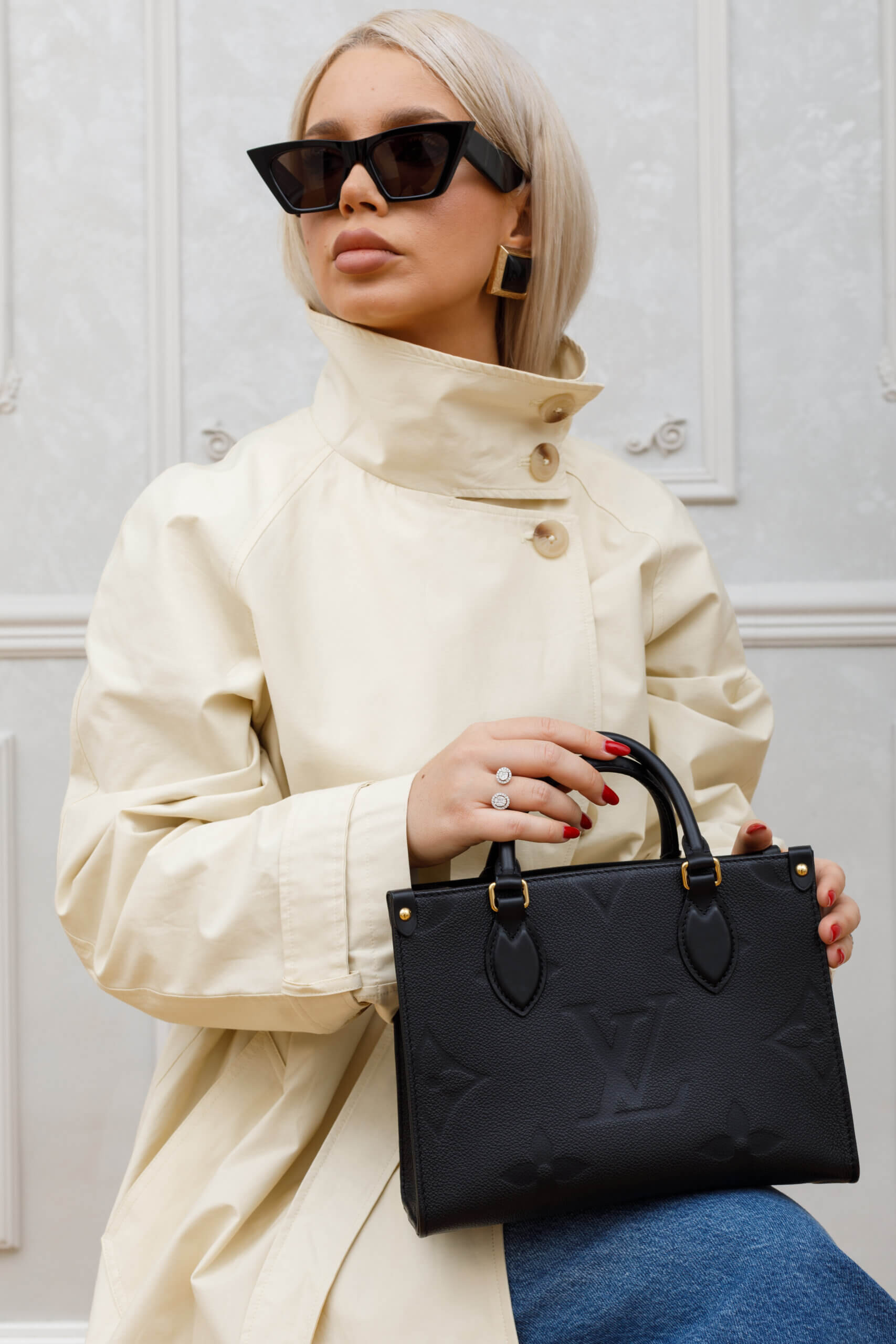 Inspirat de celebrul Sac Plat al lui Louis Vuitton din 1968, tote-ul Onthego PM este confecţionat din Monogram Canvas, imprimată cu un model Giant Monogram. Această versiune medie a originalului Onthego se potrivește elementelor esențiale, cum ar fi un iPad sau un MacBook, dar chiar si pentru călătoriile scurte. Mânerele superioare articulate și o curea detașabilă reglabilă oferă o varietate de opțiuni de transport. Această geantă tote din Monogram Canvas are un aspect modern si actual datorită design-ului supradimensionat reinventat in cele mai recente colecții ale lui Nicolas Ghesquière.