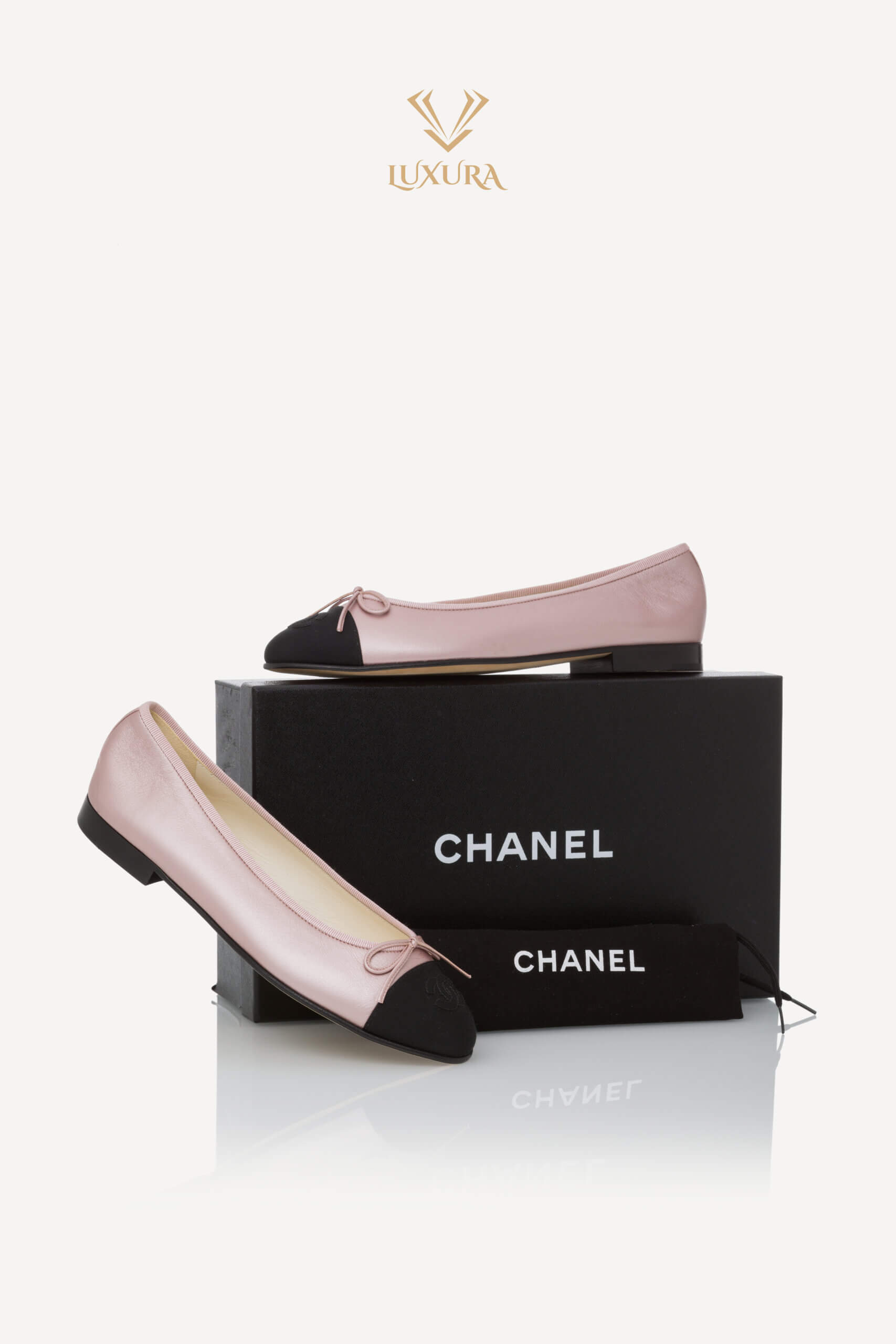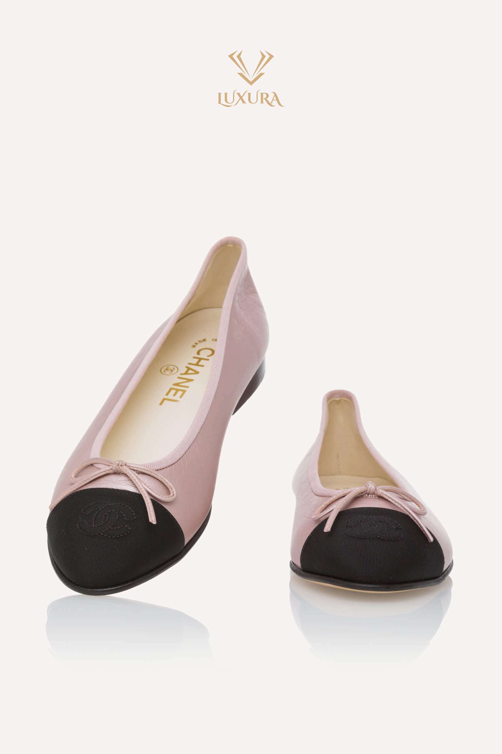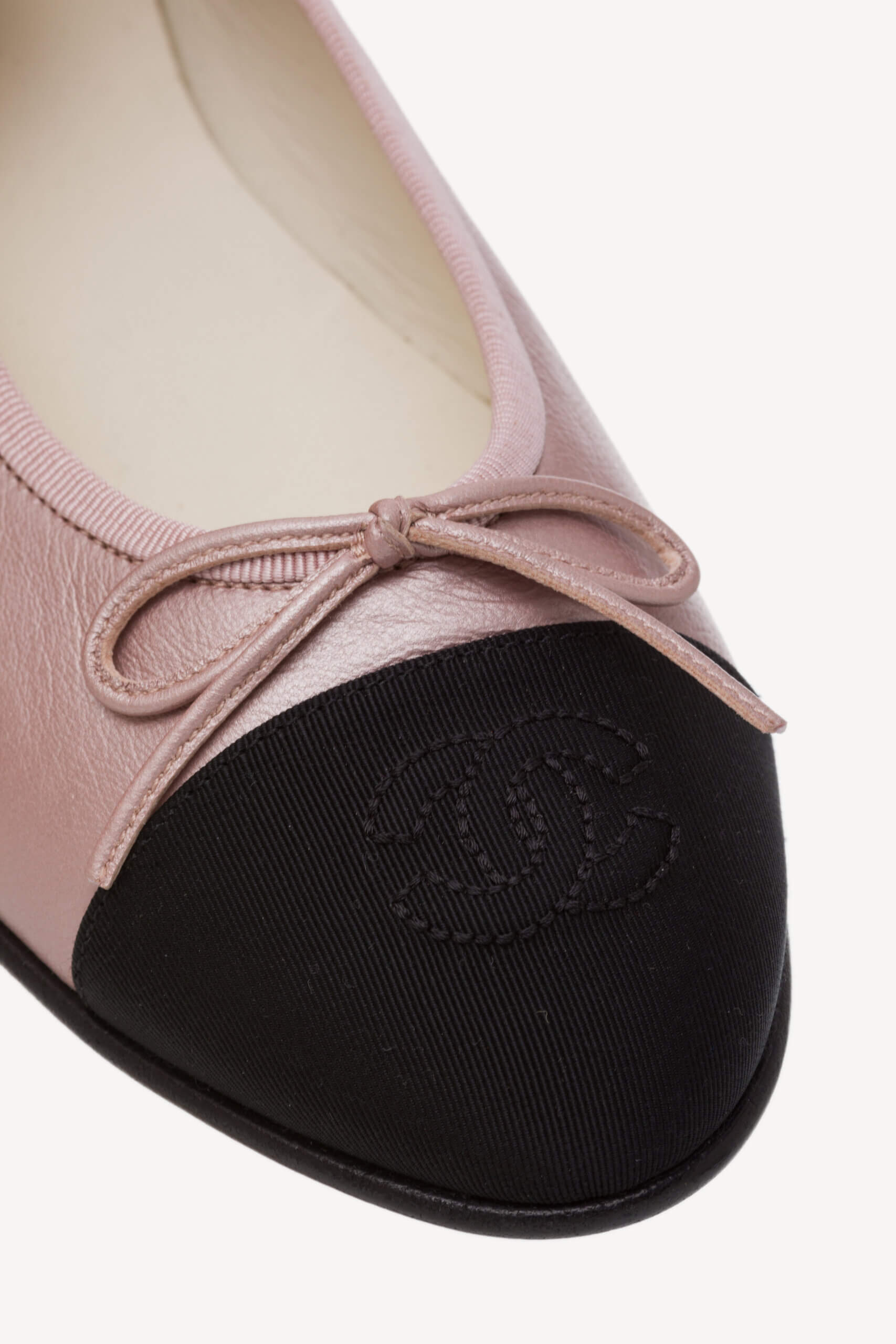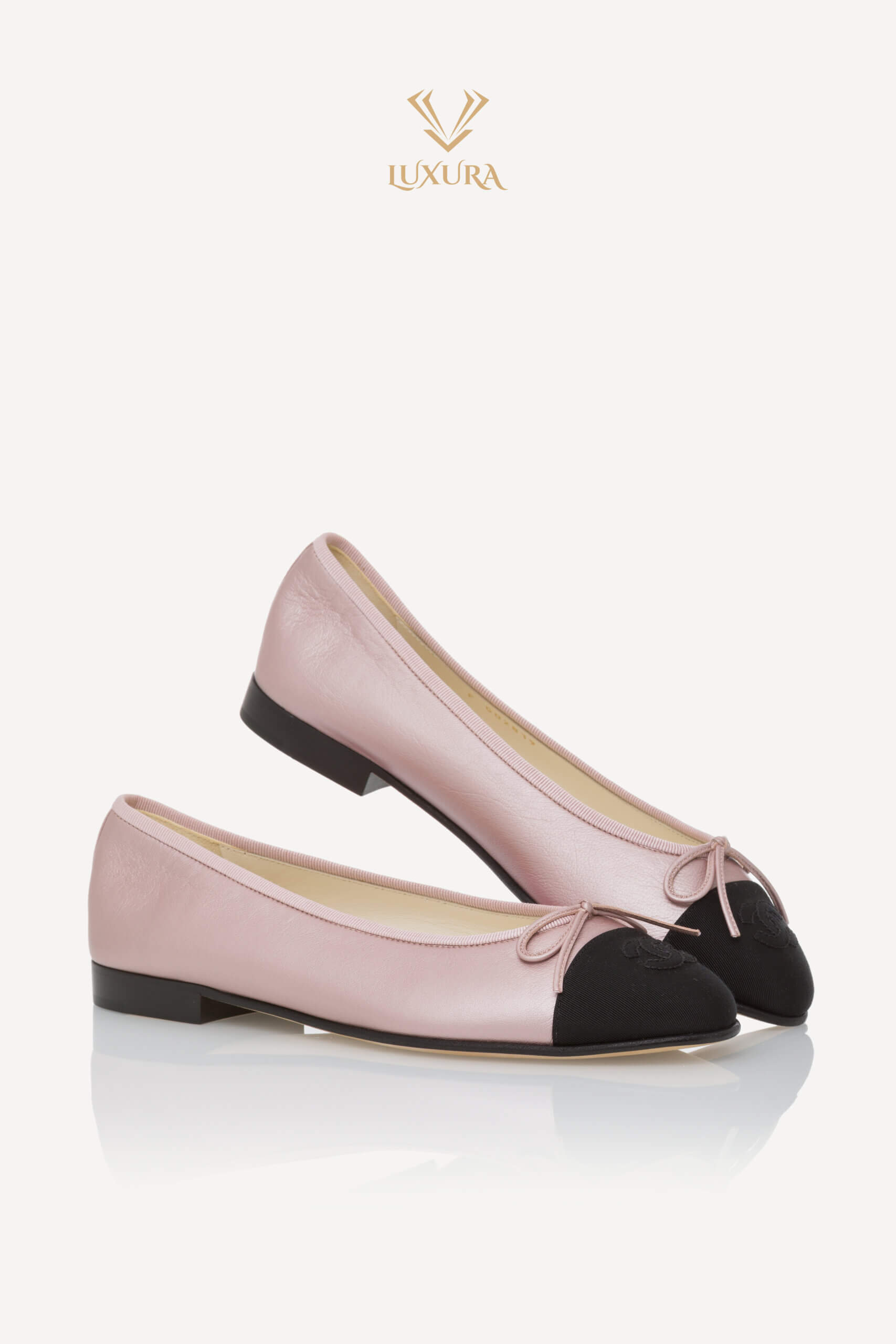 Lambskin Cap Toe CC Ballerina Flats Light Pink Black 37.5