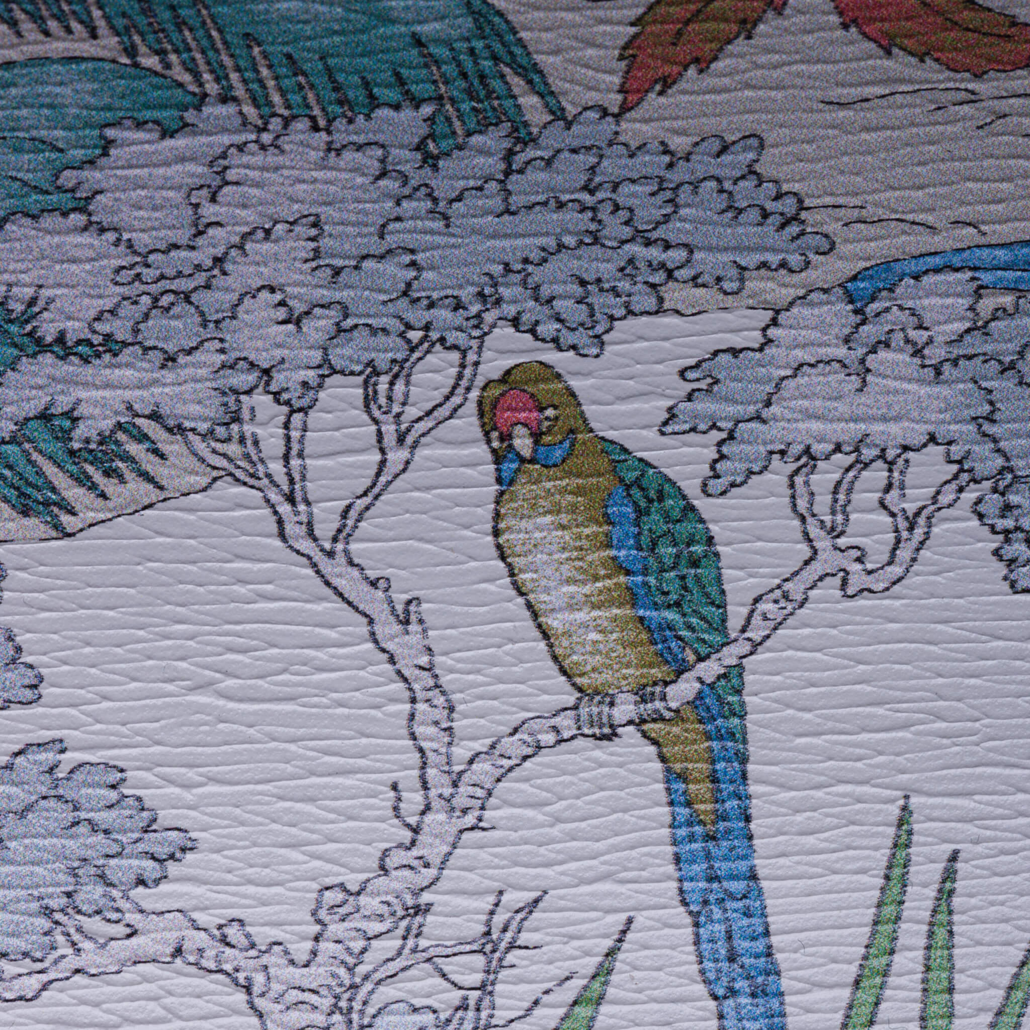 Piele de culoare alb prăfuit cu imprimeu de tigru și flori Hardware în tonuri aurii.