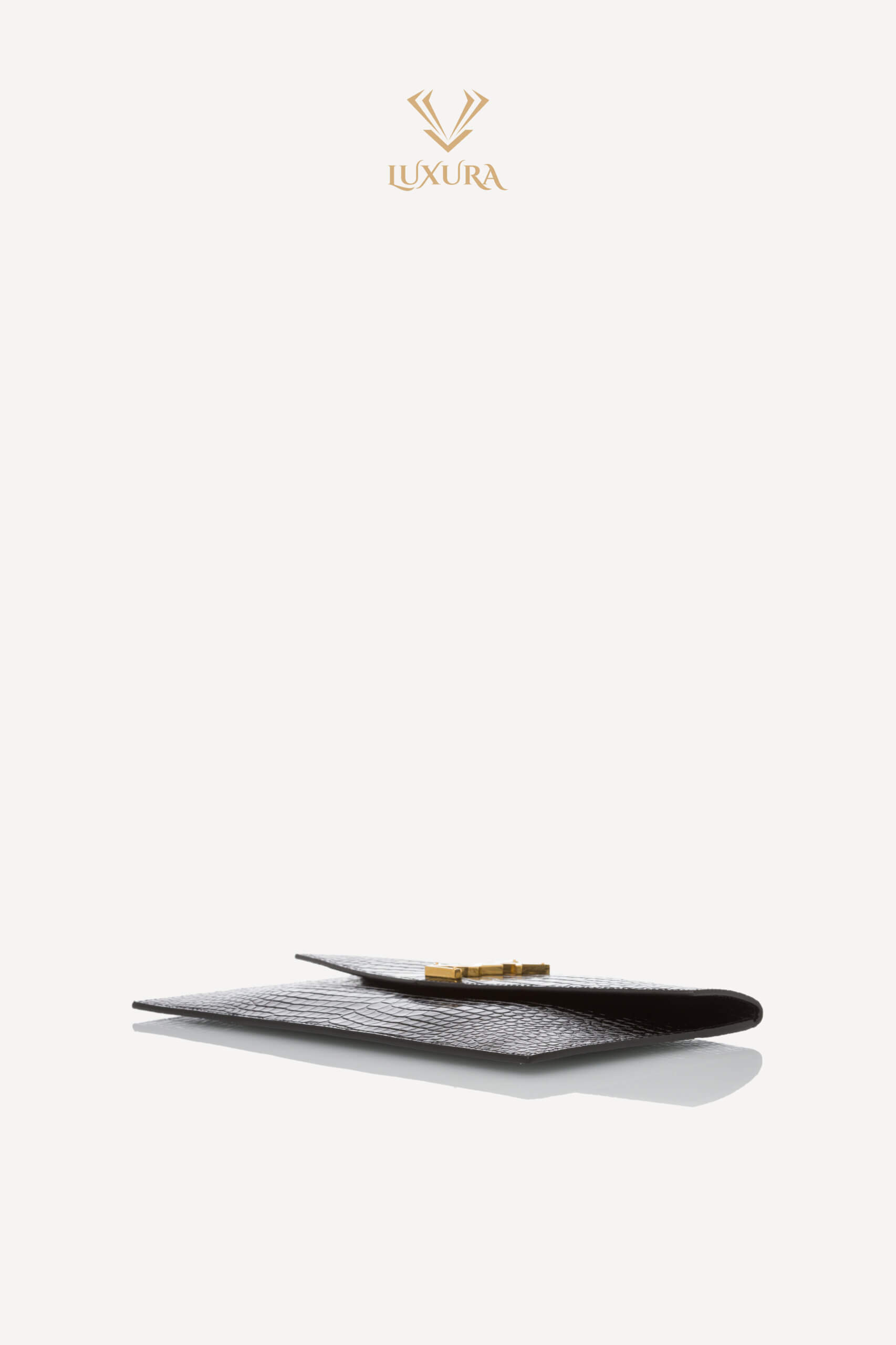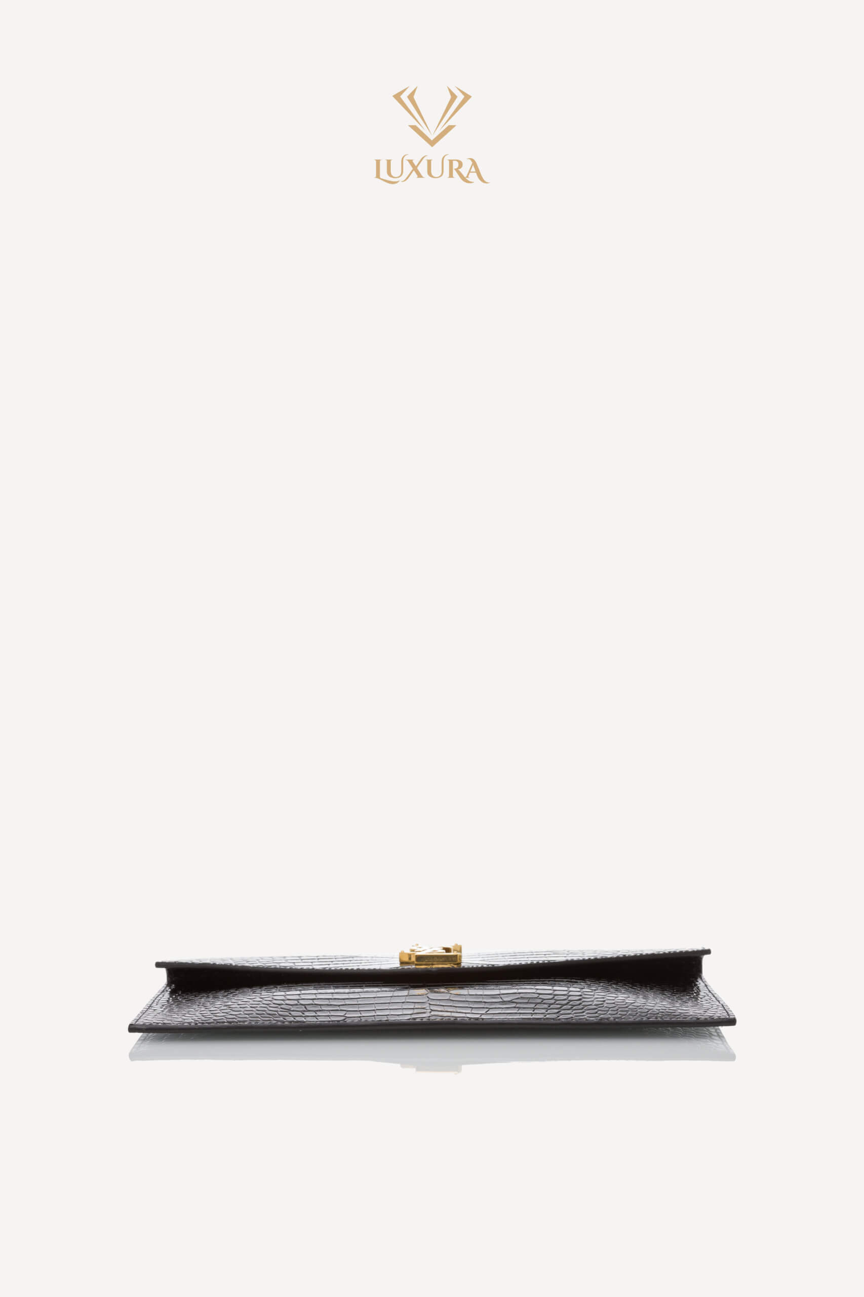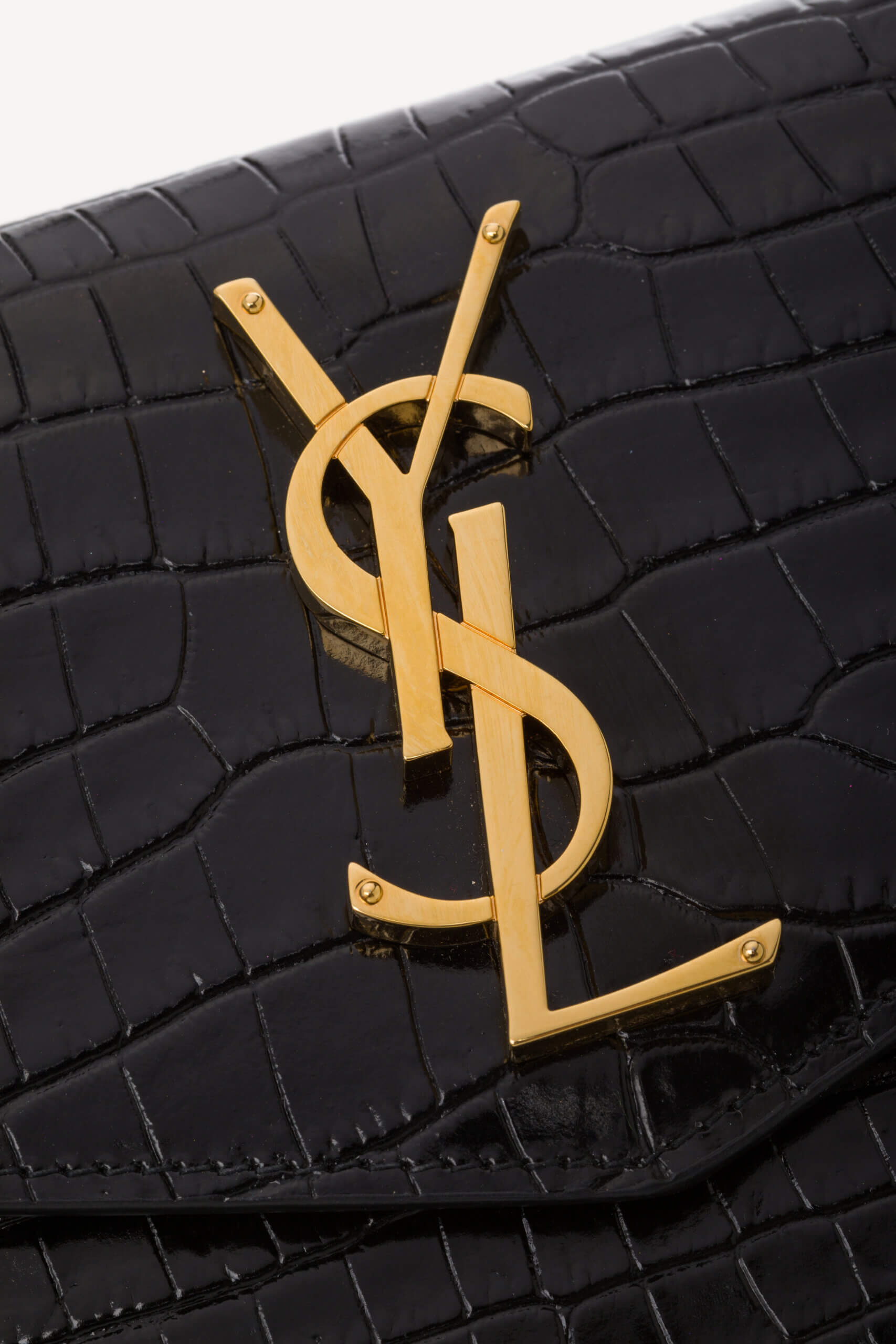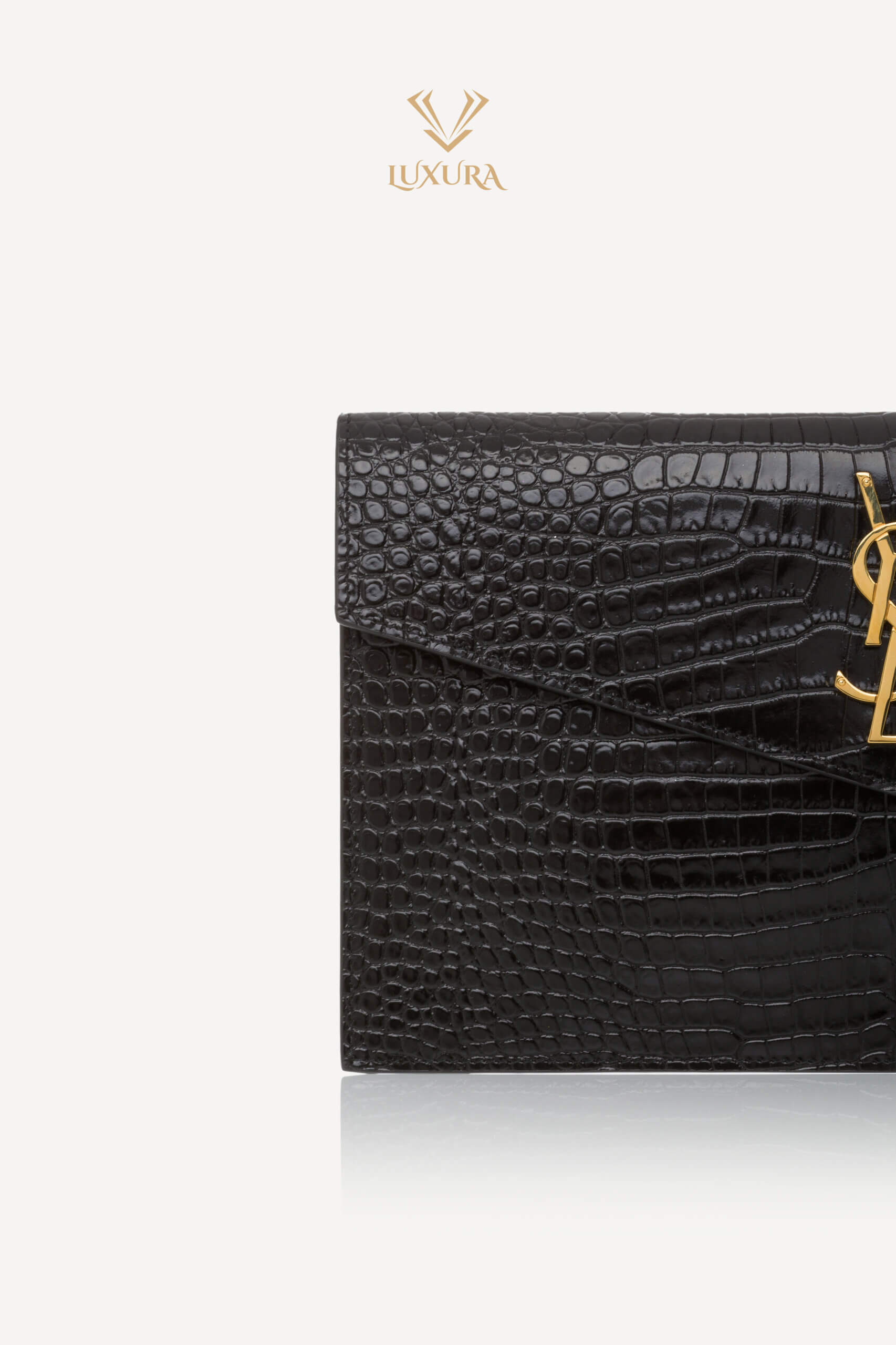 SAINT LAURENT Uptown Pouch Croc Embossed Clutch Black Negru – Genti de colecție