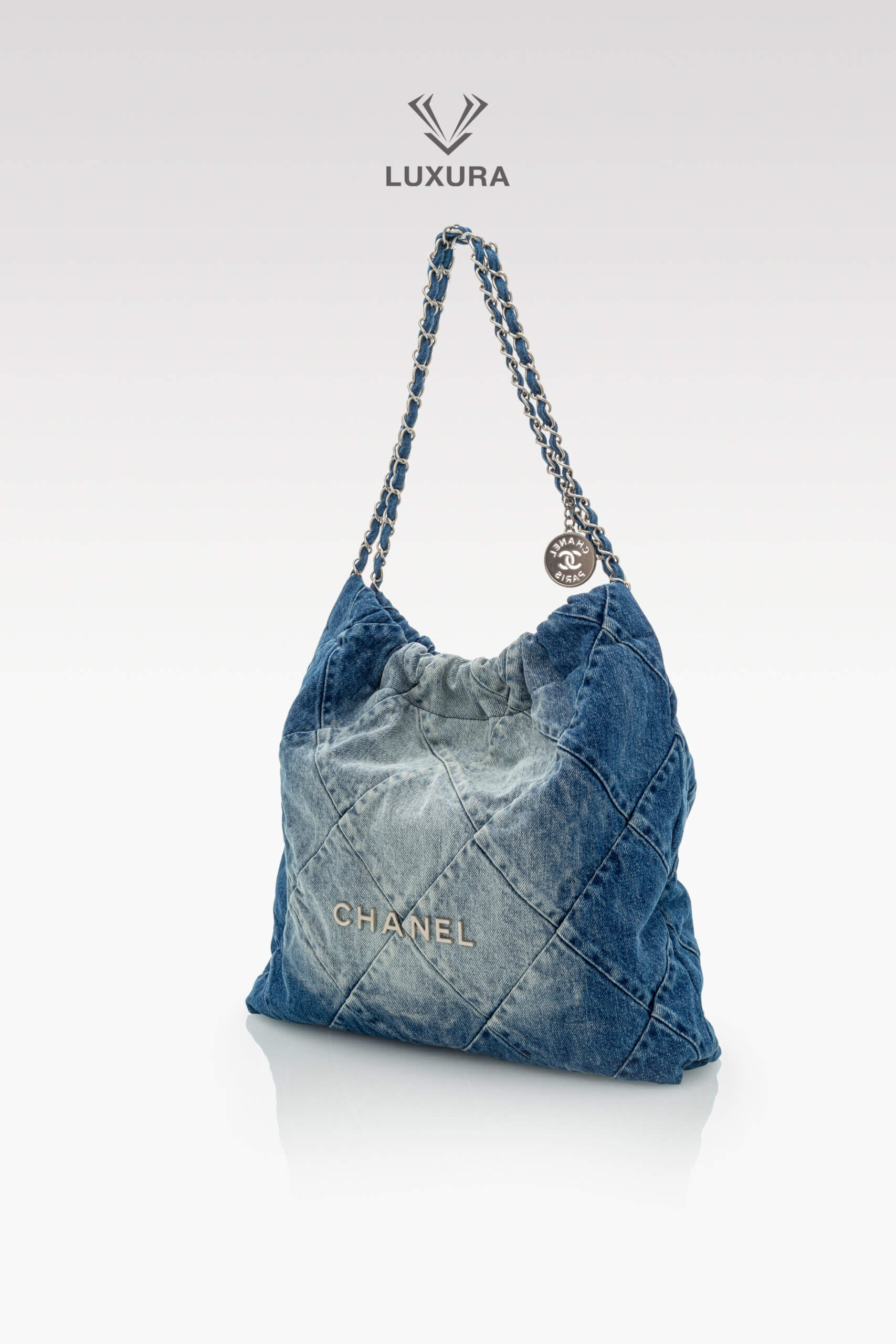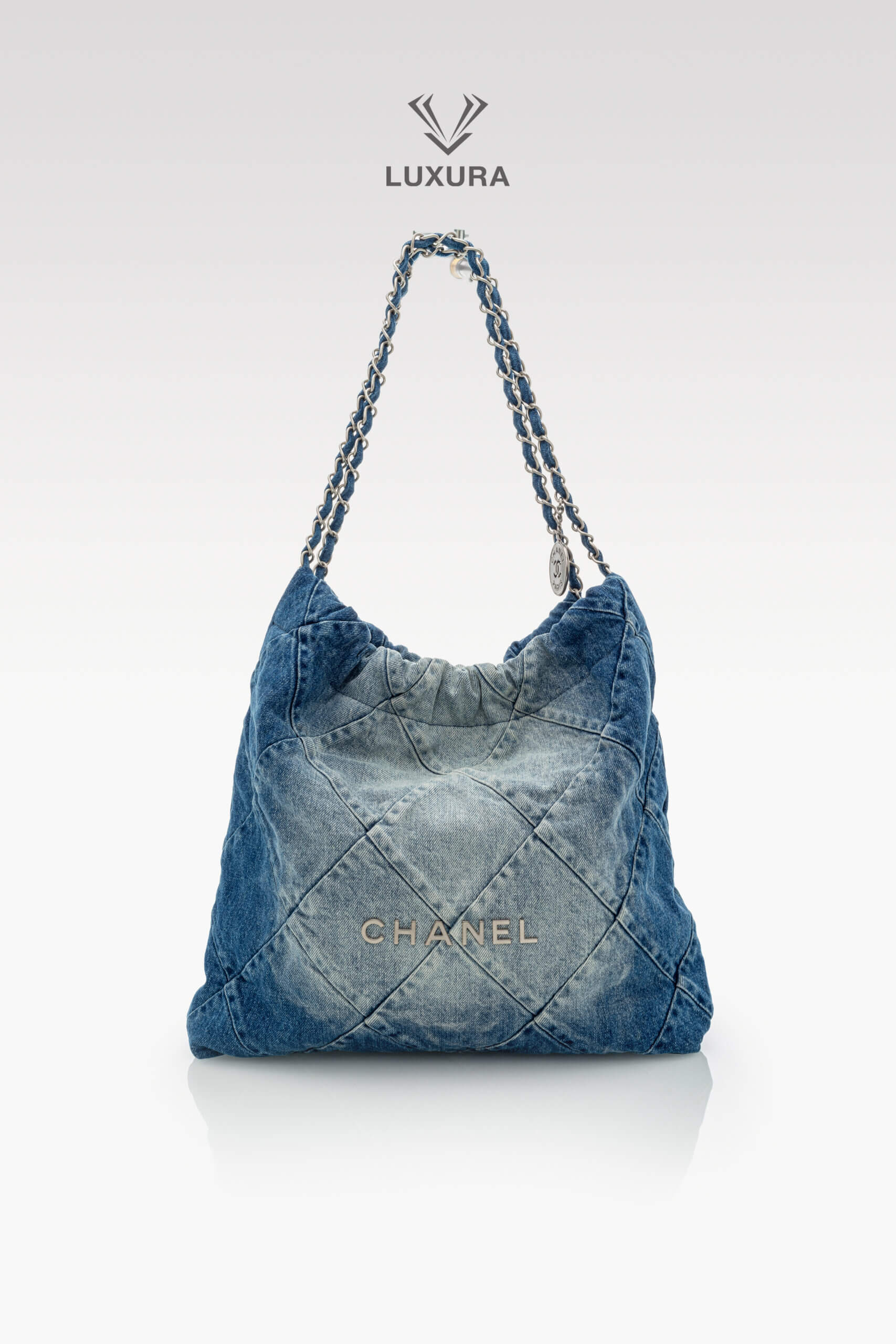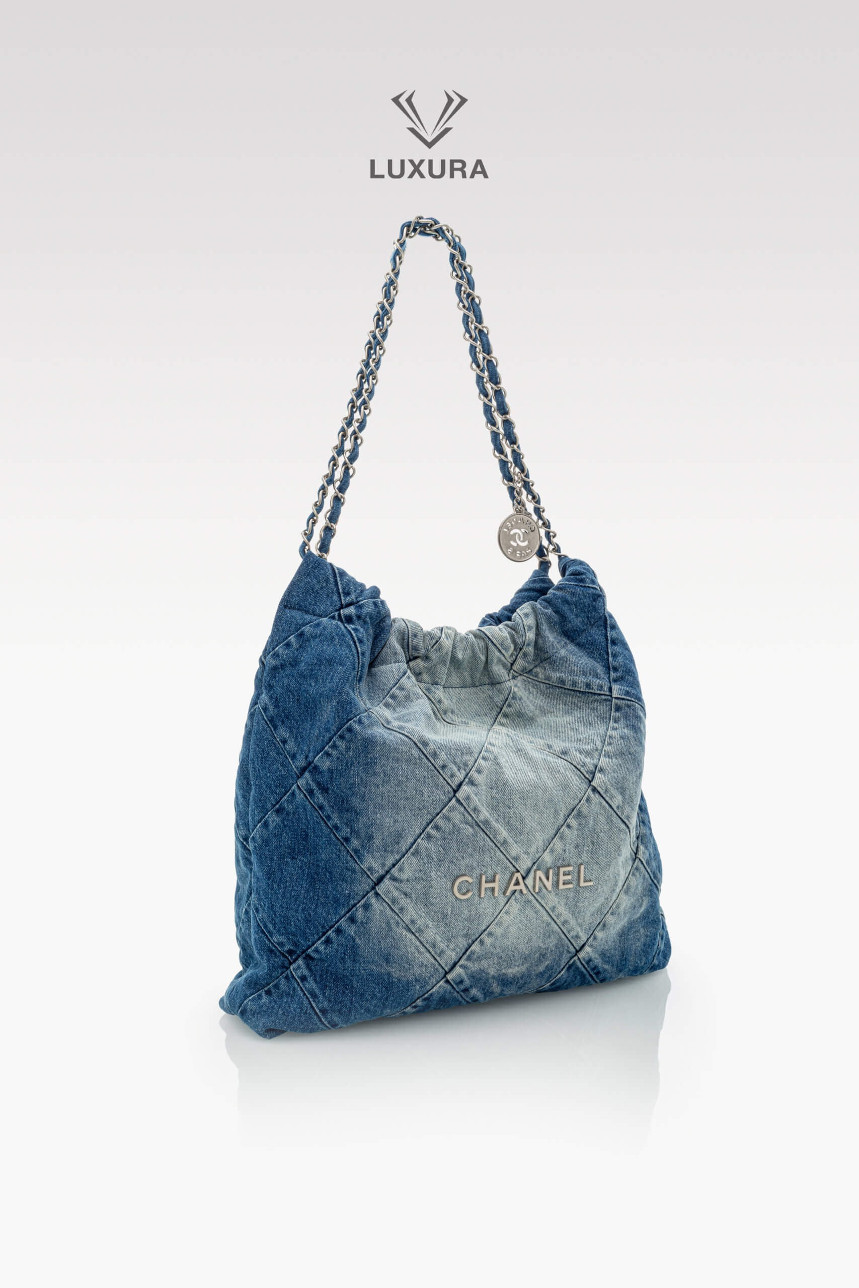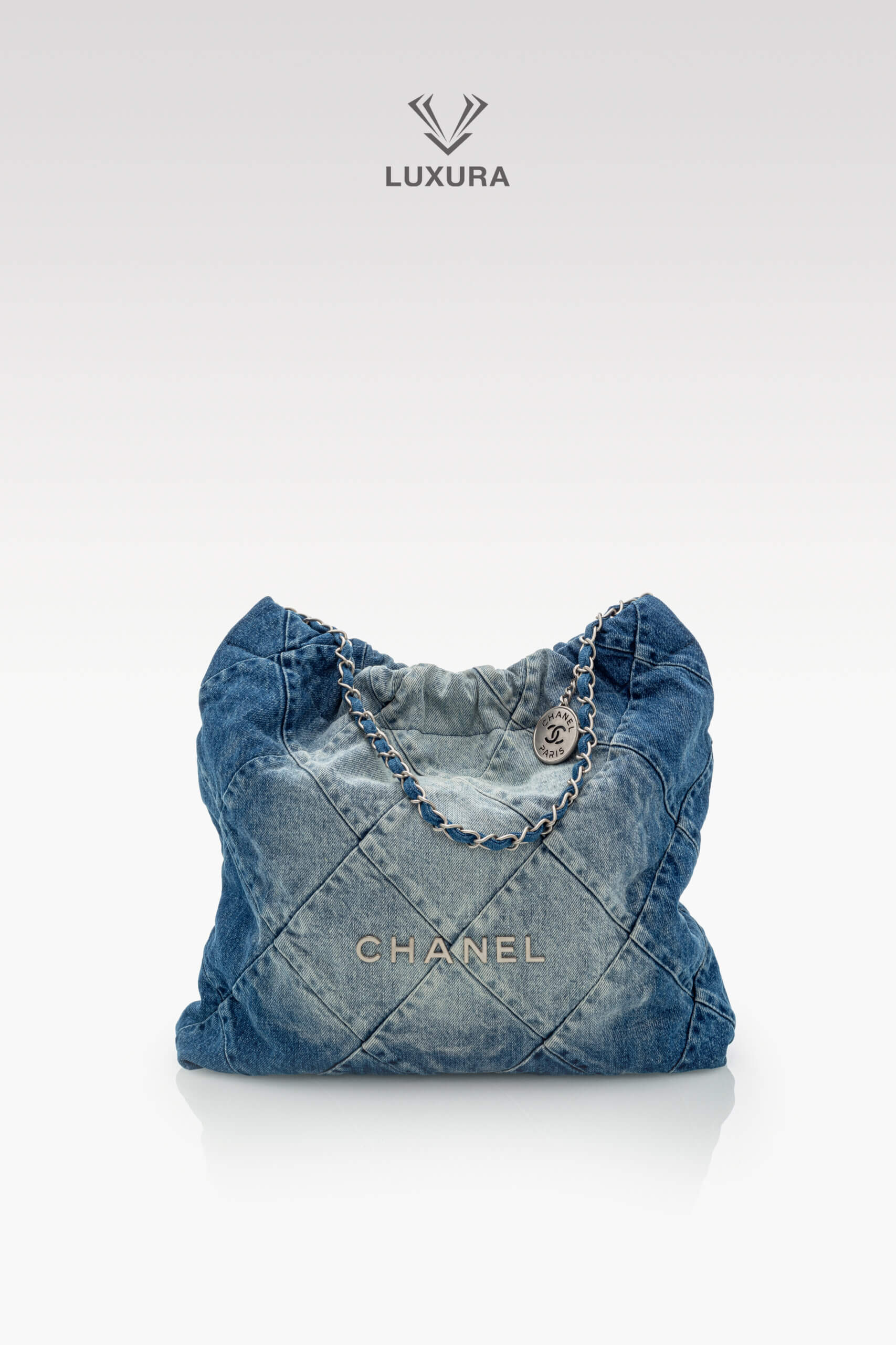 CHANEL Denim Quilted Small 22 Blue Albastru, Albastru – Genti de colecție