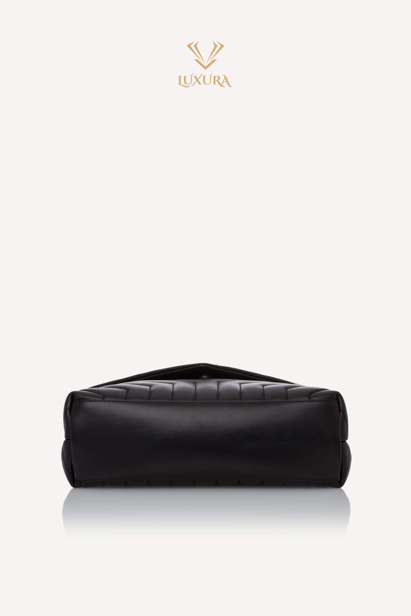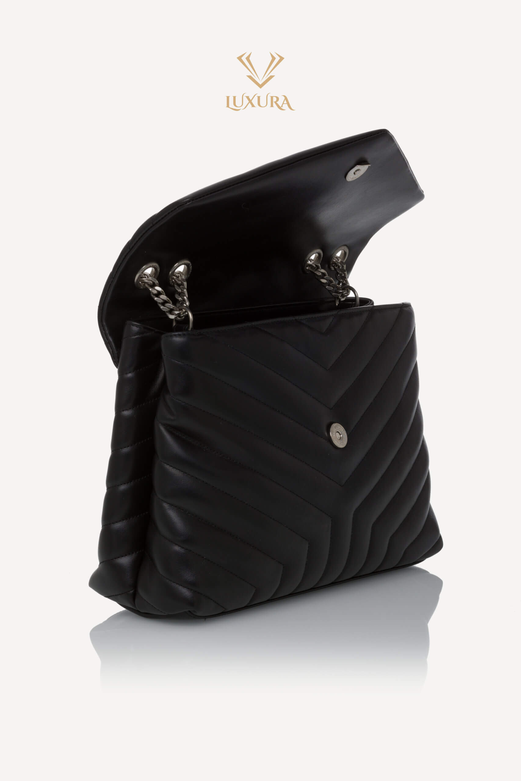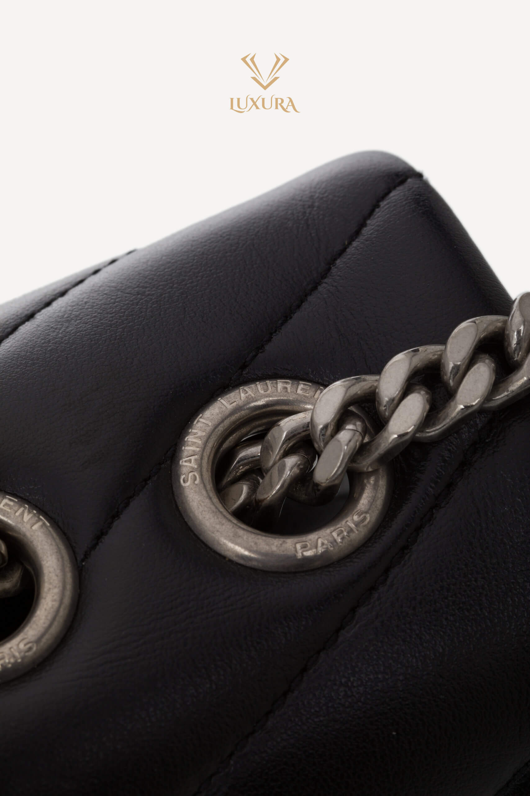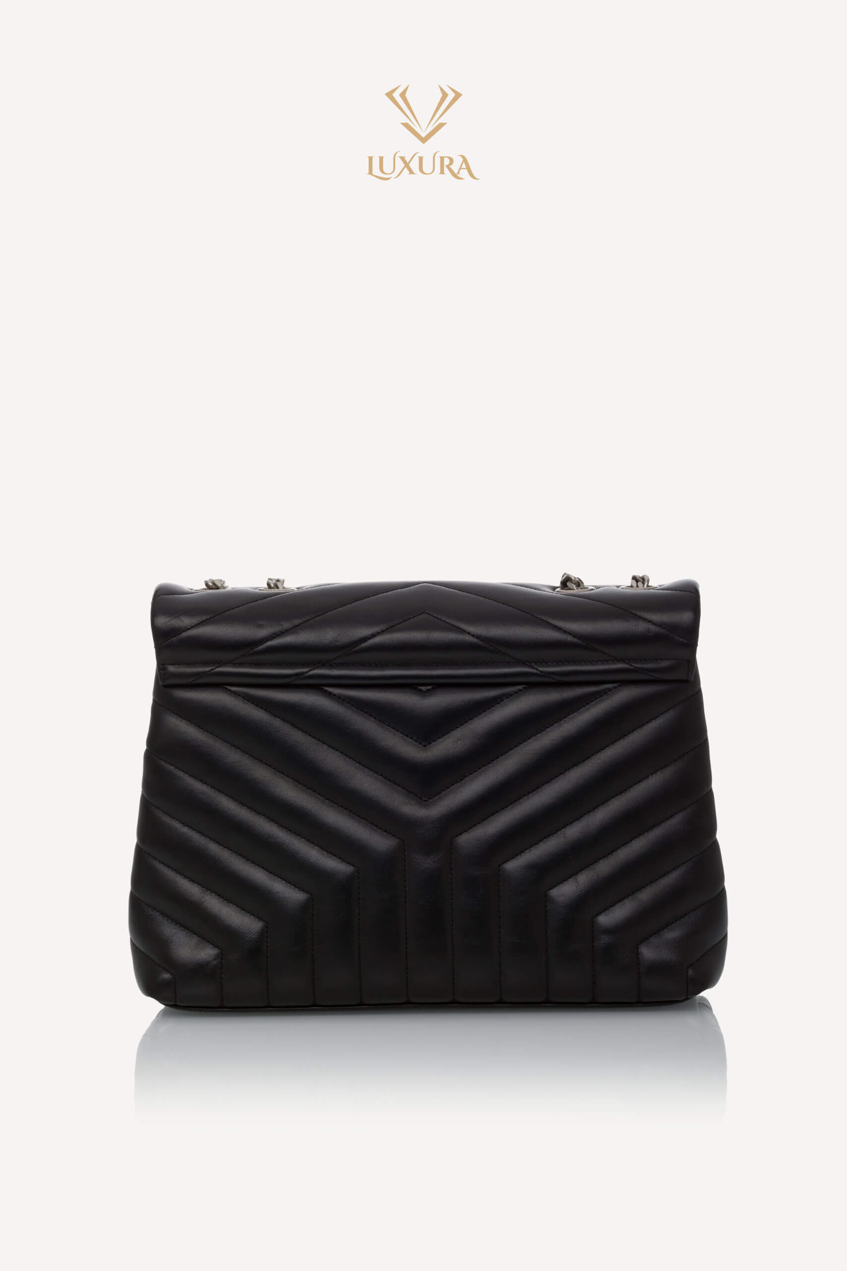 Calfskin Y Quilted Monogram Medium Loulou Chain Satchel Black