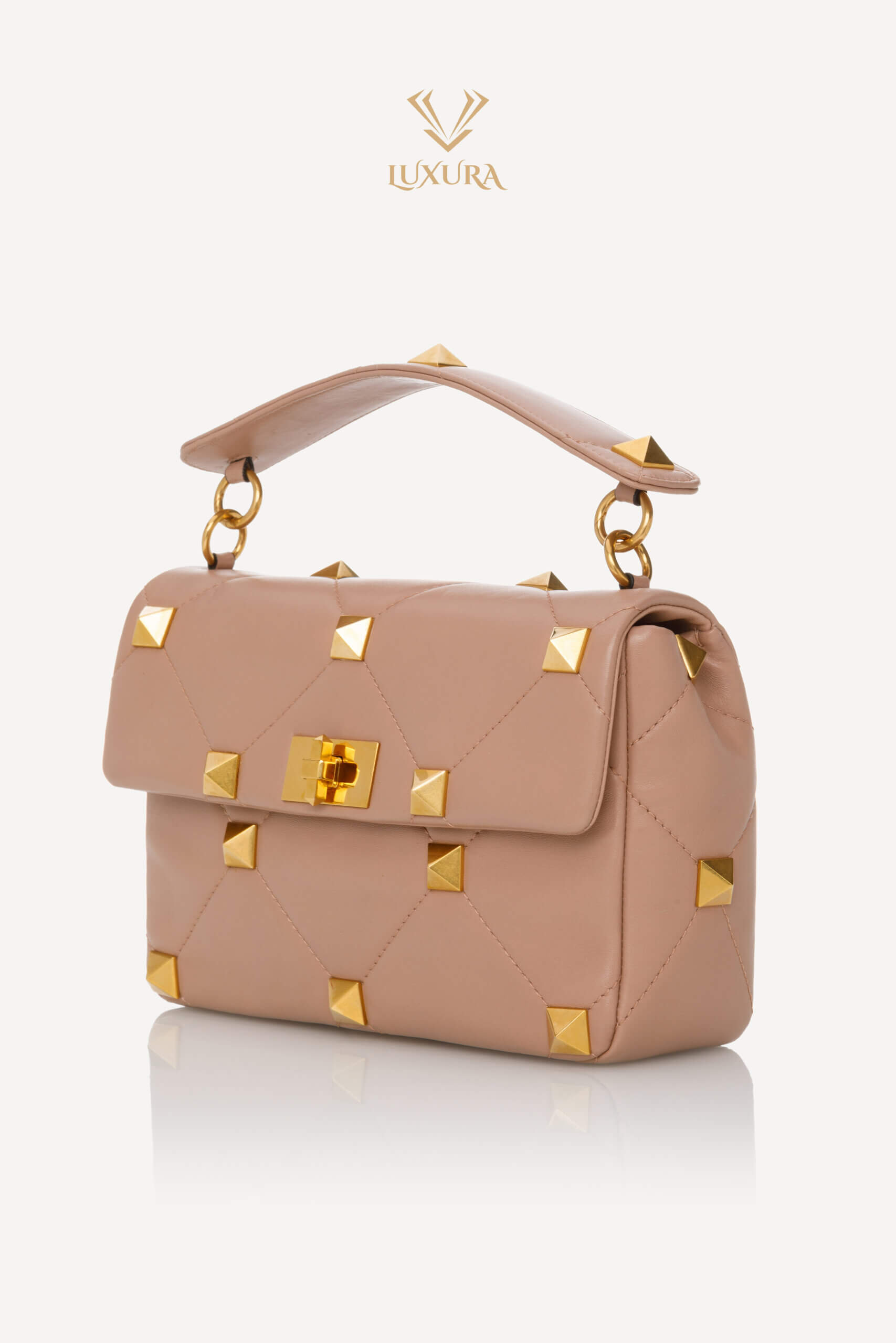 Nappa Large Roman Stud Shoulder Bag Rose Cannelle