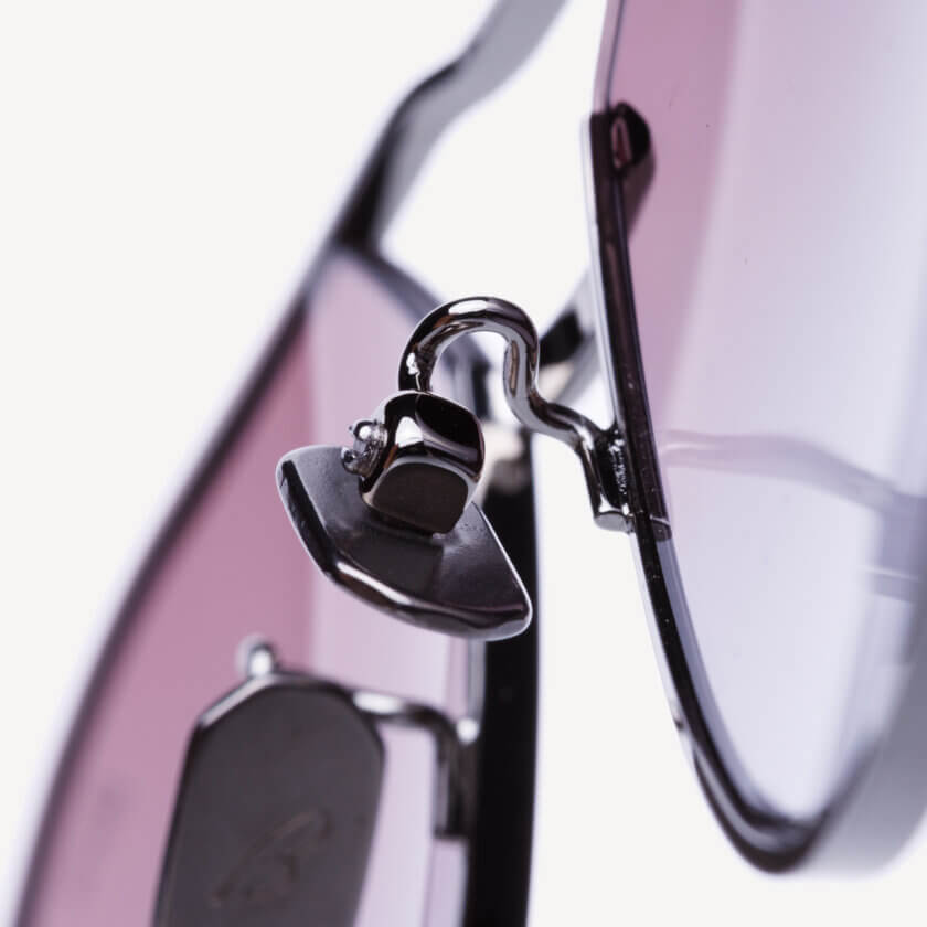 Compozitie: Metal frontal: metal / Material brațe: metal / Material lentile: nailon / Material cadru: metal / Culoare lentile: gri/roz