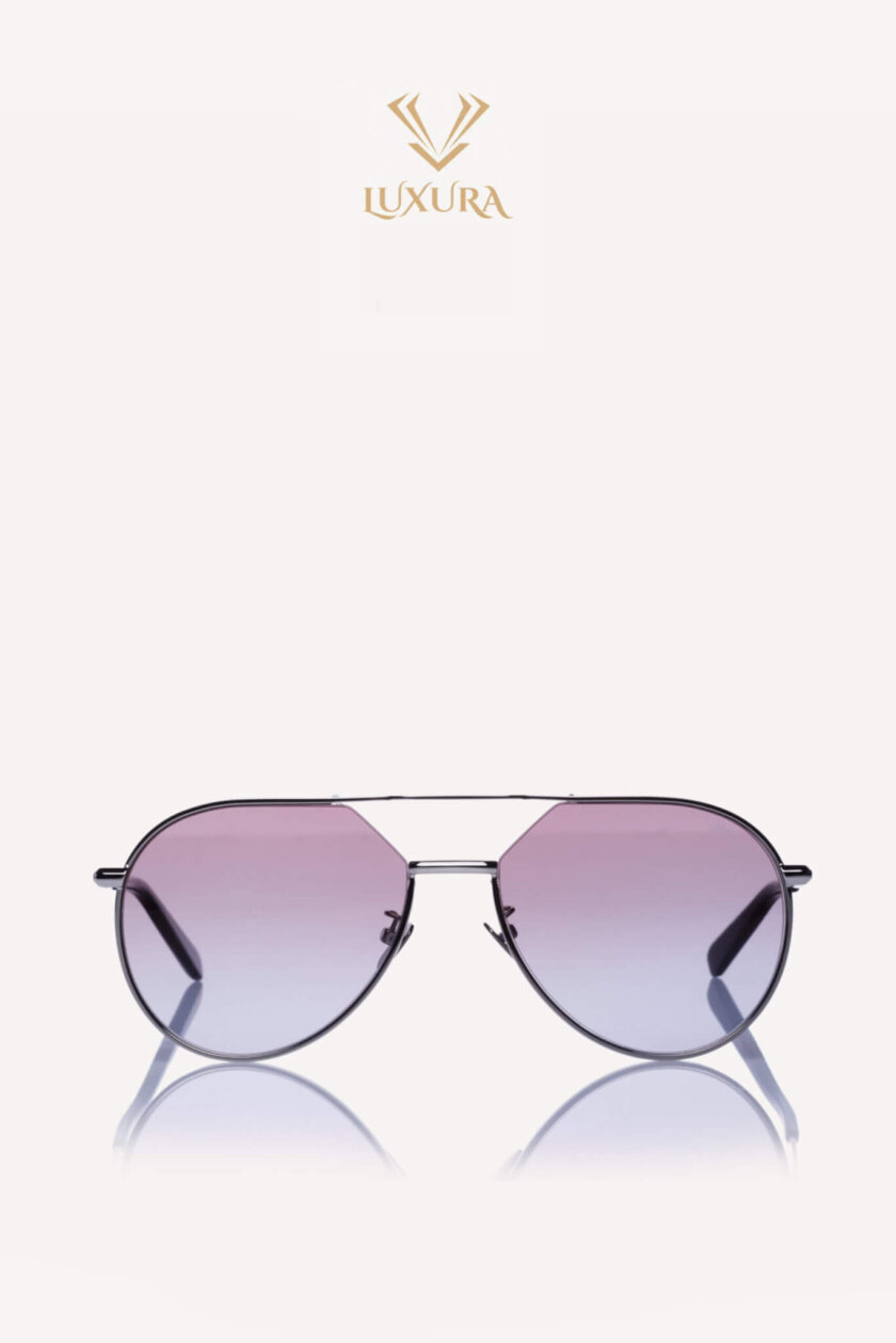 Ochelari de soare cu formă pilot, atemporali, înfrumusețați de lentilele vintage bicolore cu gradient, oferind o atingere sofisticată și neasteptată.