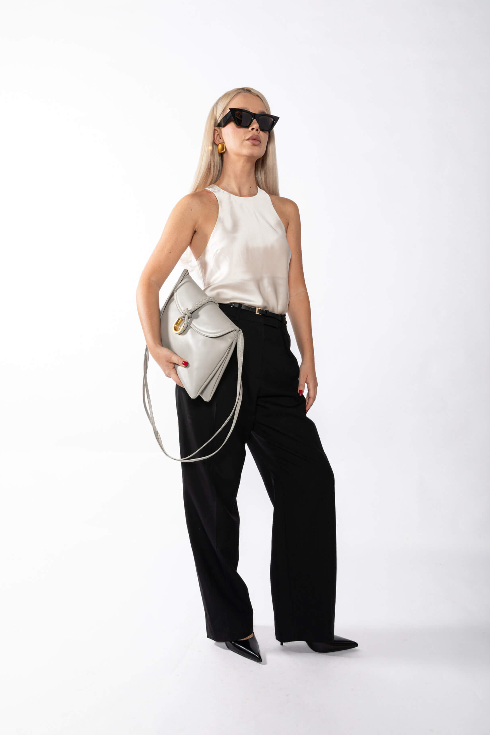 - Model: Medium Liberta Leather Shoulder Bag Grey