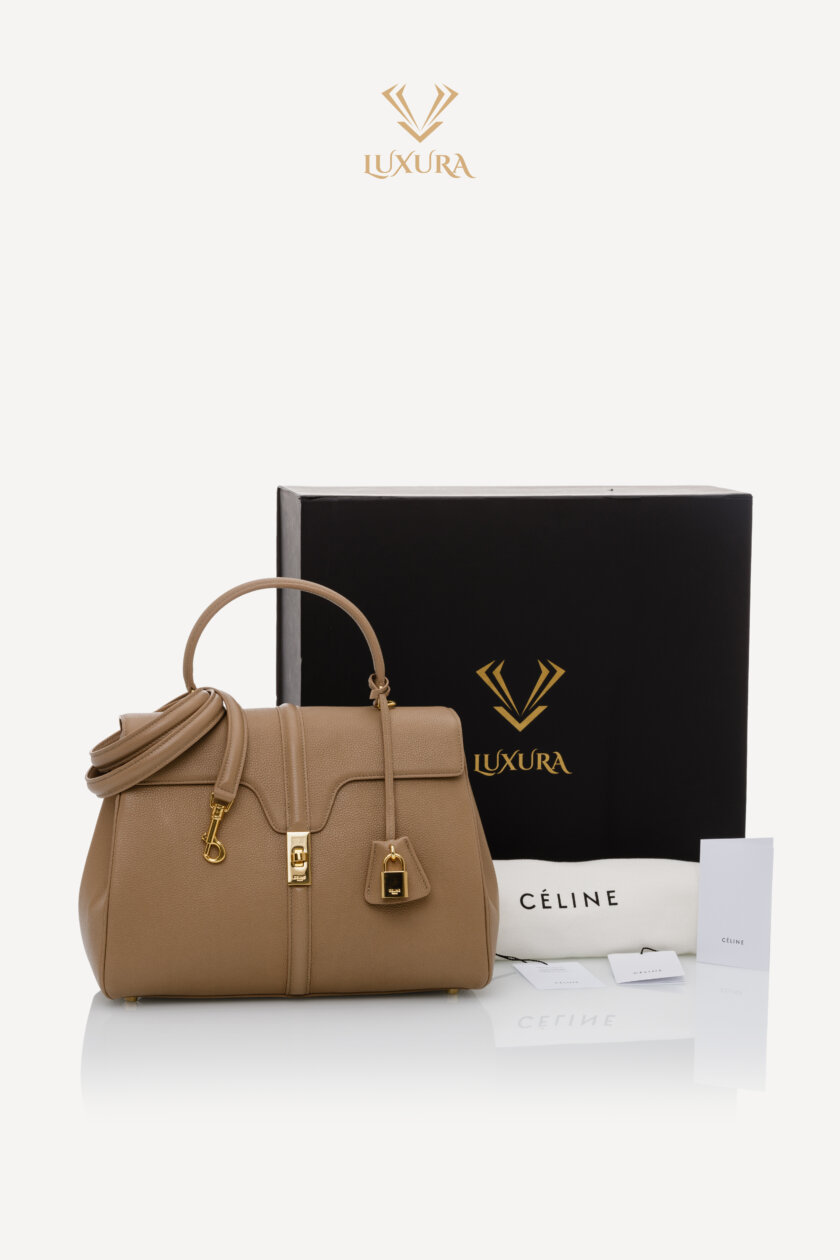 Celine 16 a fost prima geantă lansată de Hedi Slimane atunci când a fost denumit ca director creativ al brand-ului parizian în 2018. Inspirația din spatele numelui acestei piese a fost strada Rue Vivienne 16 din Paris unde se află și sediul principal Celine, design-ul sofisticat fiind realizat ca un omagiu adus stilului clasic parizian. Nuanța de bej o face potrivită pentru toate ocaziile, iar versatilitatea este oferită de mânerul superior și banduliera detașabilă. Geanta a fost purtata prima oară de Lady Gaga în Paris, iar mai apoi a devenit o favorită printre celebritățile de la Hollywood.