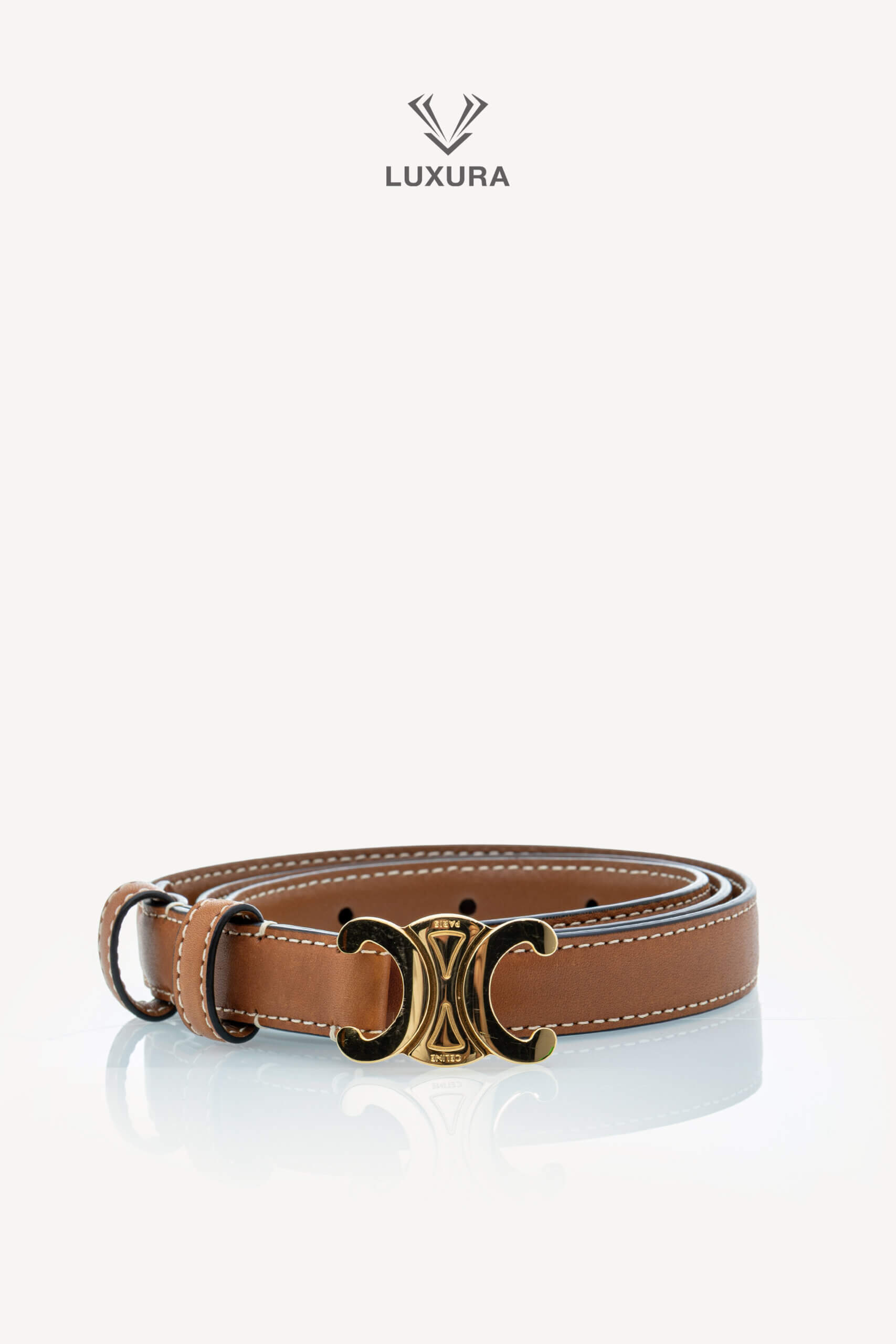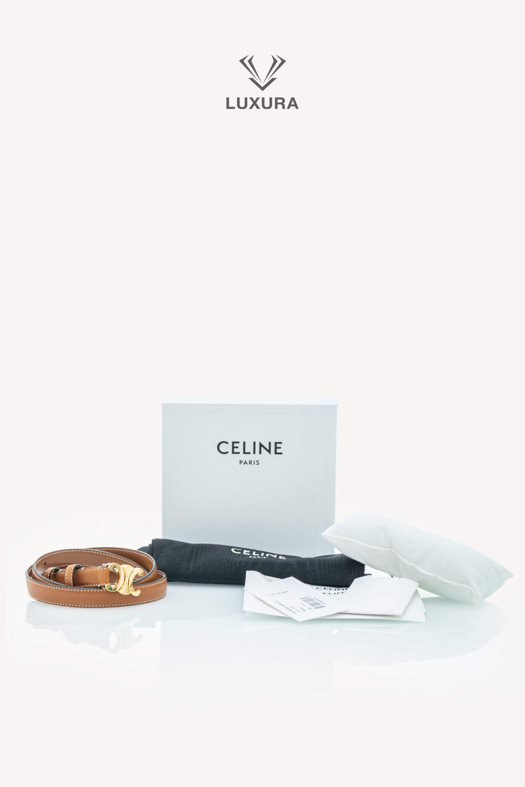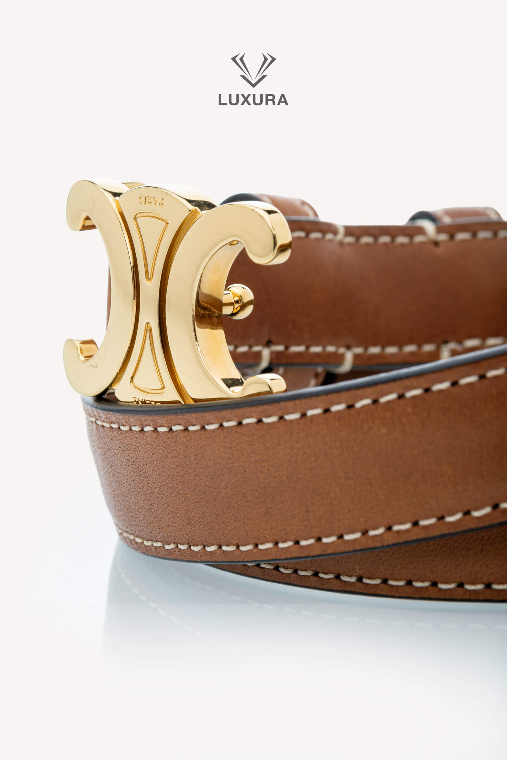 CELINE Triomphe Belt 18mm in Taurillon Leather Tan 75 cm Maro, Maro – Accesorii de colecție