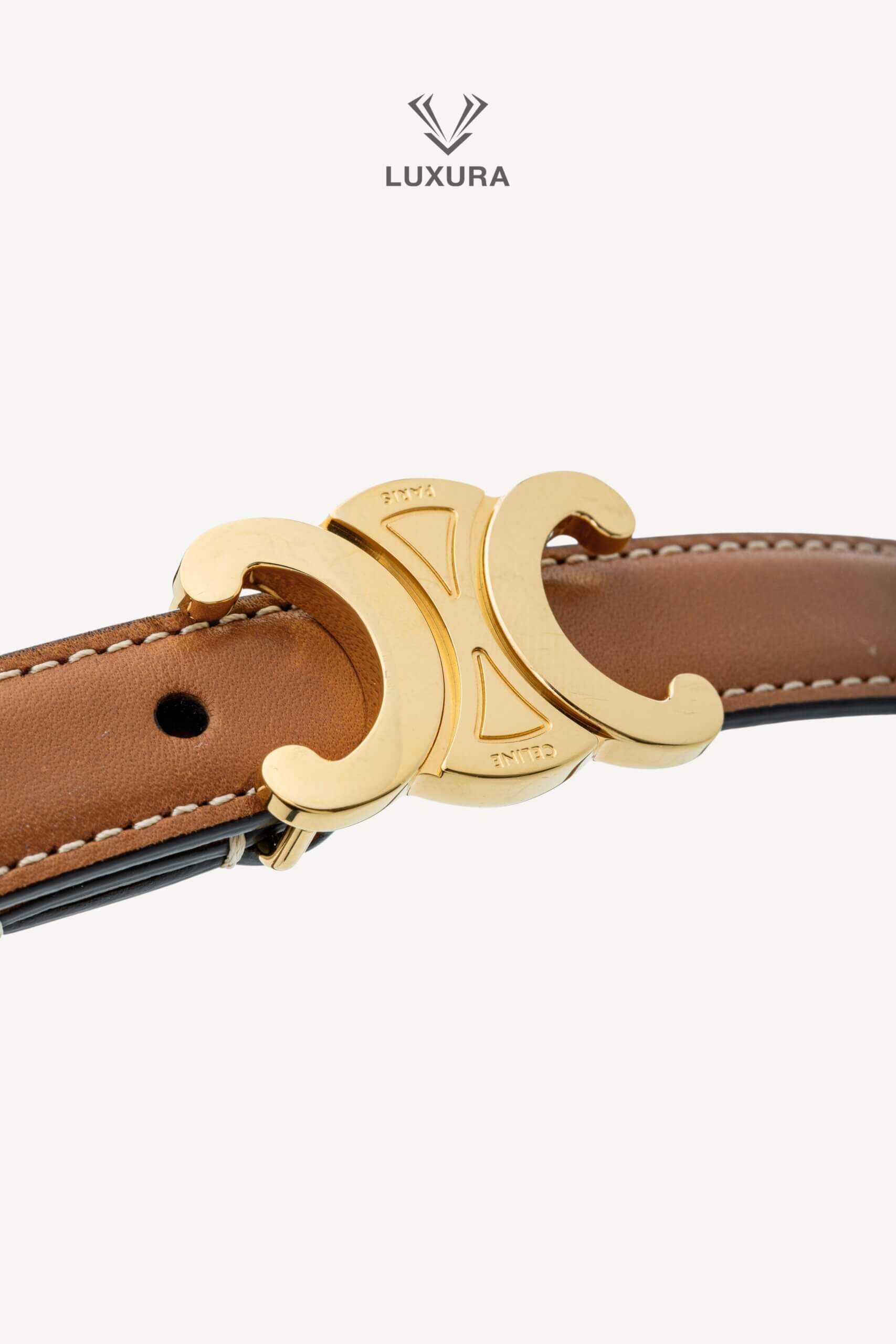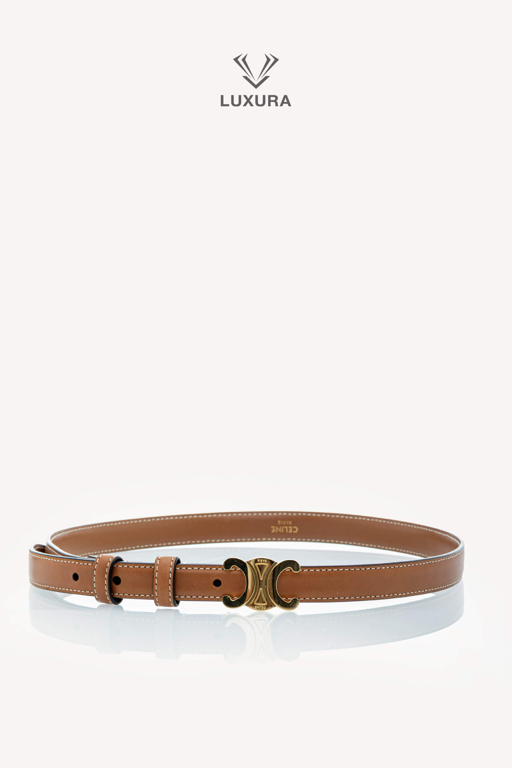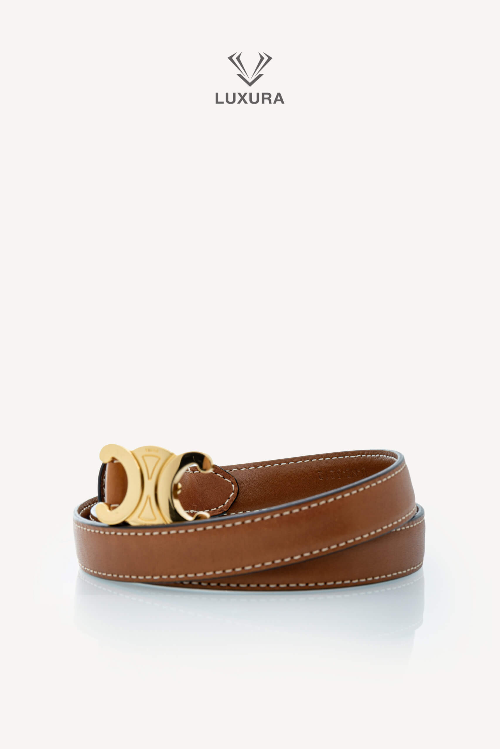 CELINE Triomphe Belt 18mm in Taurillon Leather Tan 75 cm Maro, Maro – Accesorii de colecție