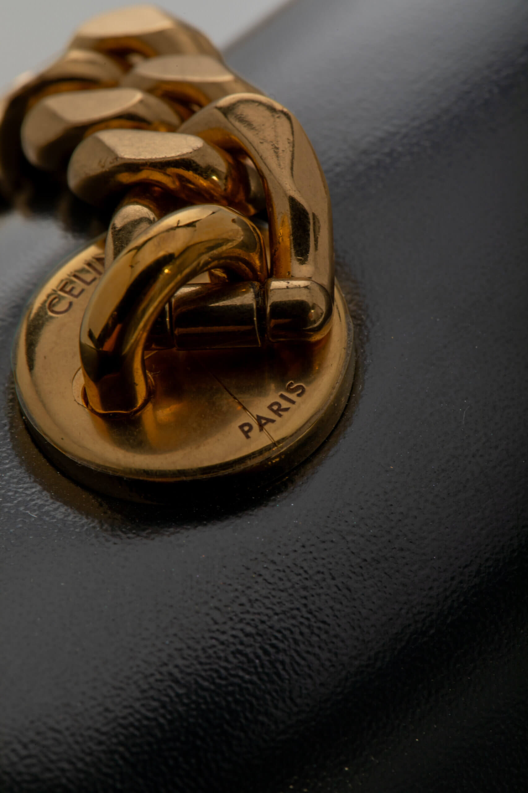 CELINE Triomphe Chain Shoulder Bag Smooth Calfskin Black Negru, Negru – Accesorii de colecție