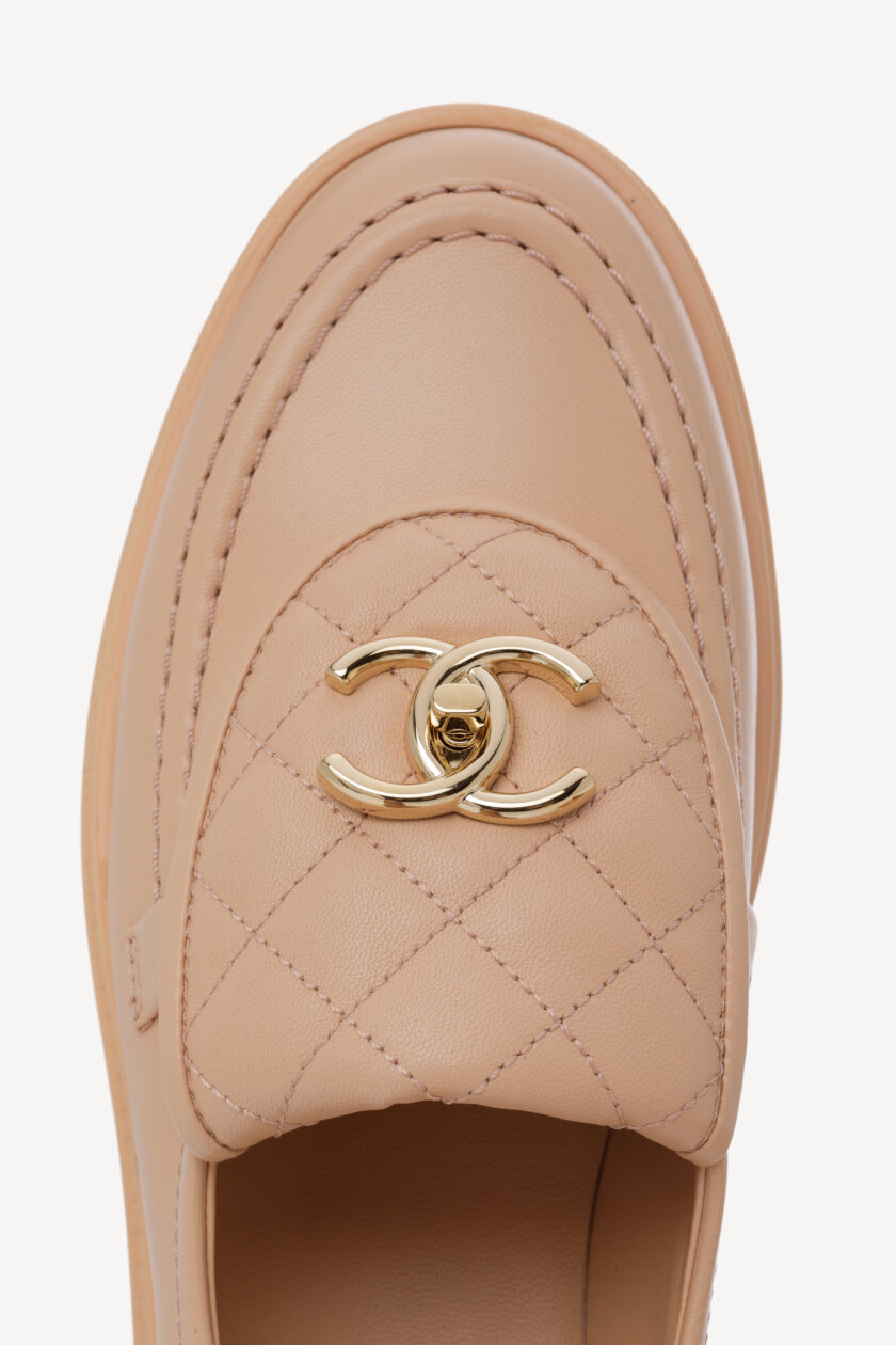 Celebrii mocasini Chanel CC Turnlock nu ar trebui sa lipsească din garderoba de bază a nici unei femei. Fiind o alegere elegantă și sofisticată datorită siluetei clasice de tip loafer, pantofii sunt potriviți pentru o foarte mare varietate de ocazii. Logo-ul Chanel CC și materialul matlasat sunt cele două caracteristici de lux care adaugă acea notă de exclusivitate pentru a ieși în evidentă fără un prea mare efort.
