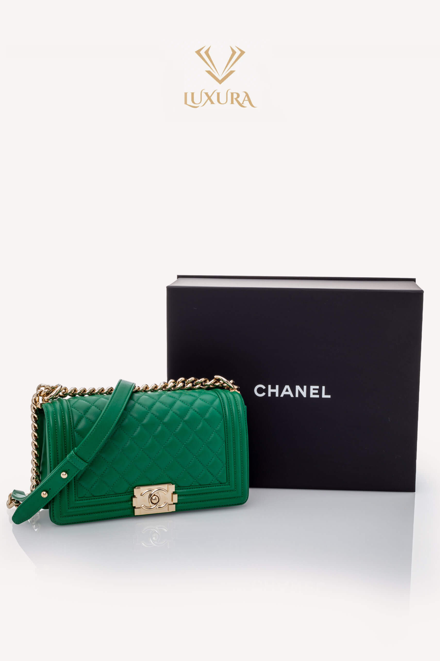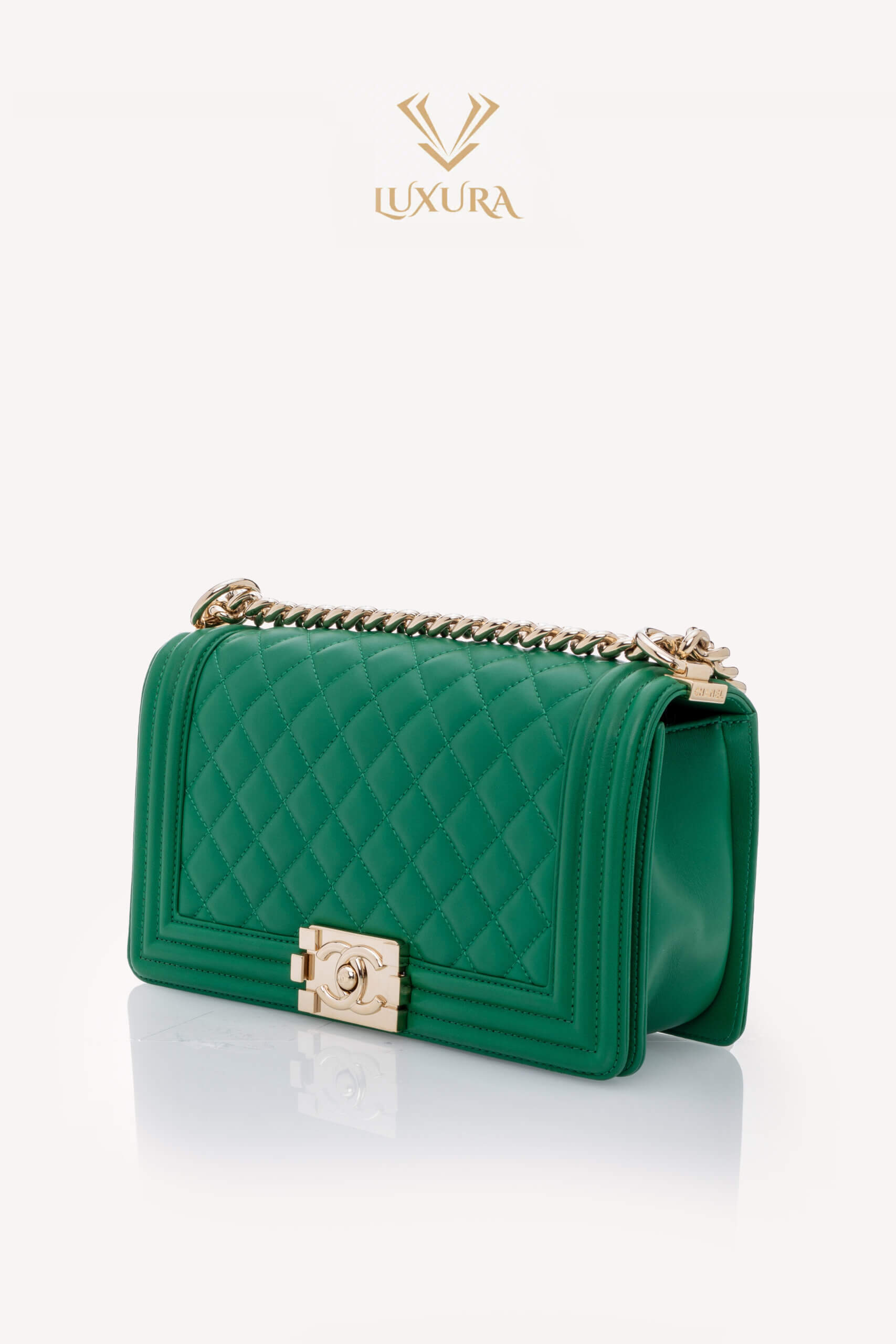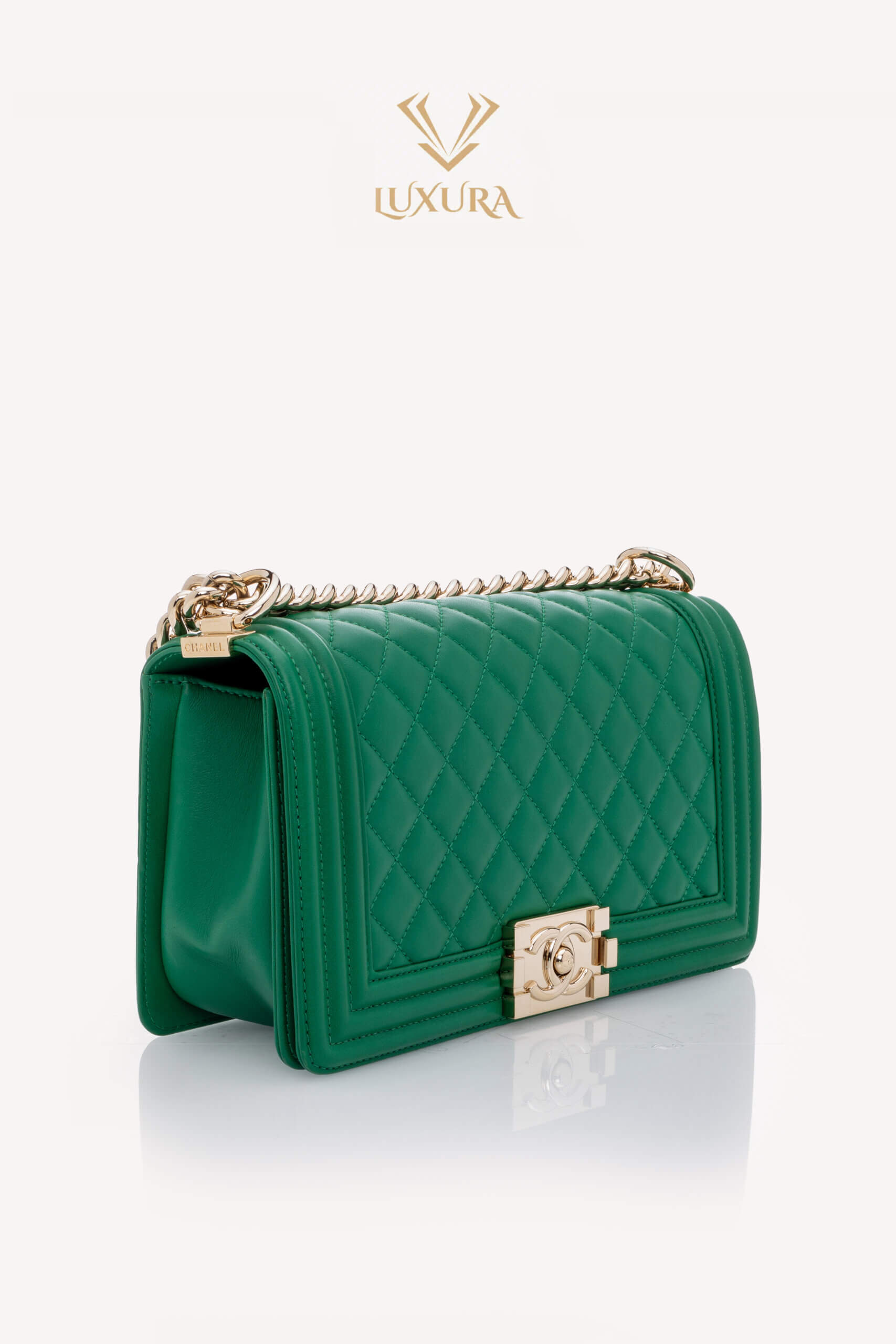 CHANEL Boy Medium Flap Bag Lambskin Green Verde, Verde – Genti de colecție