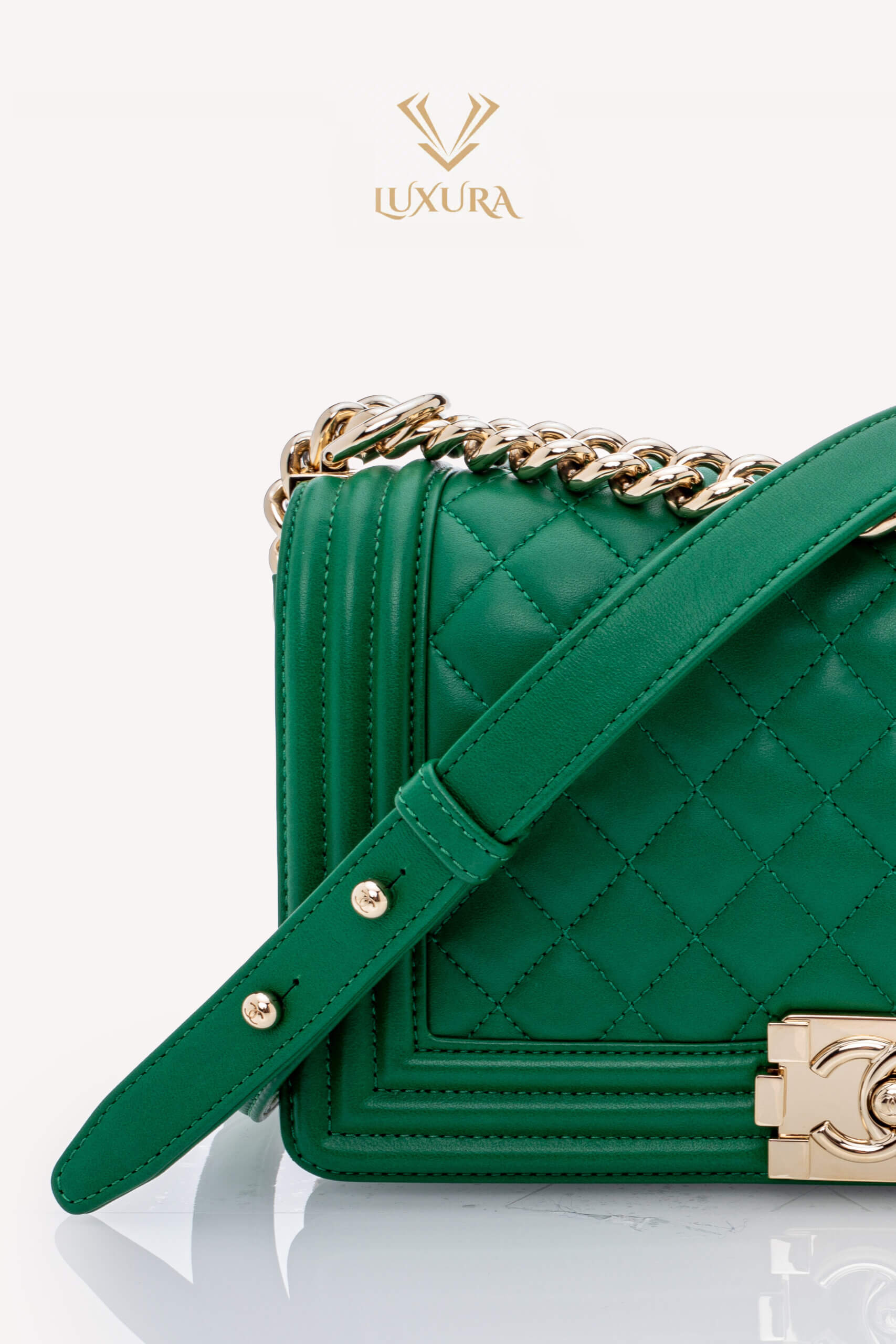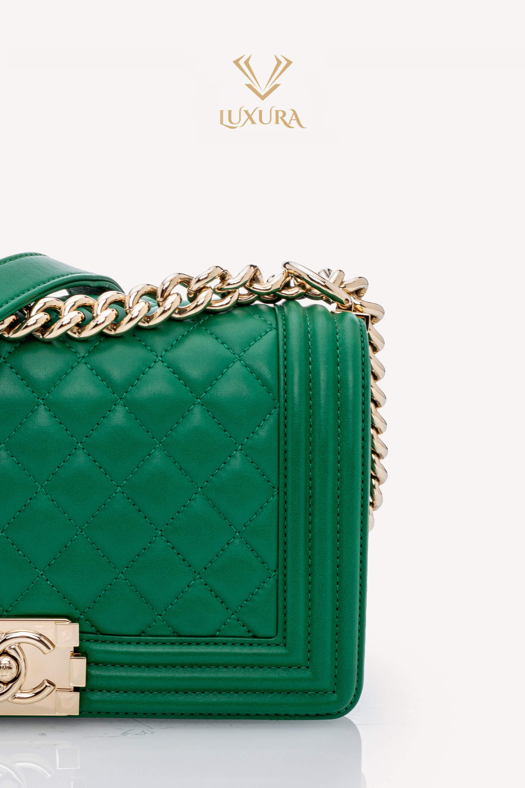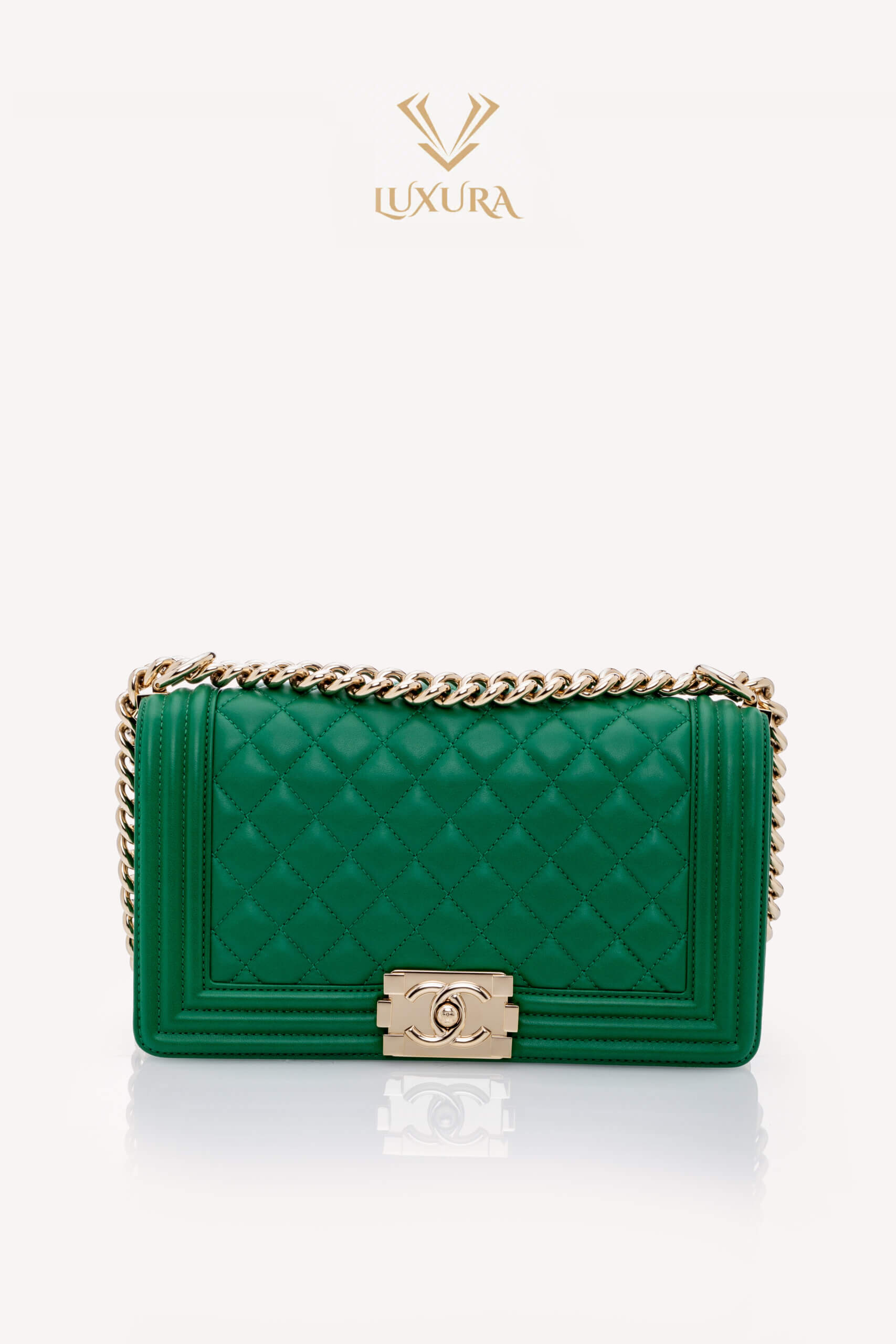 CHANEL Boy Medium Flap Bag Lambskin Green Verde, Verde – Genti de colecție