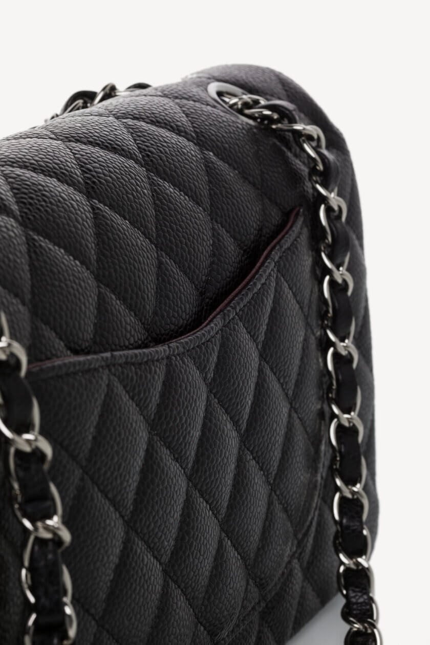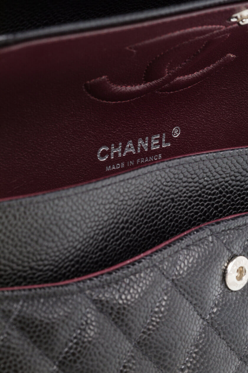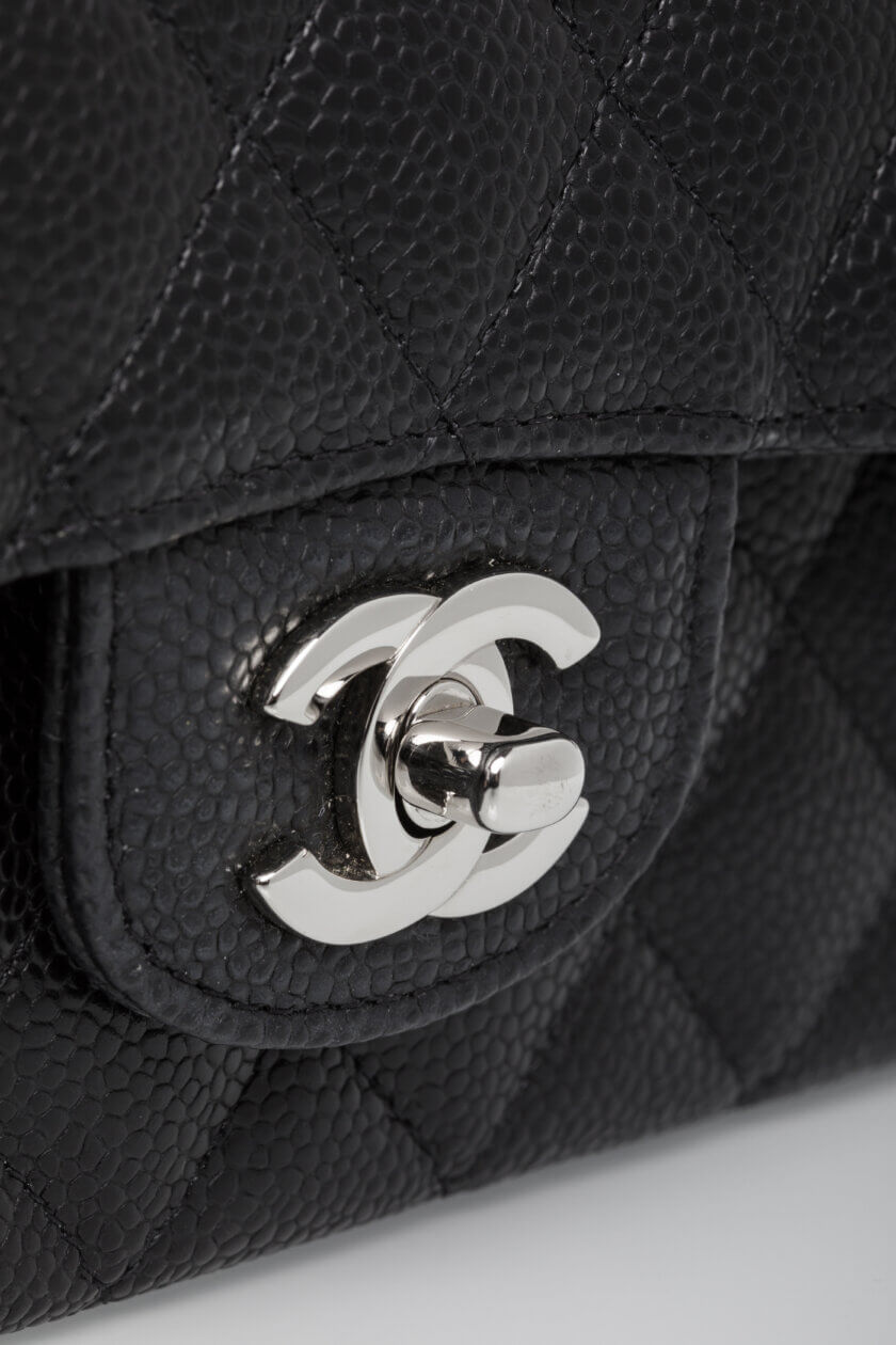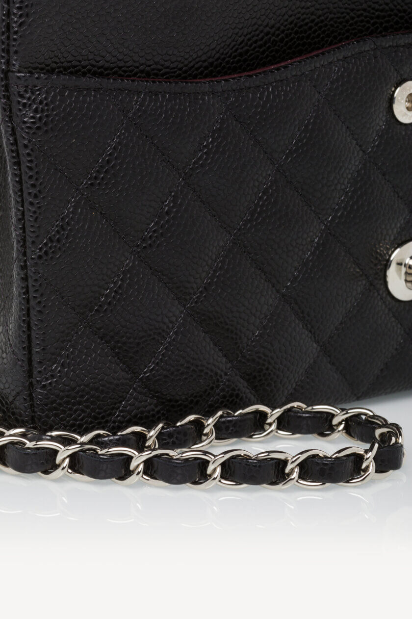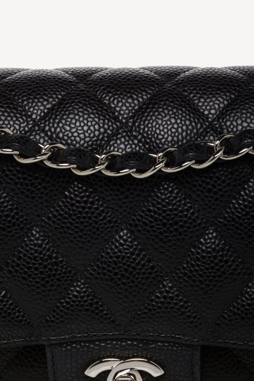 Classic Bag Grained Calfskin & Silver Tone Metal Black