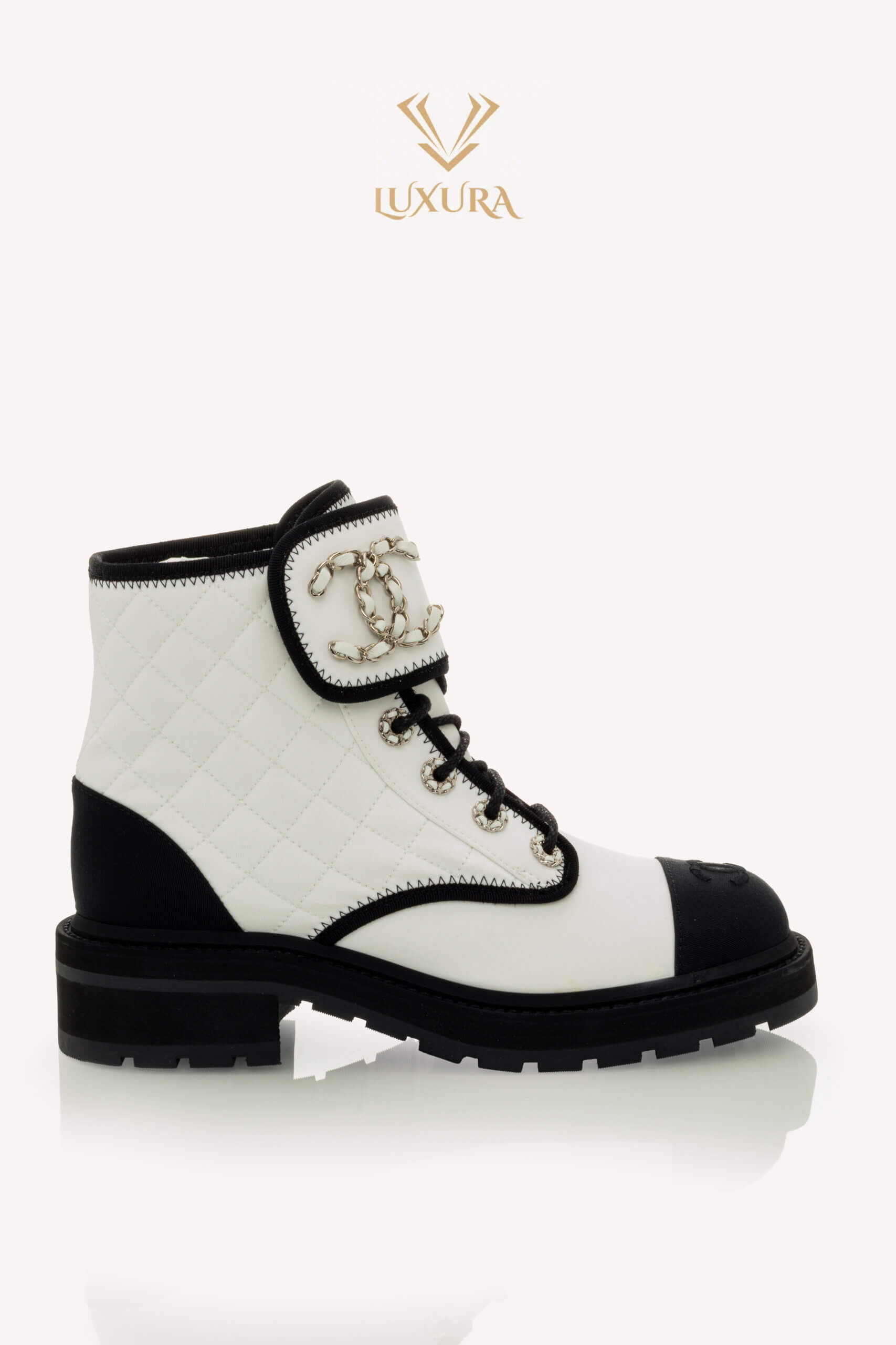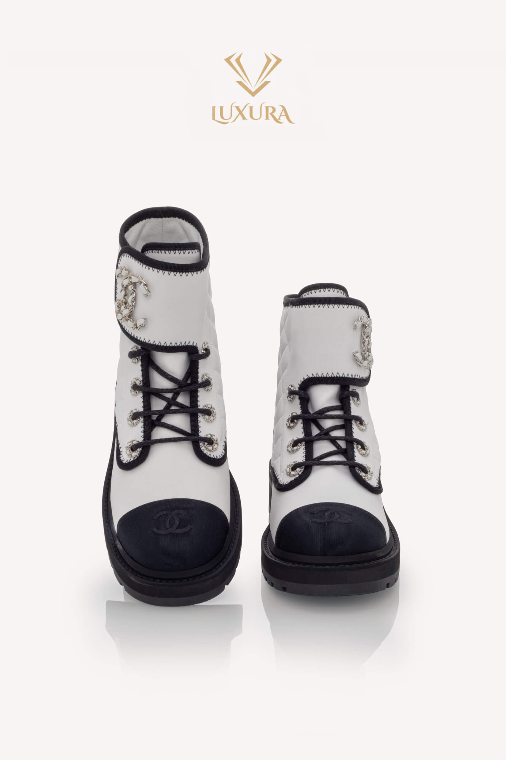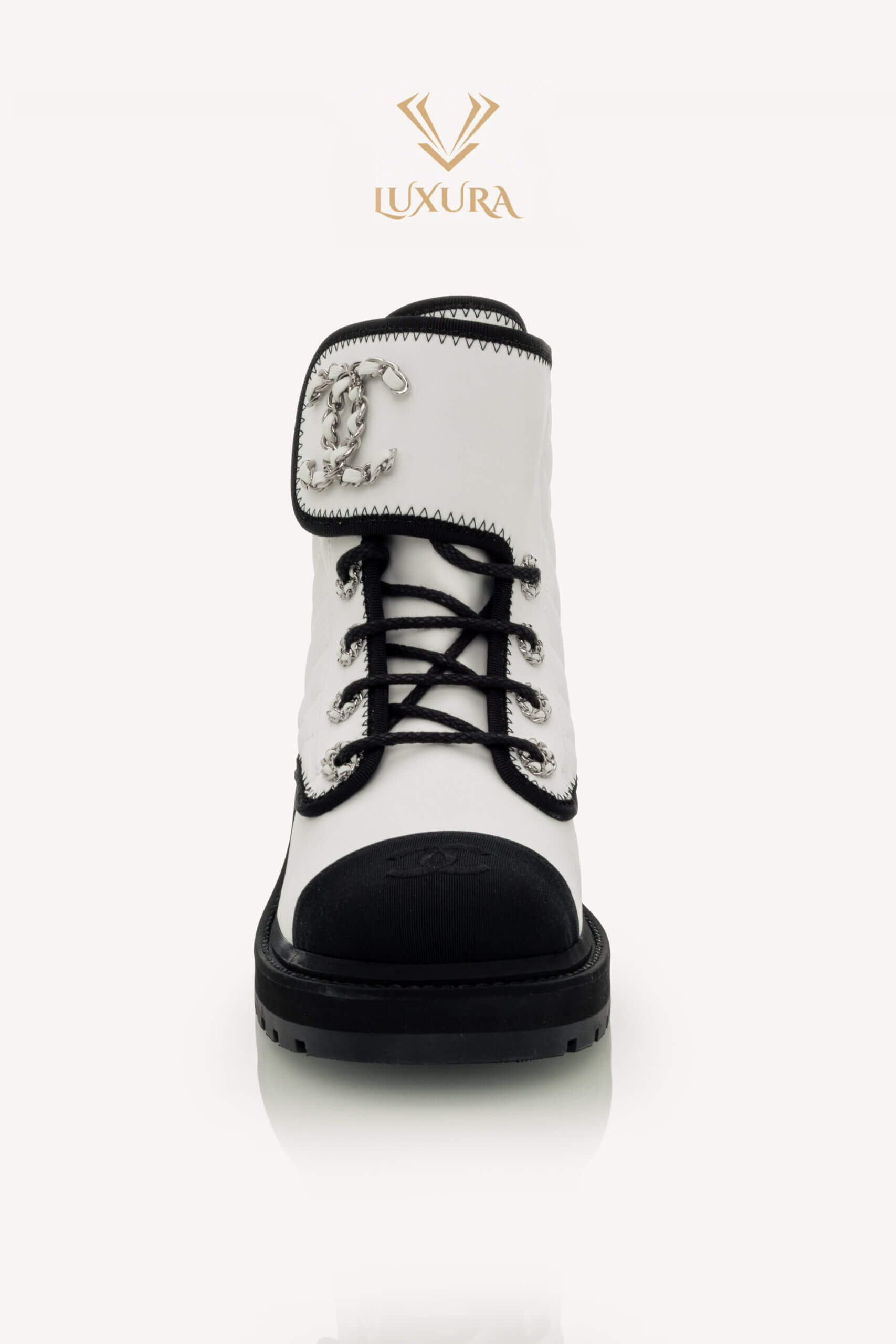 • Model: Interlocking CC Logo Combat Boots White 37.5