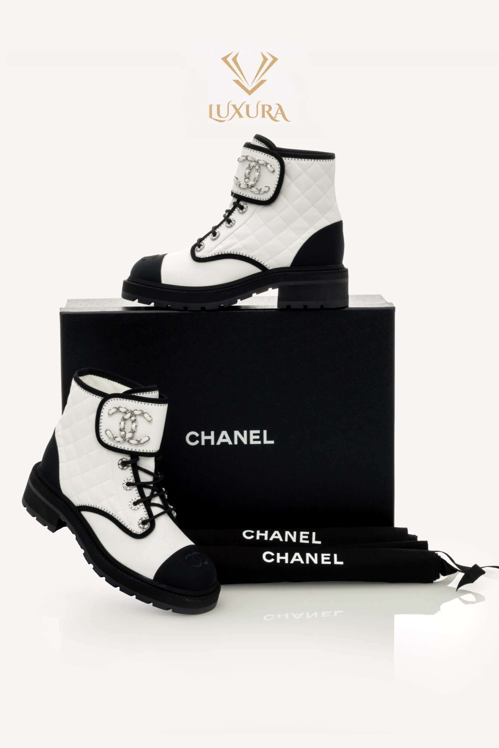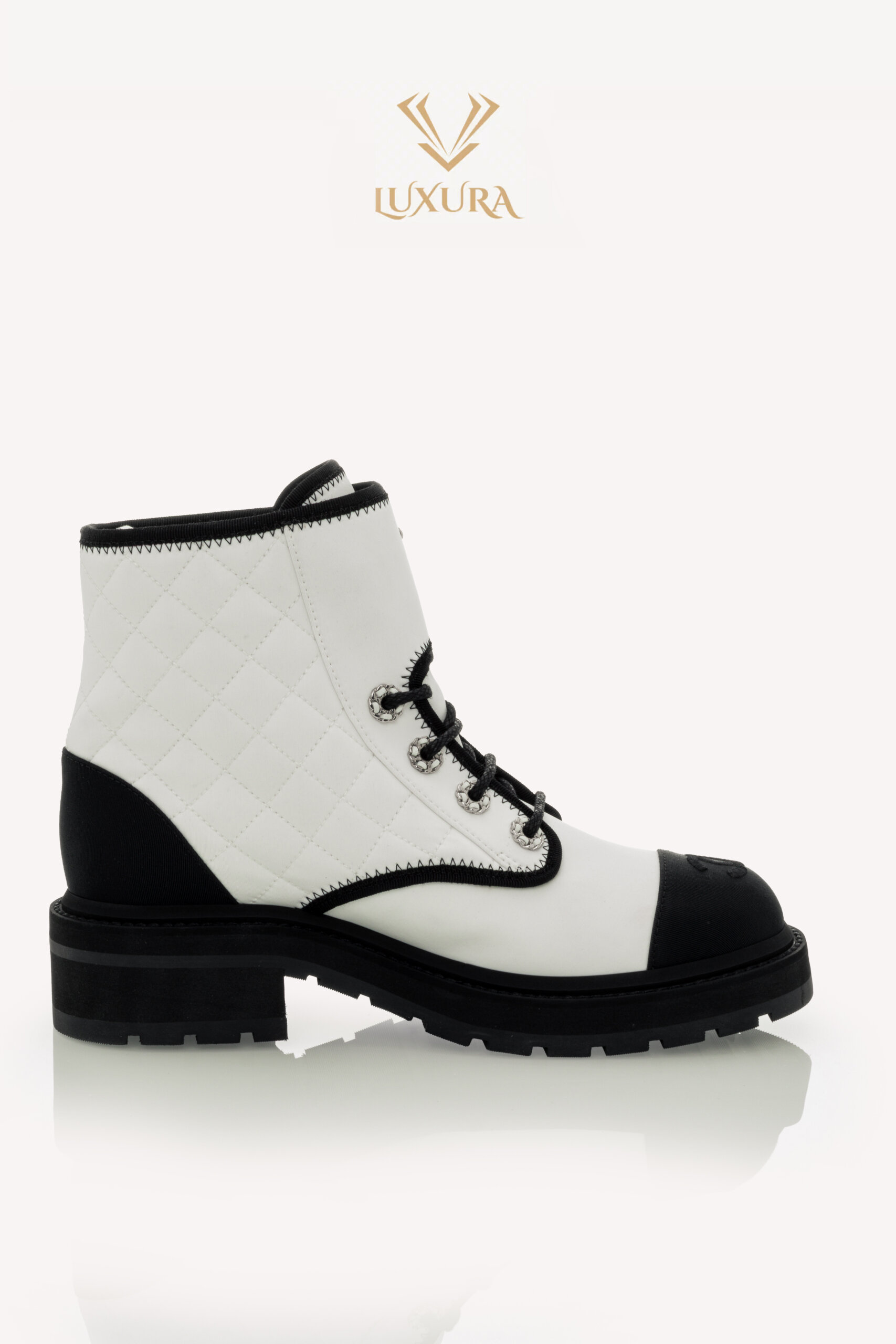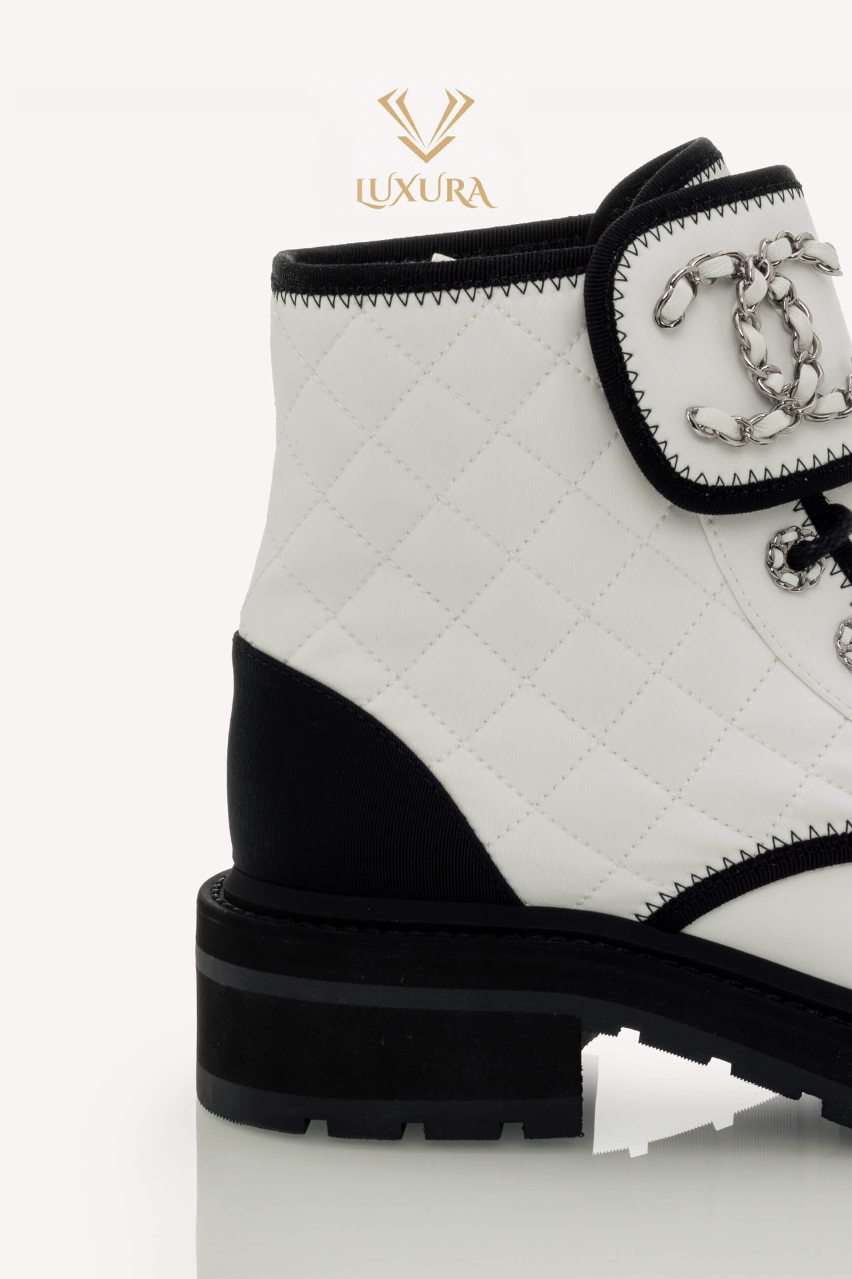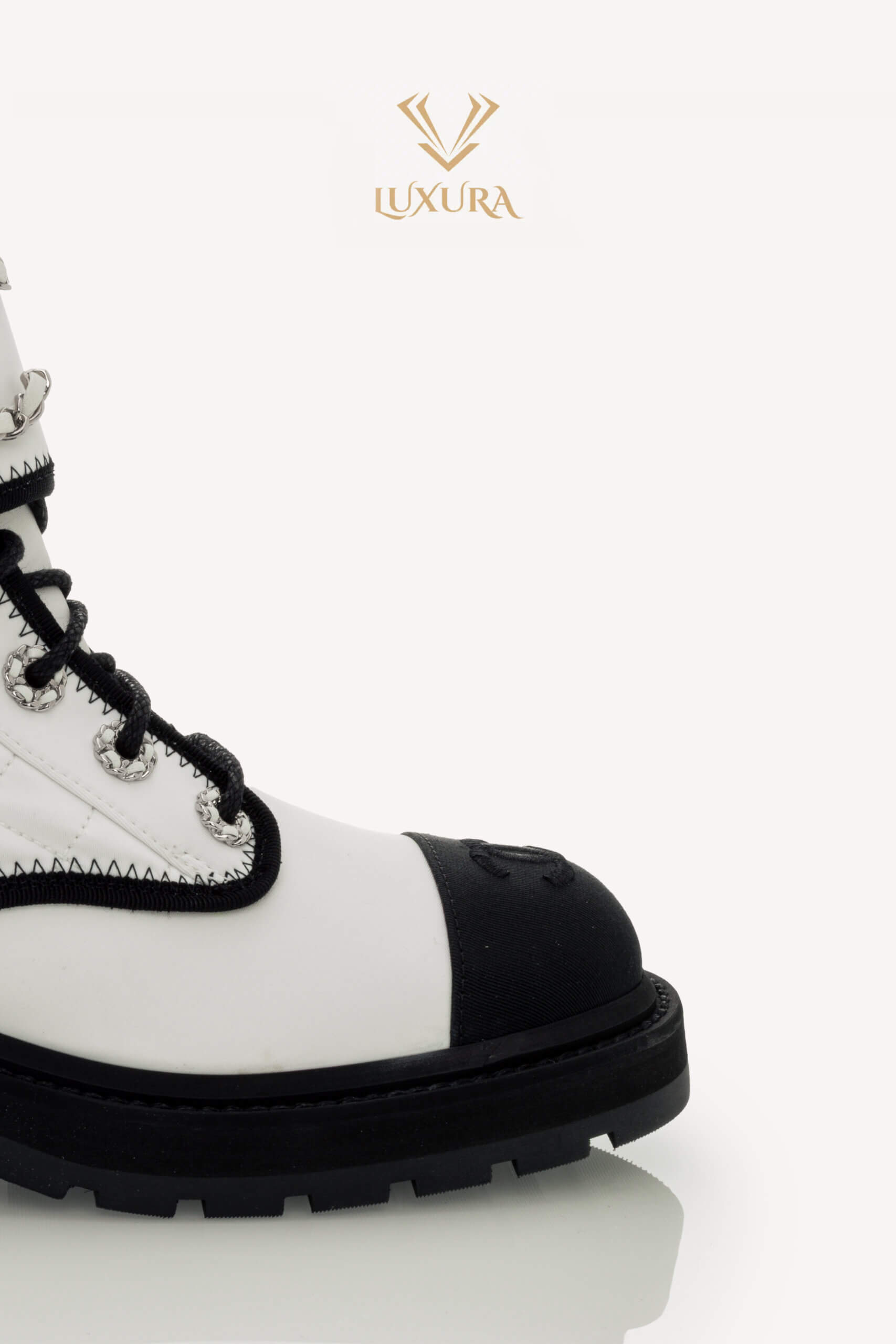 • Model: Interlocking CC Logo Combat Boots White 37.5