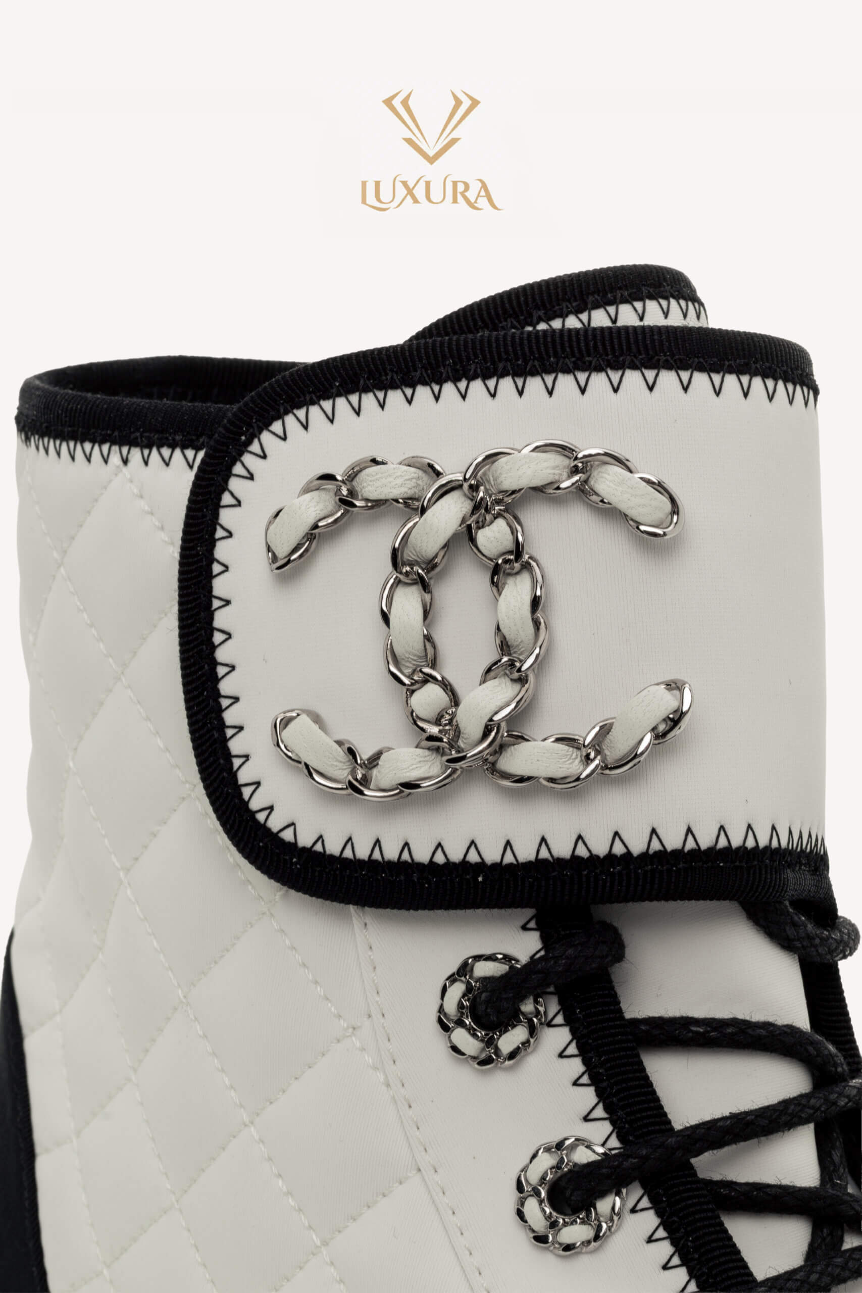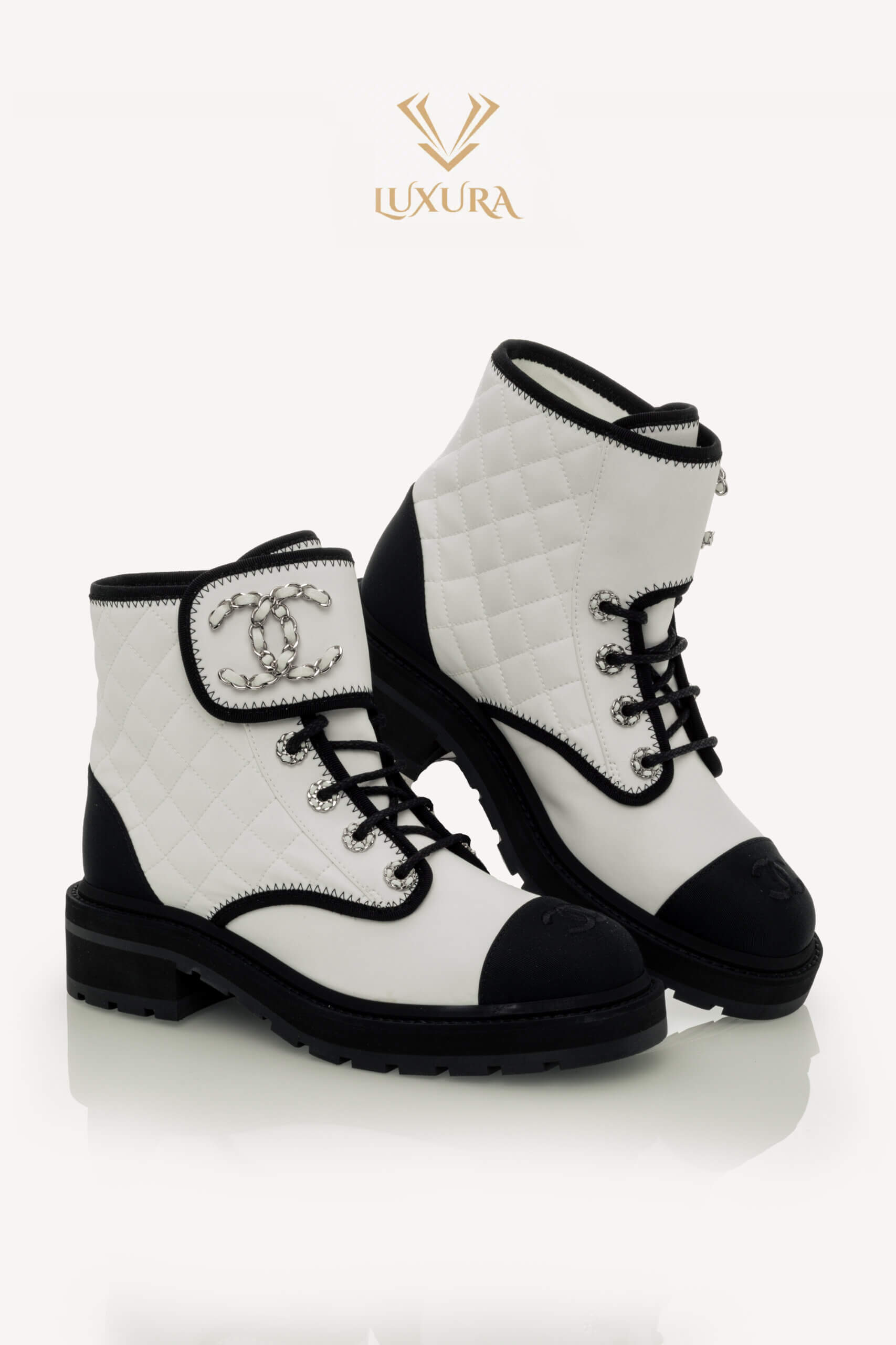 CHANEL Interlocking CC Logo Combat Boots White 37.5 Alb – Incaltaminte de colecție
