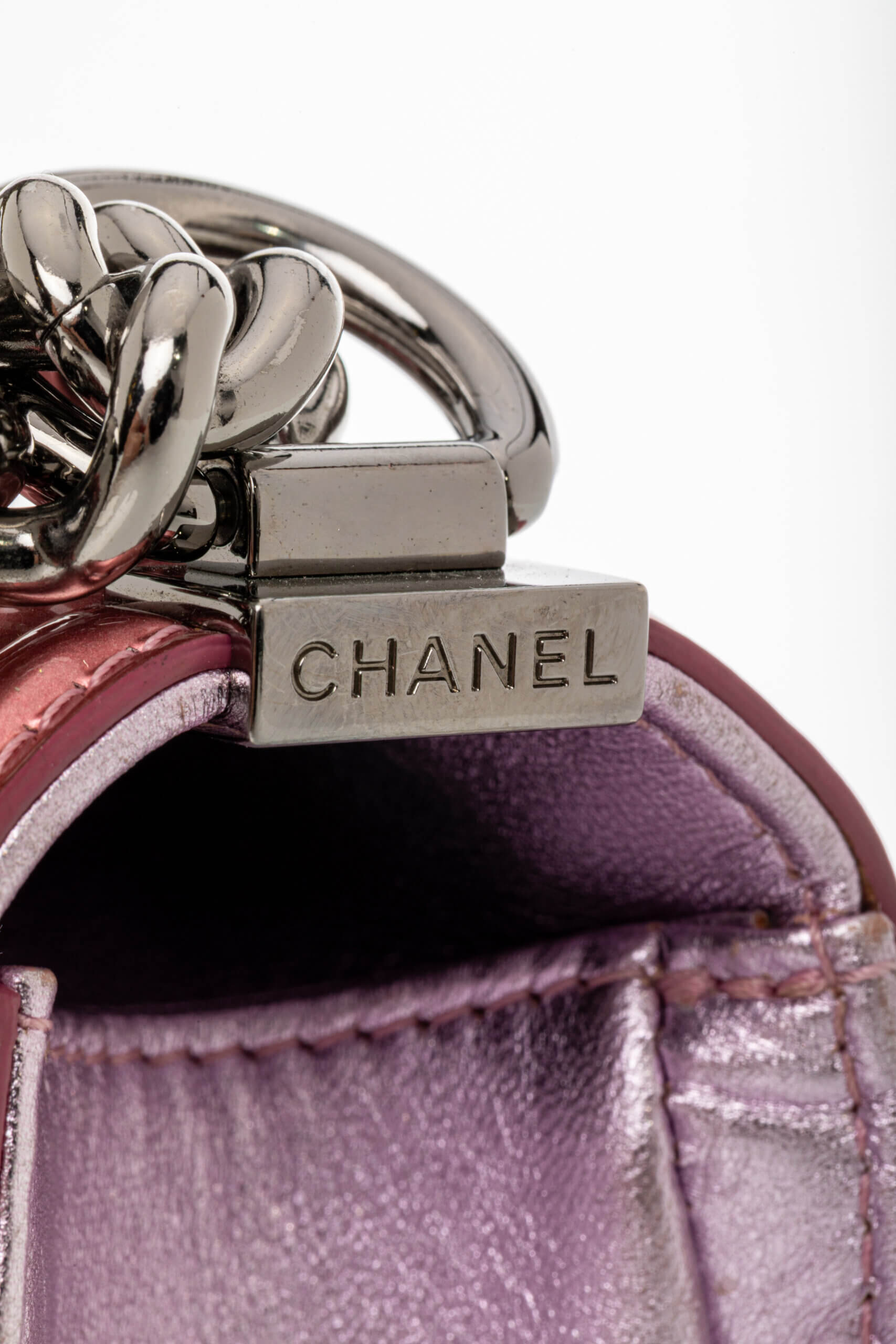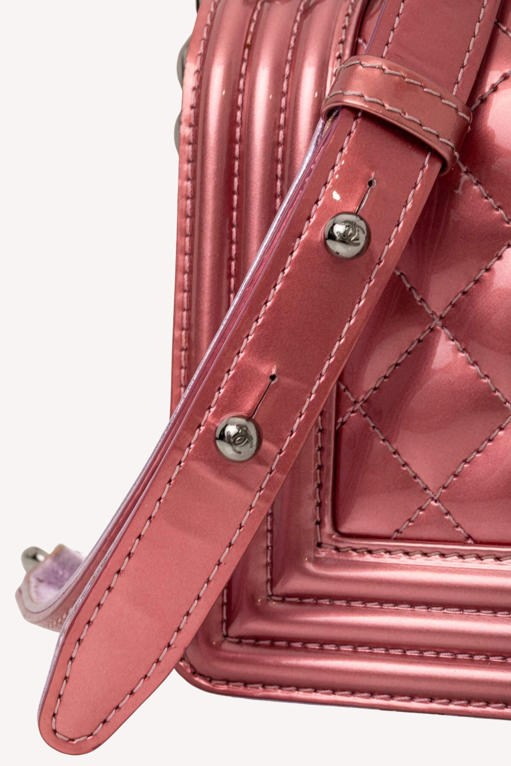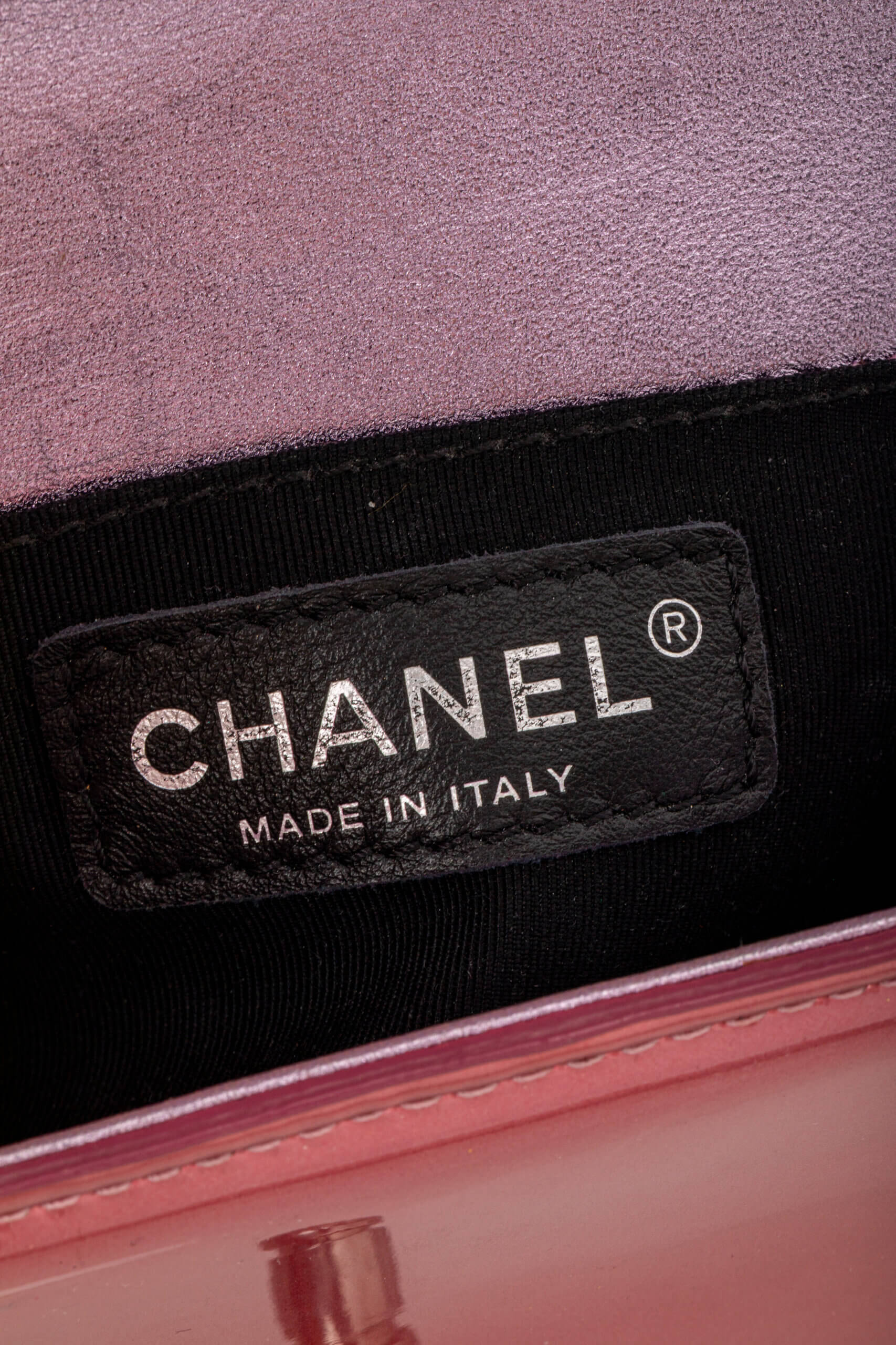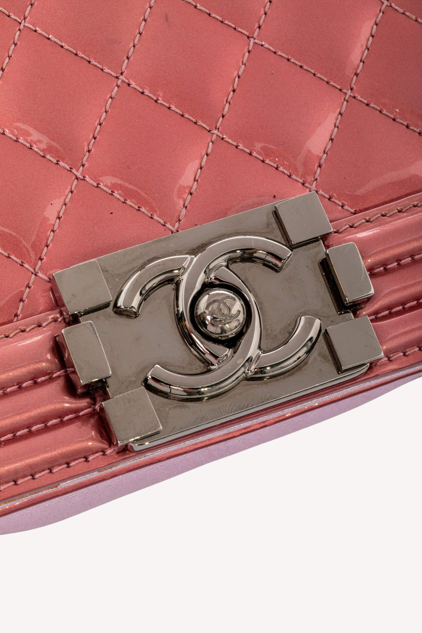 CHANEL Leboy Small in Metallic Burgundy and Lavander Patent Calfskin Leather with Ruthenium Hardware Metallic Burgundy/ Lavander, Negru – Accesorii de colecție