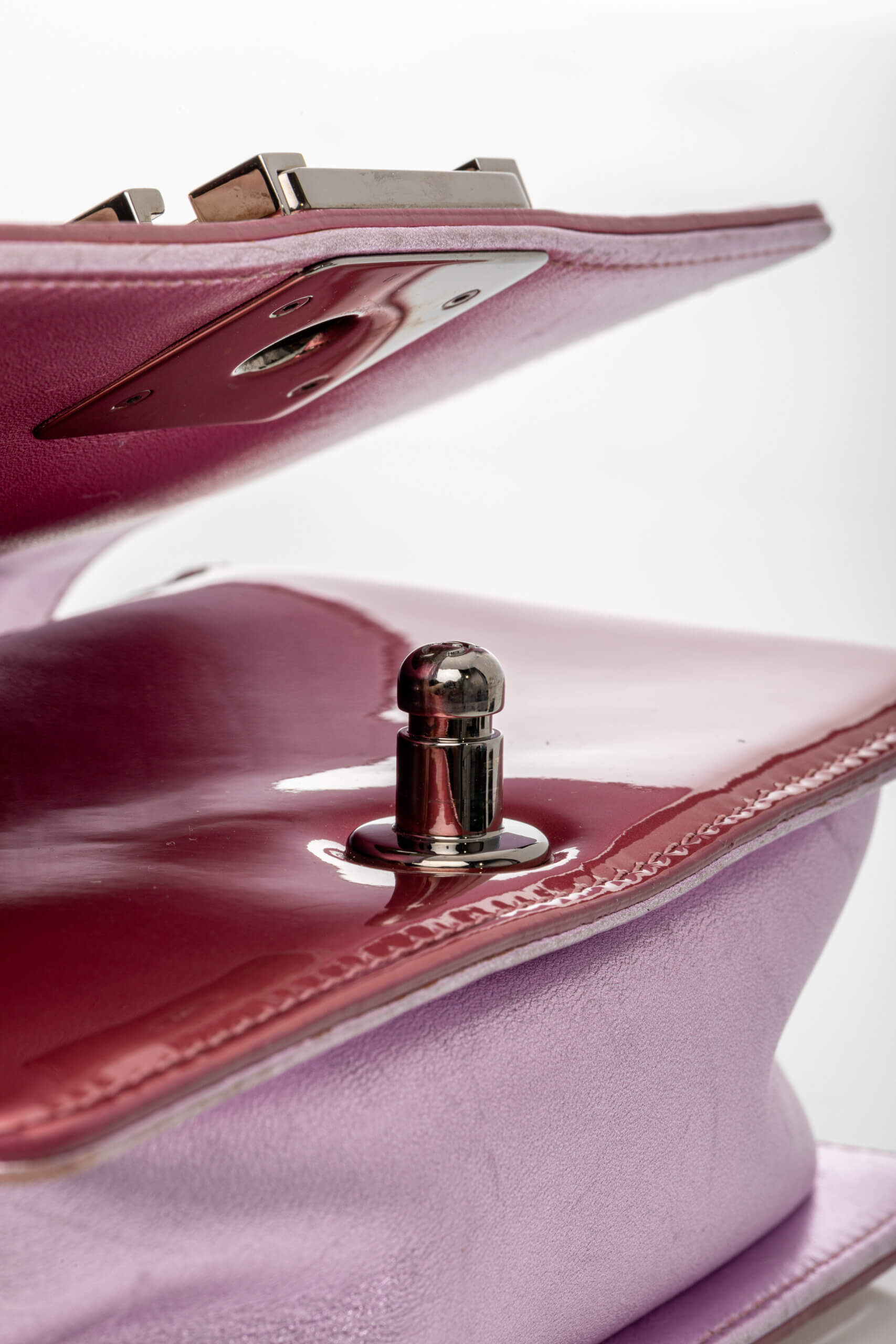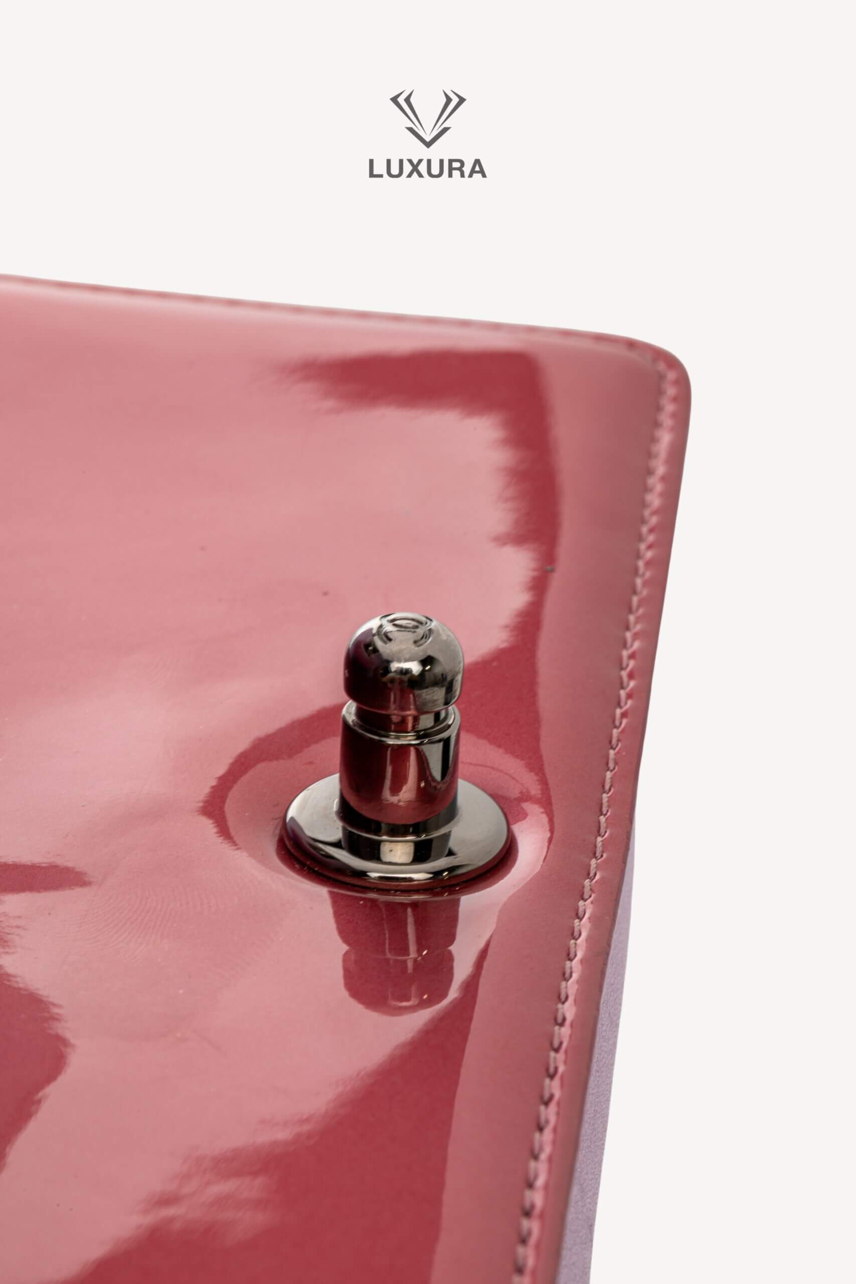 - Model: Leboy Small in Metallic Burgundy and Lavander Patent Calfskin Leather with Ruthenium Hardware