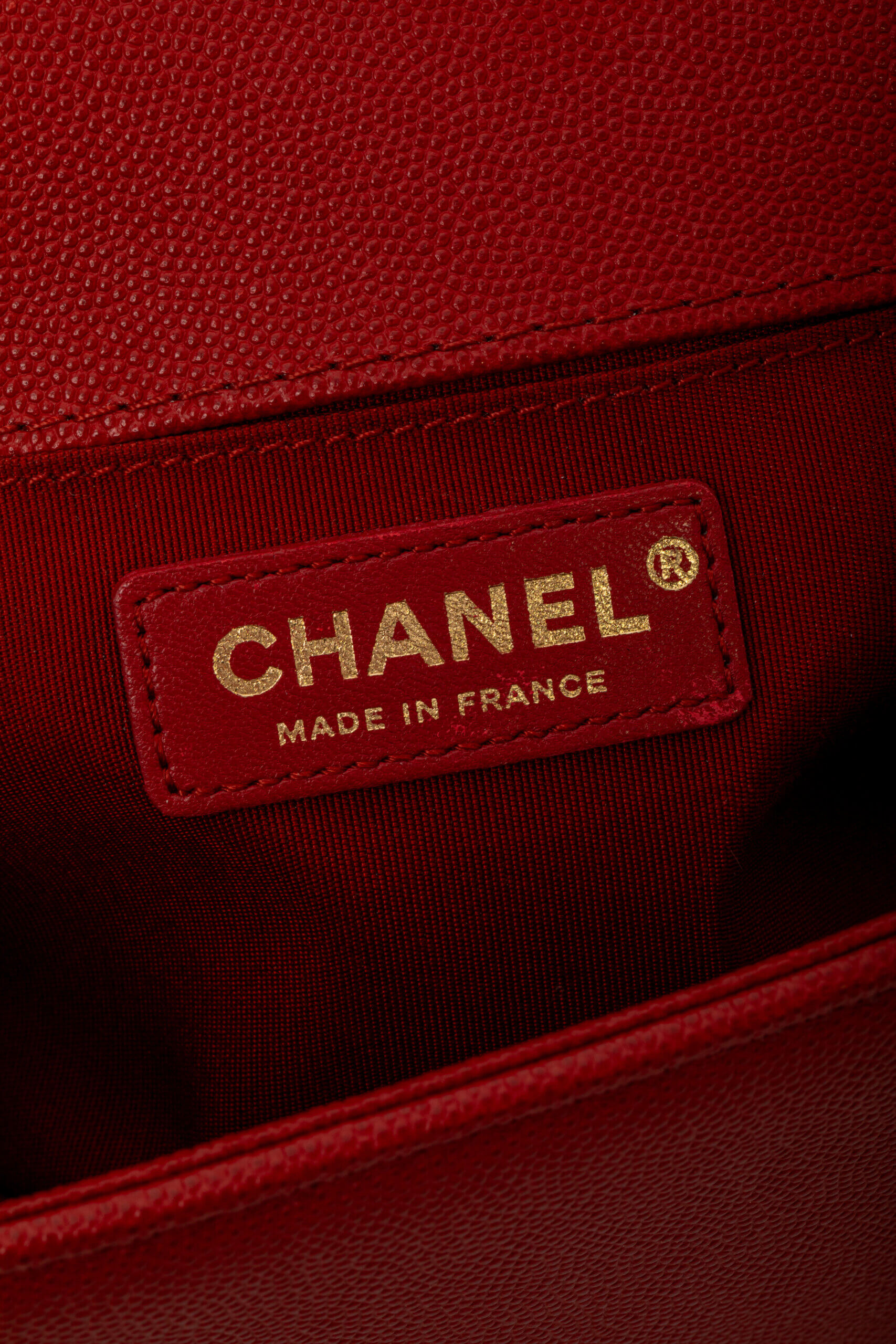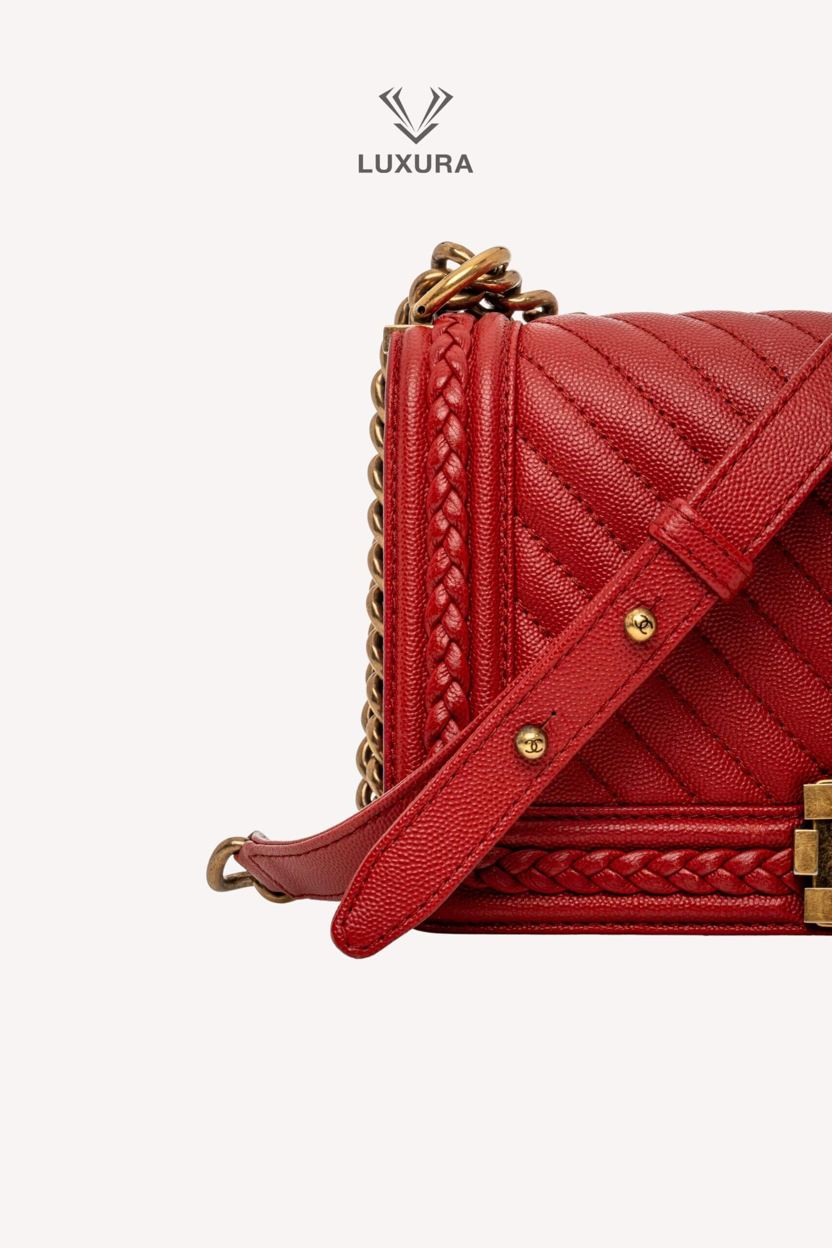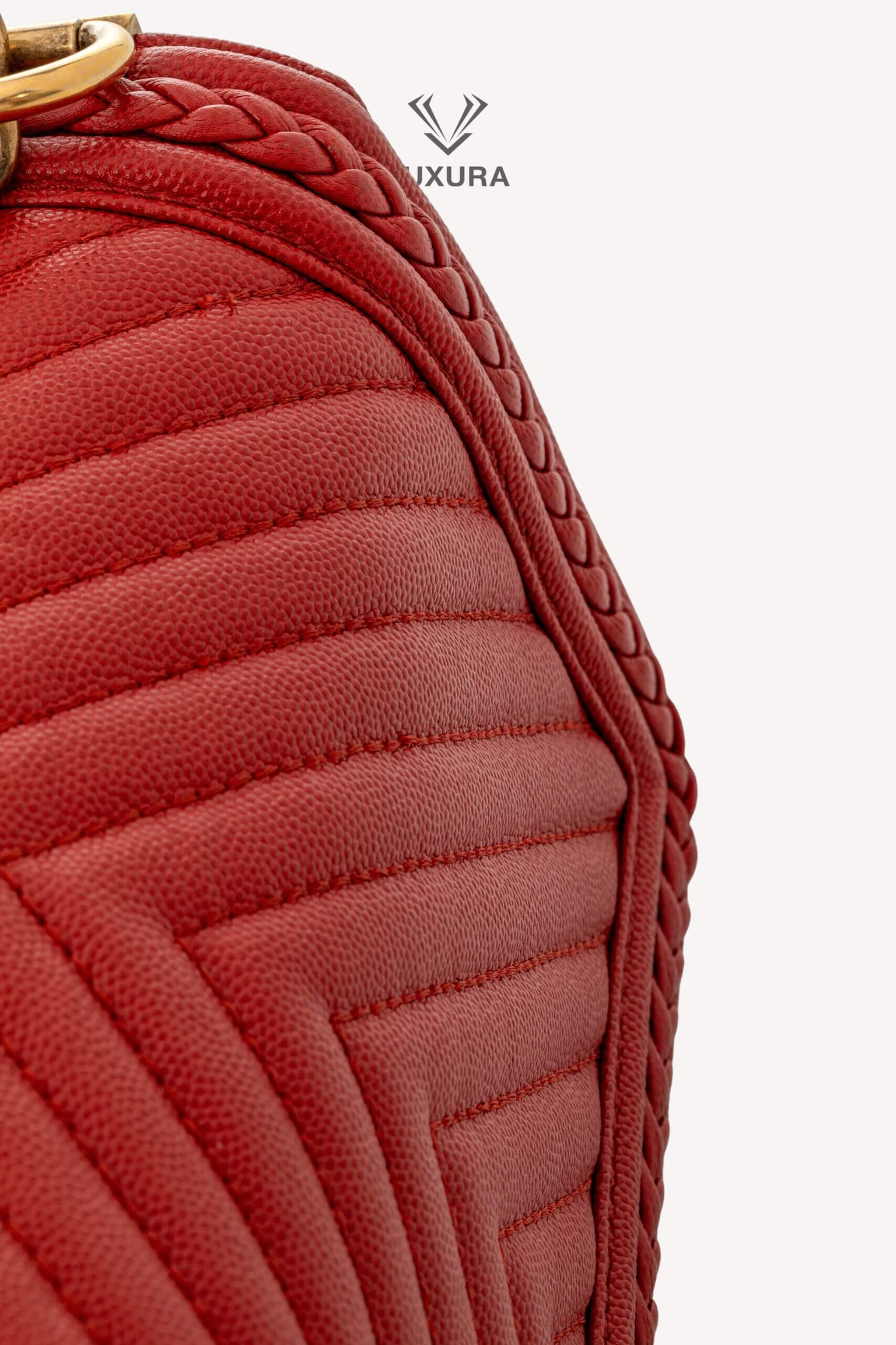 CHANEL Rare Le Boy Caviar Leather Chevron Braided Trim Rosu, Rosu – Genti de colecție