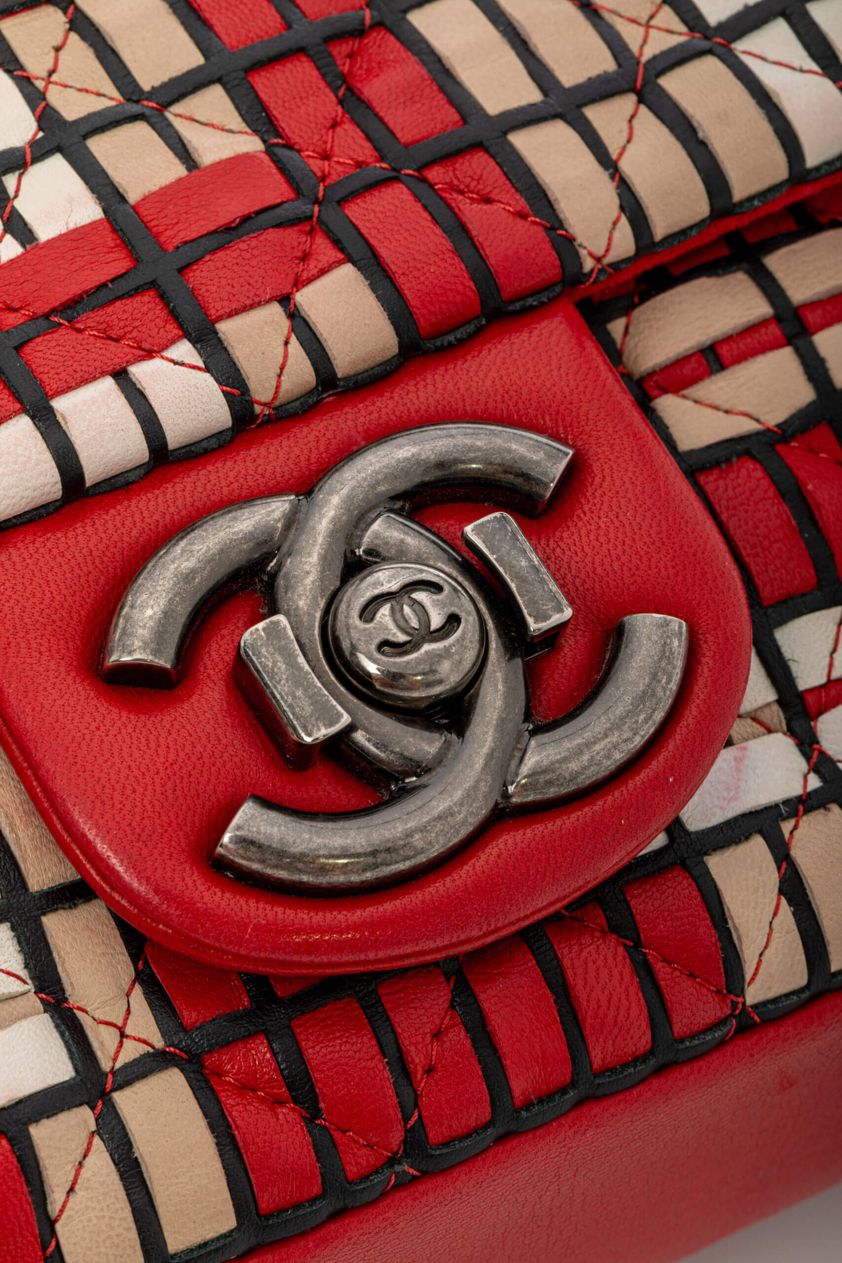 CHANEL Red Medium CC Matelasse Shouder Bag Beige Rosu/ Bej/ Negru, Gri/ Rosu – Accesorii de colecție