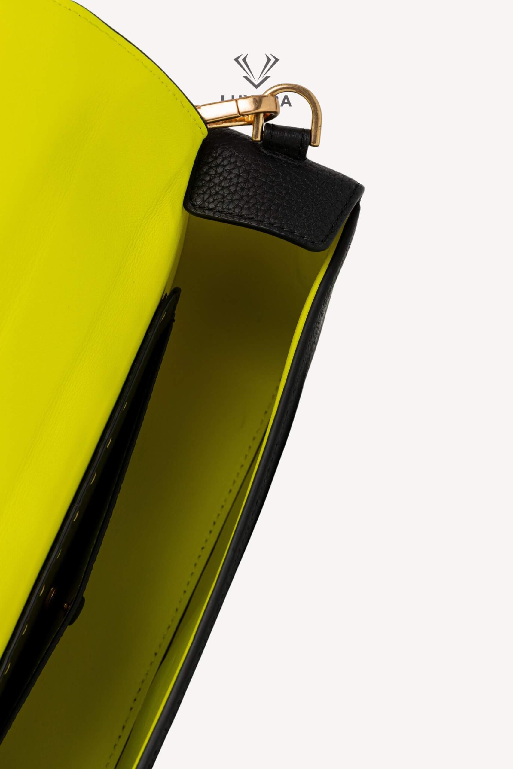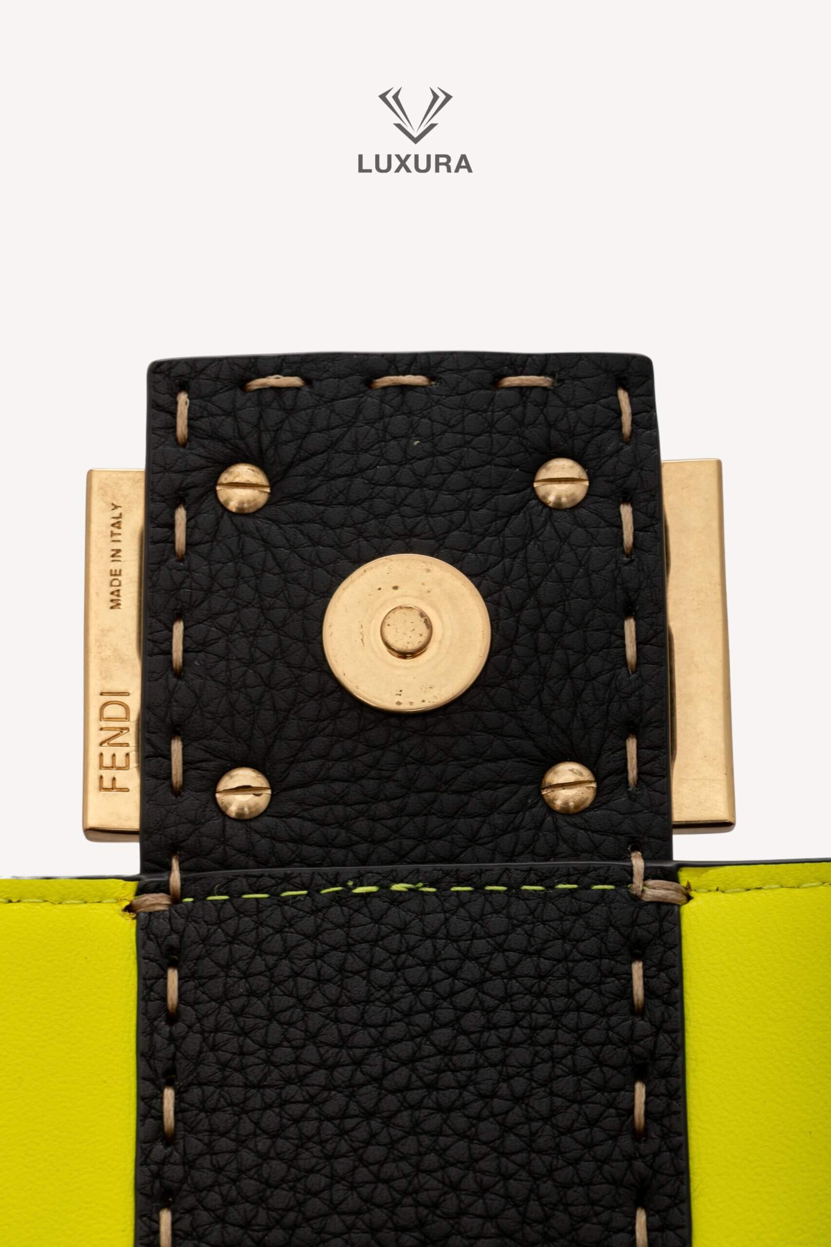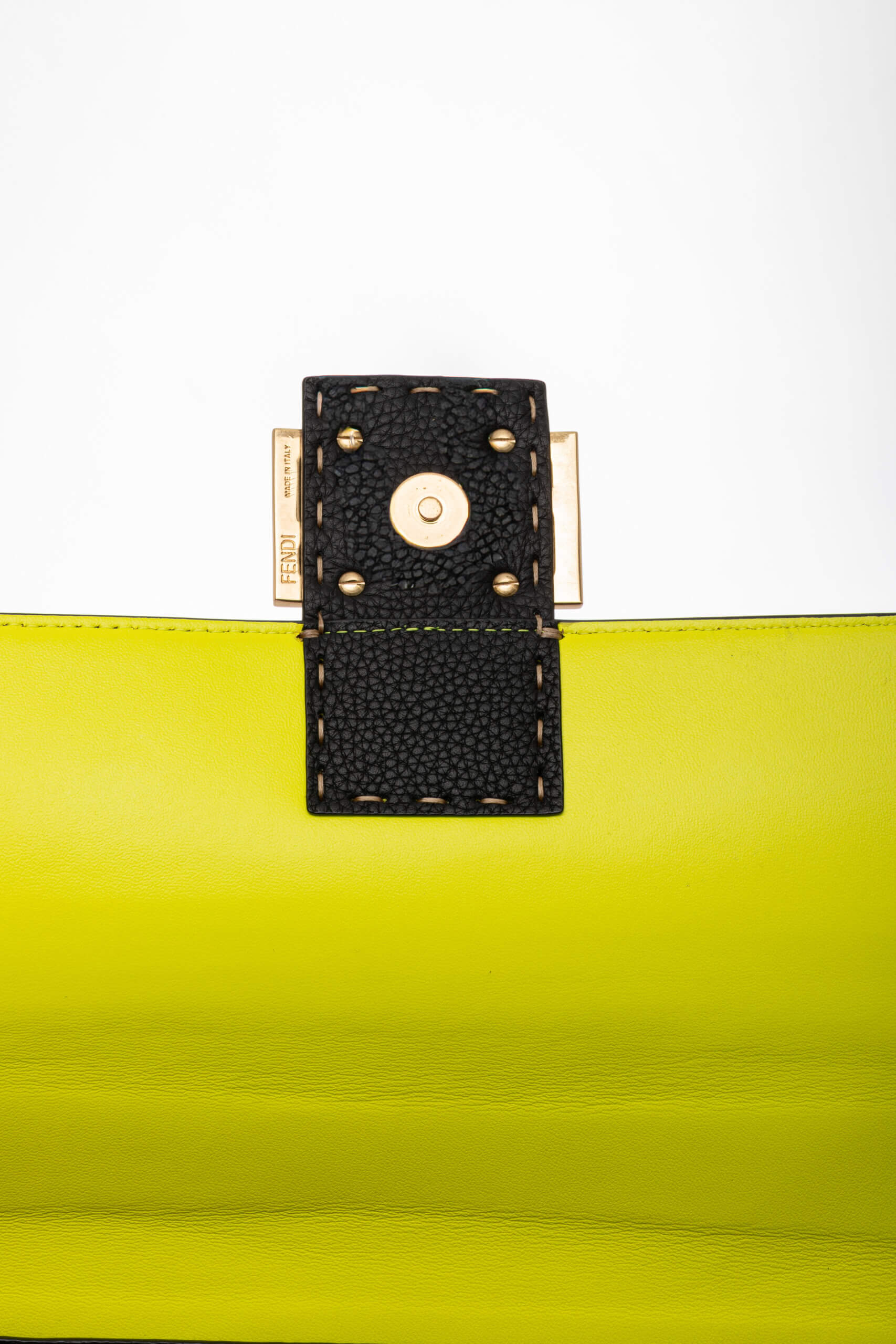FENDI Baguette Selleria Leather Shoulder Bag Black Negru, Verde – Genti de colecție