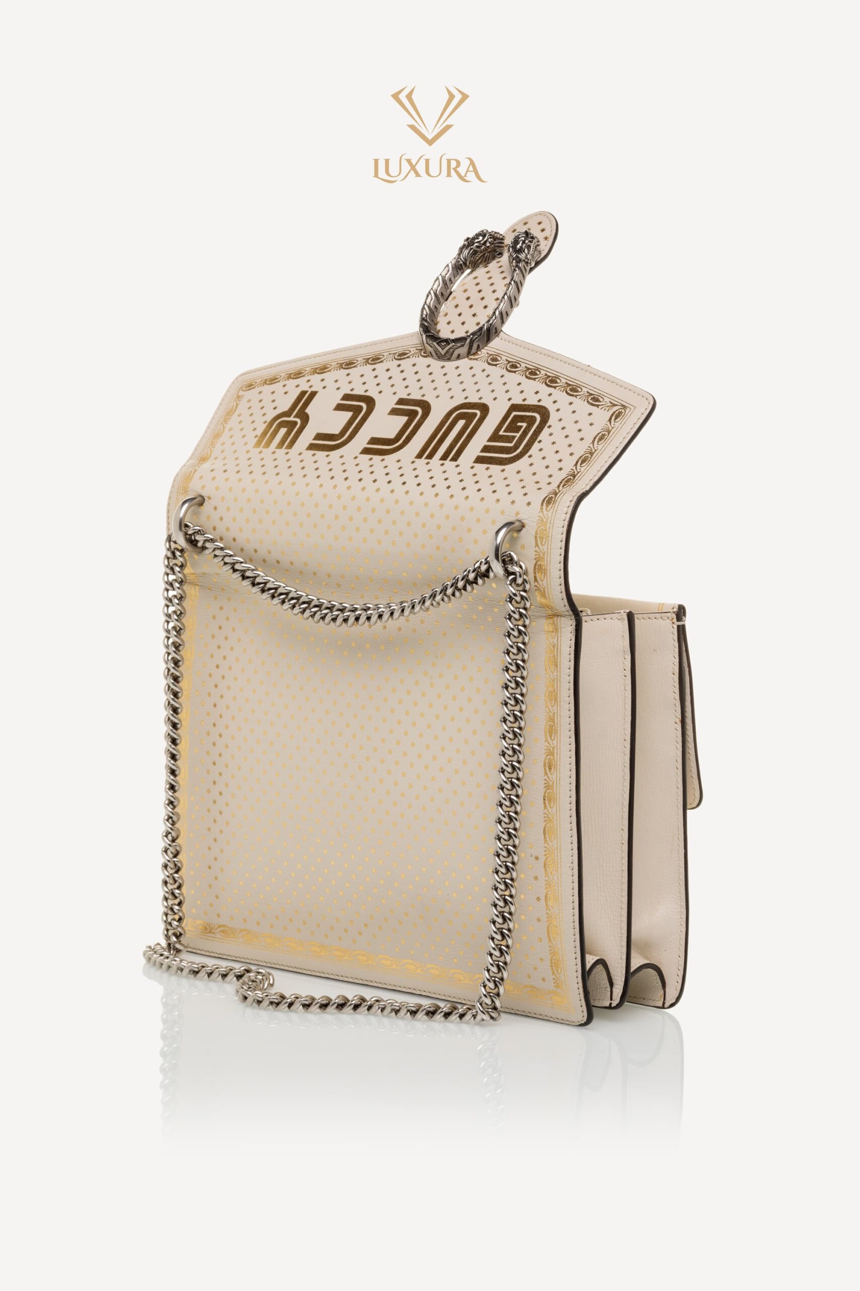 Inspirat de Dionysus, zeul grec al vinului, al fertilității și al excesului general, și marcat de închiderea cu capetele de tigru, Dionysus a devenit imediat un element de bază al casei când Alessandro Michele a preluat frâiele lui Gucci în 2015.