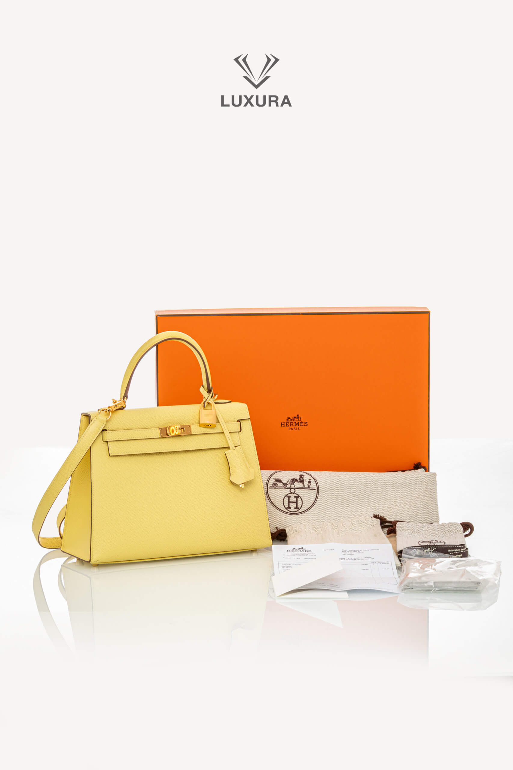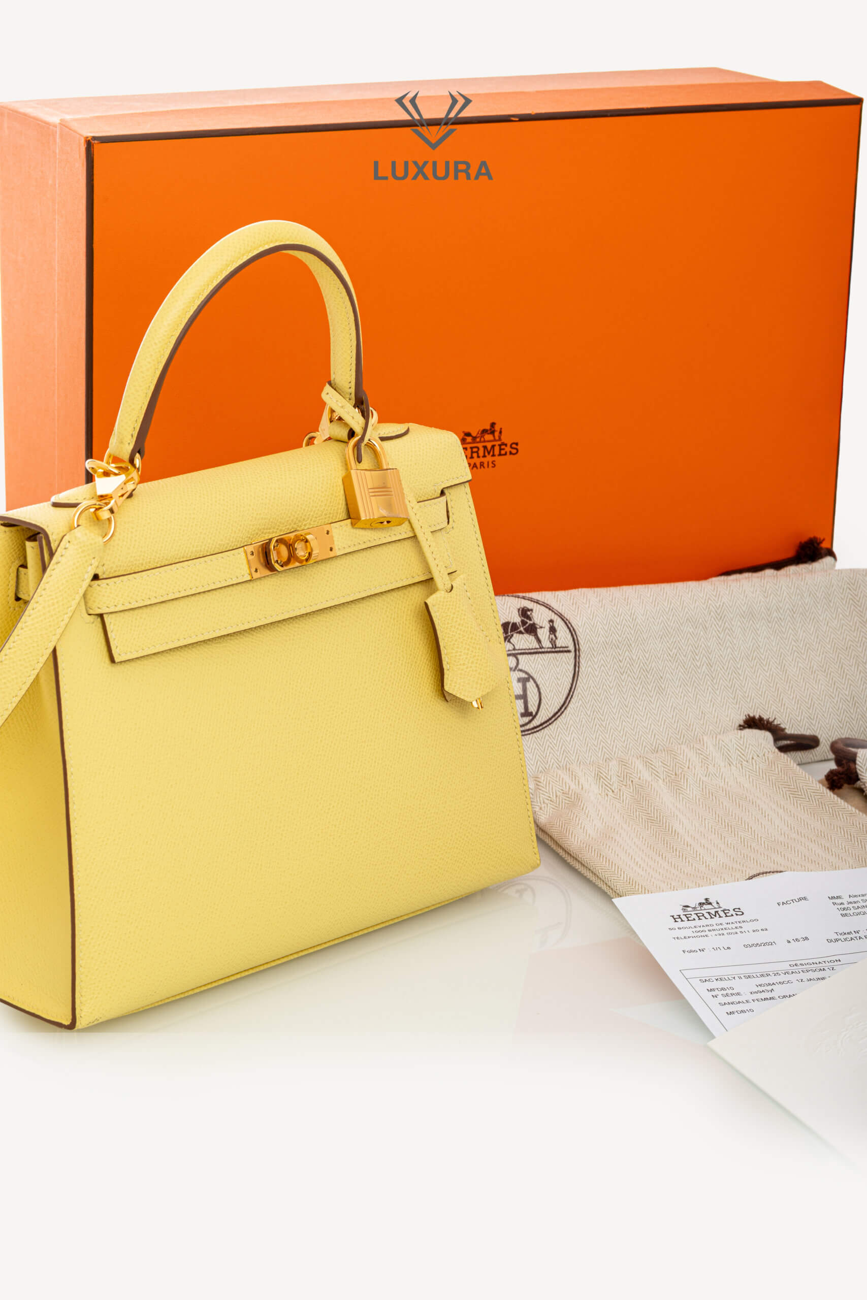 • Model: Kelly 25 Sellier Jaune Poussin Gold Hardware