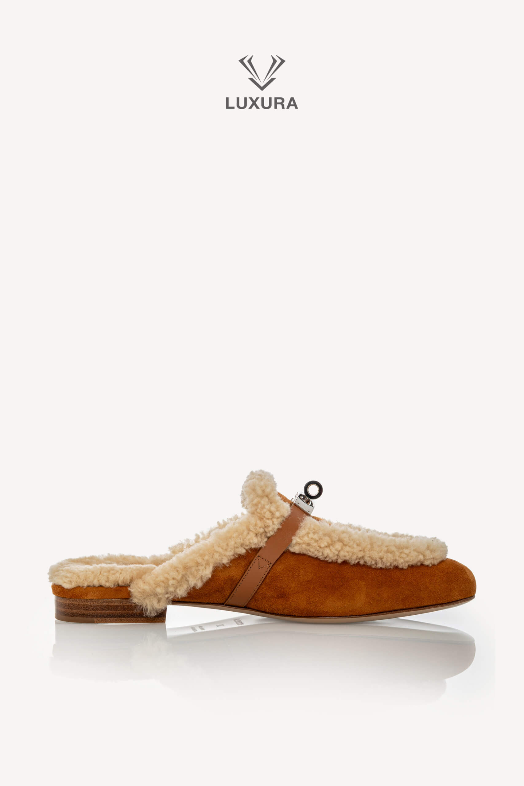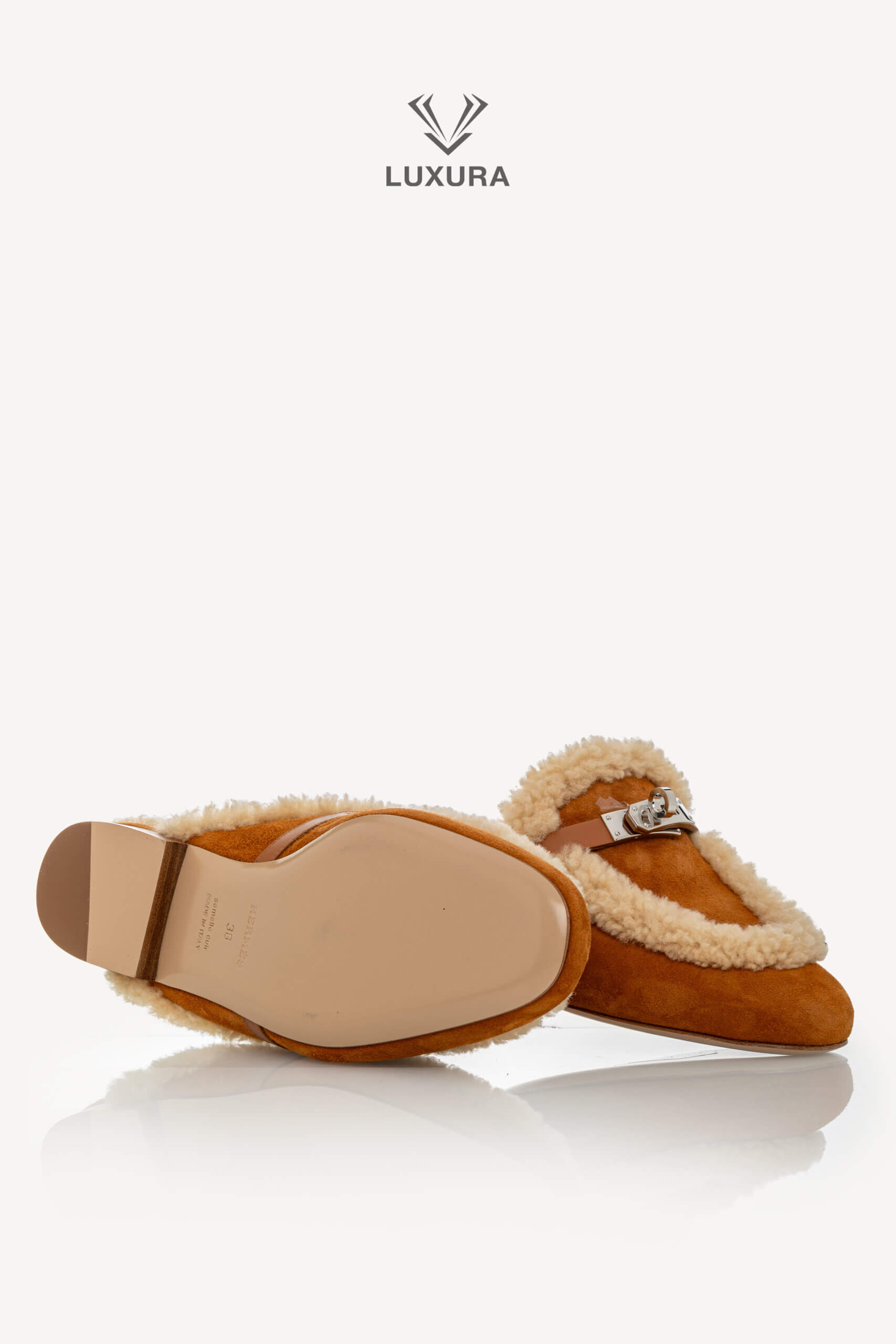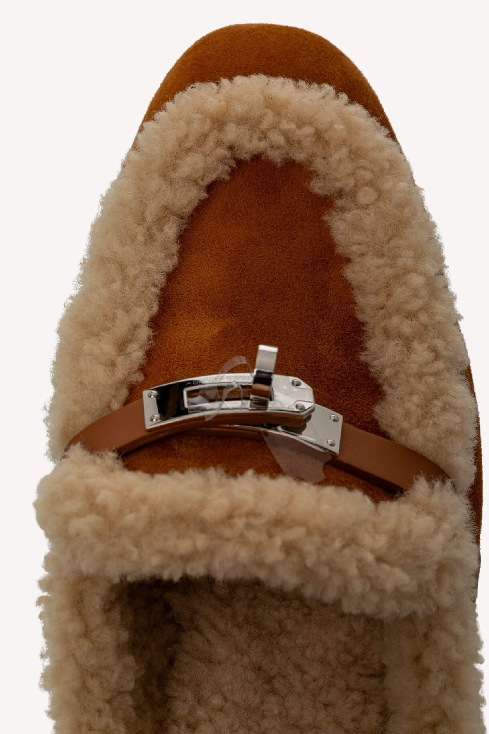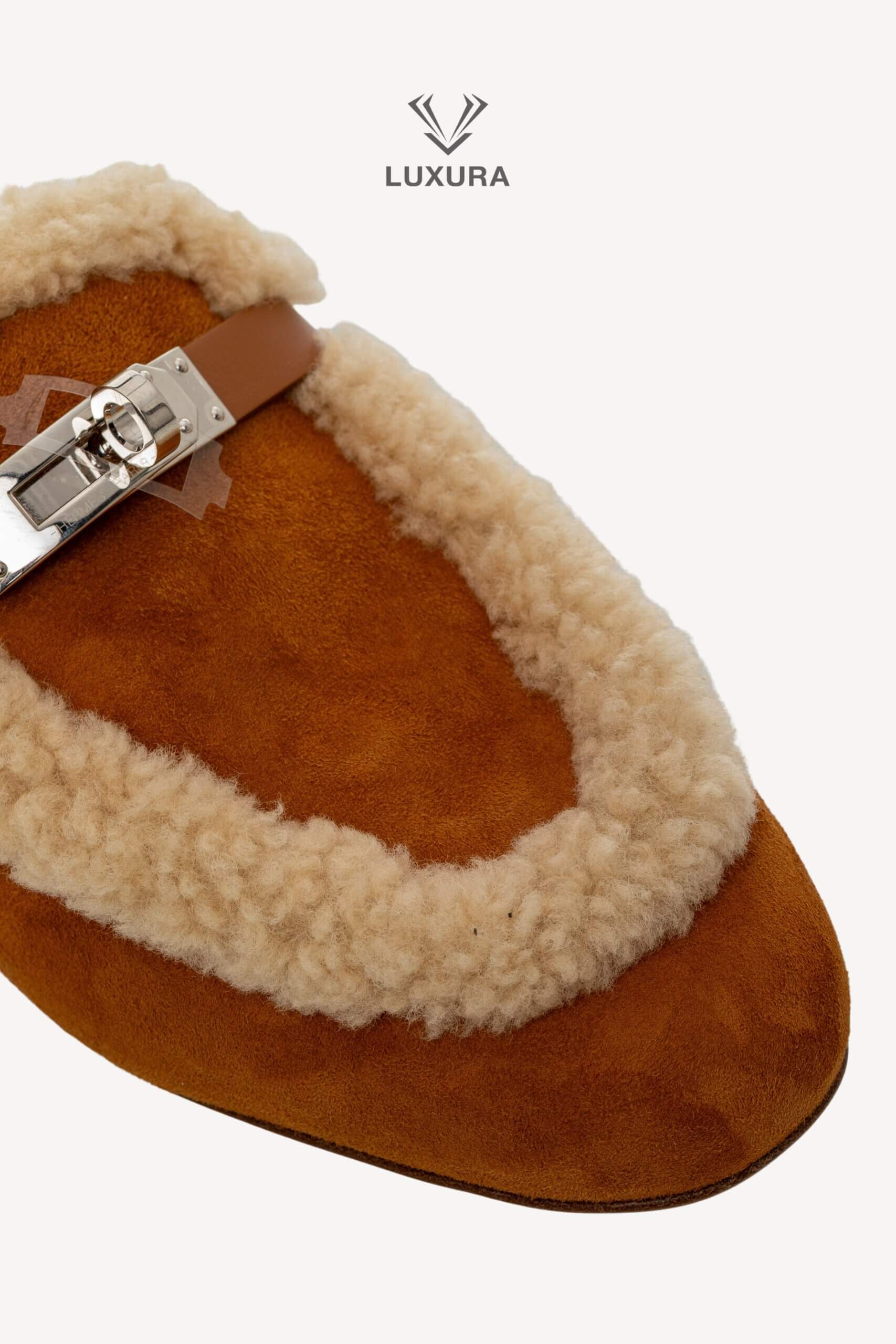HERMES Shearling Suede Oz Mules Naturel 38 Naturel, Naturel – Incaltaminte de colecție