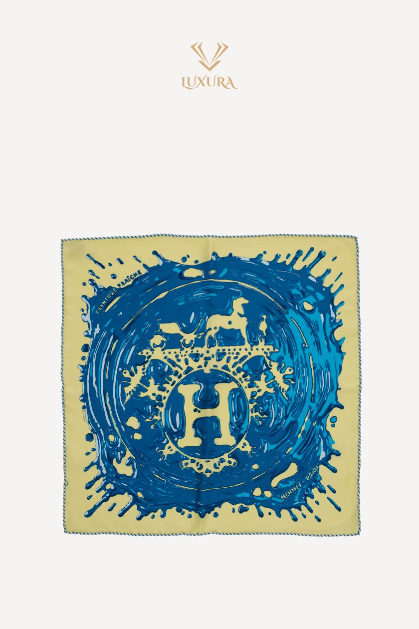 Silk Peinture Fraiche Scarf 45 Jaune Soufre Bleu