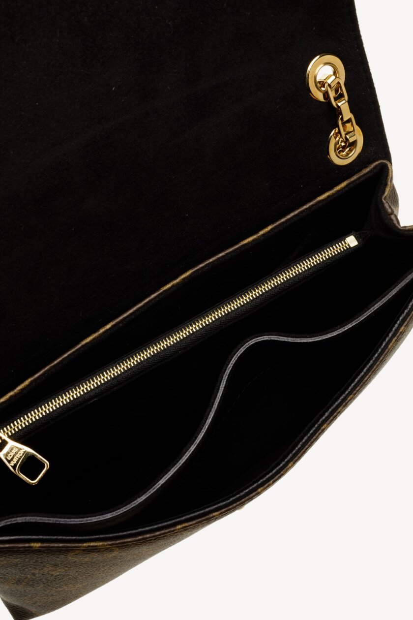 Pallas Shoulder Bag in Brown Monogram Canvas and Black Leather