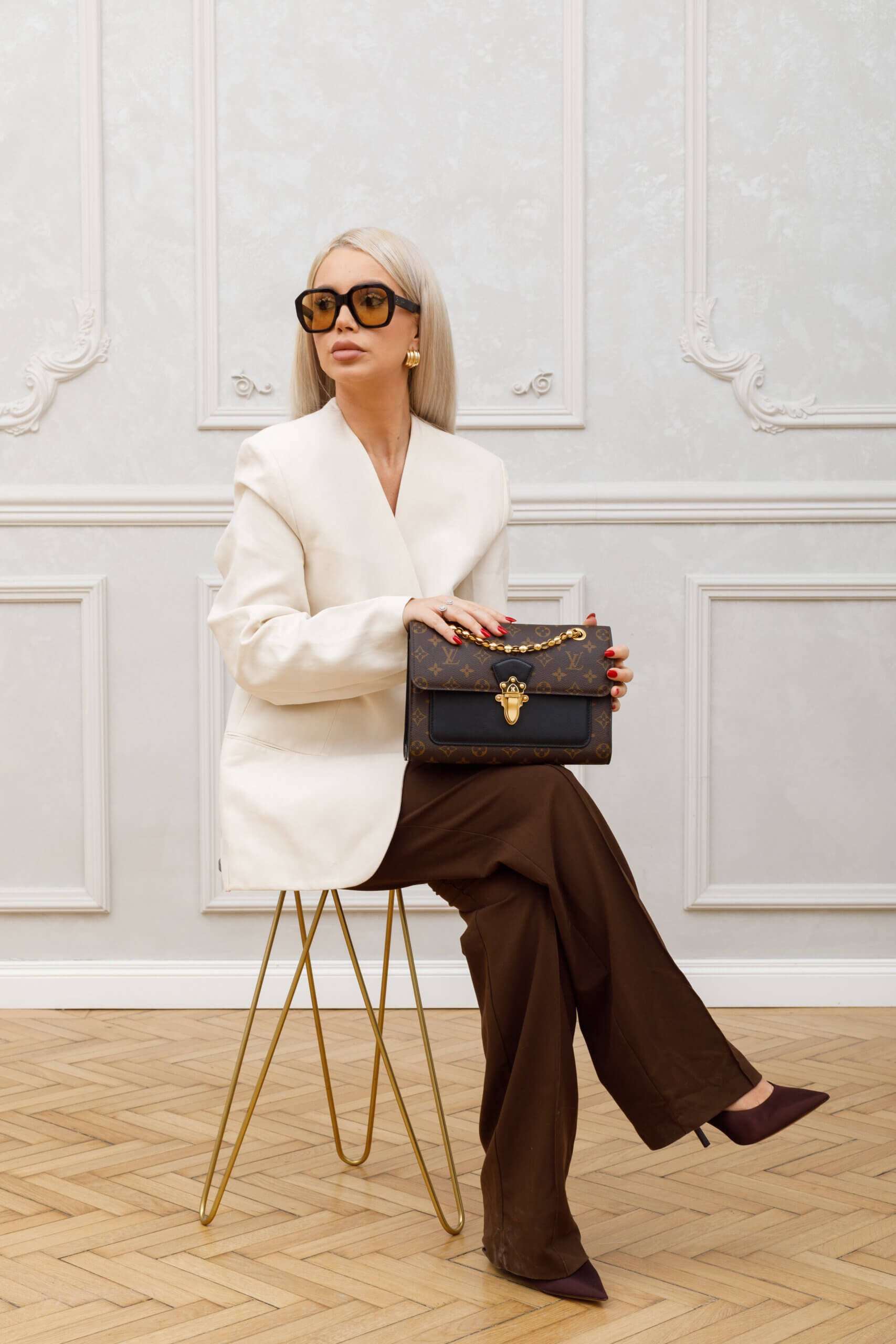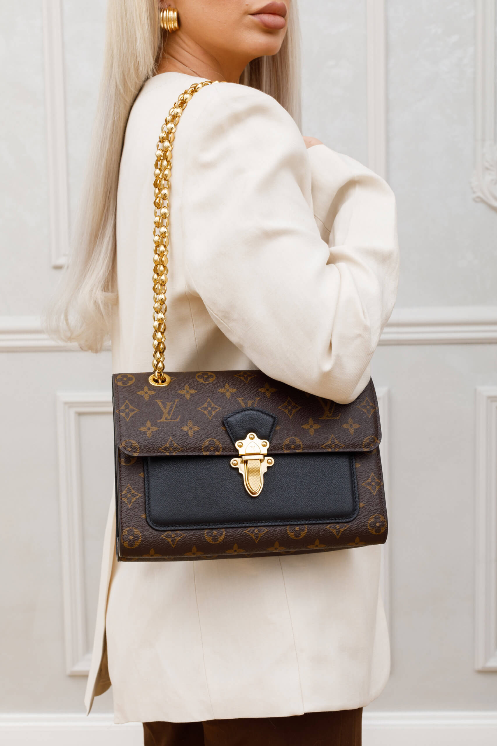 Geanta cu lanț Victoire combină pânza Monogram cu pielea netedă colorată în nuanța cafelei pentru un accesoriu sofisticat care poate fi purtat toată ziua, ba chiar și seara. Închizătoarea aurie este modelată după încuietoarea bagajelor clasice Louis Vuitton, în timp ce cureaua glisantă cu lanț este ecoul imprimeului Malletage care a căptușit acele cufere istorice.