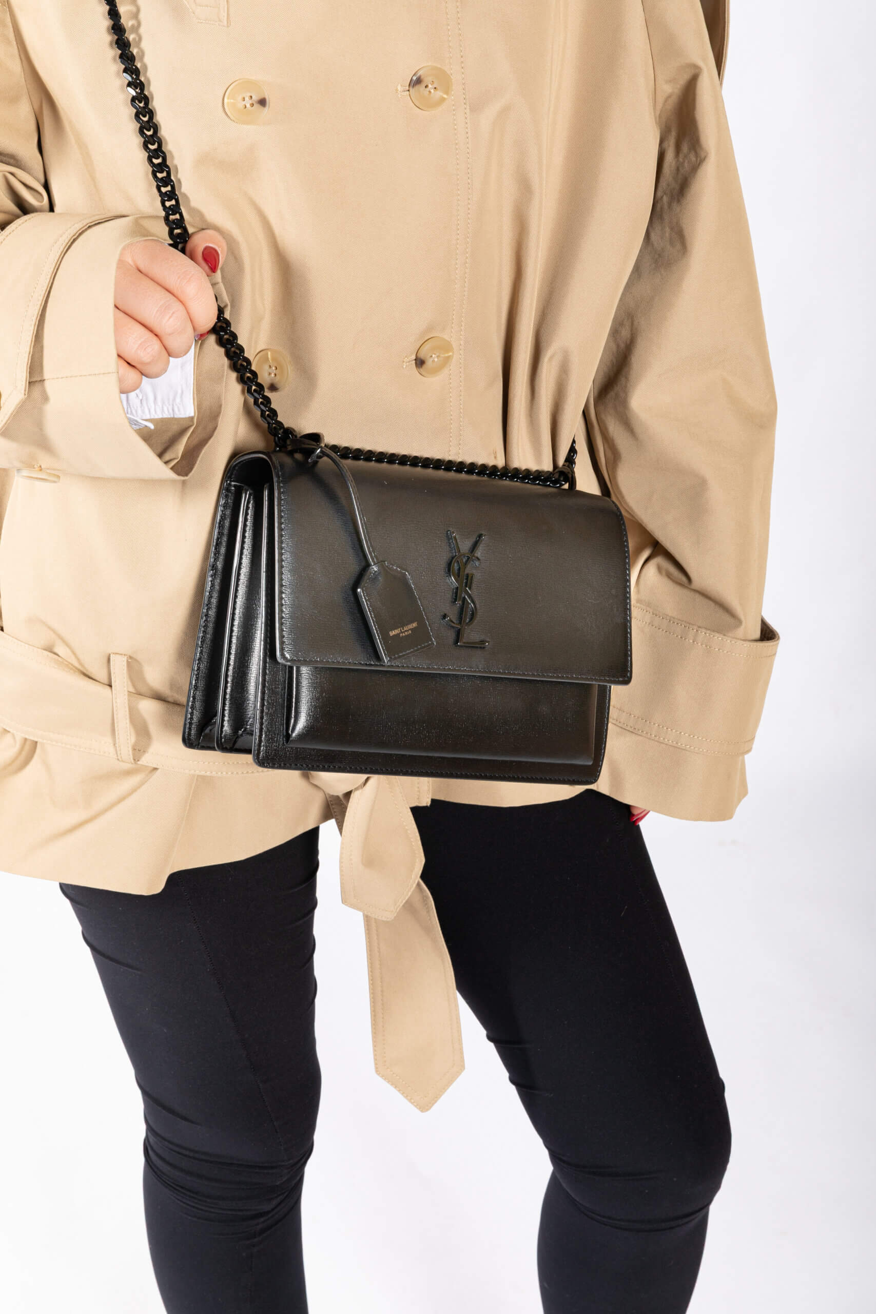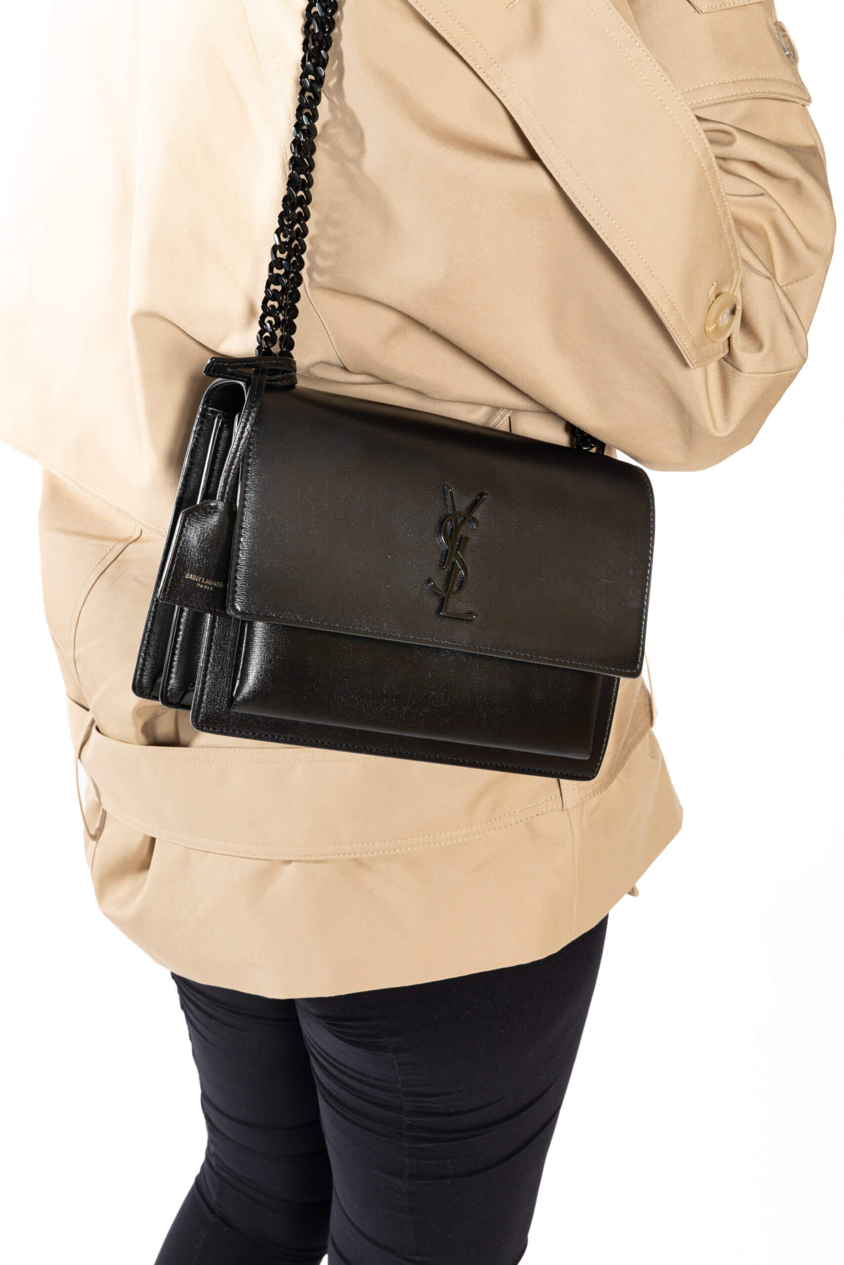 SAINT LAURENT Sunset Medium in Smooth Leather Black Negru, Negru – Genti de colecție