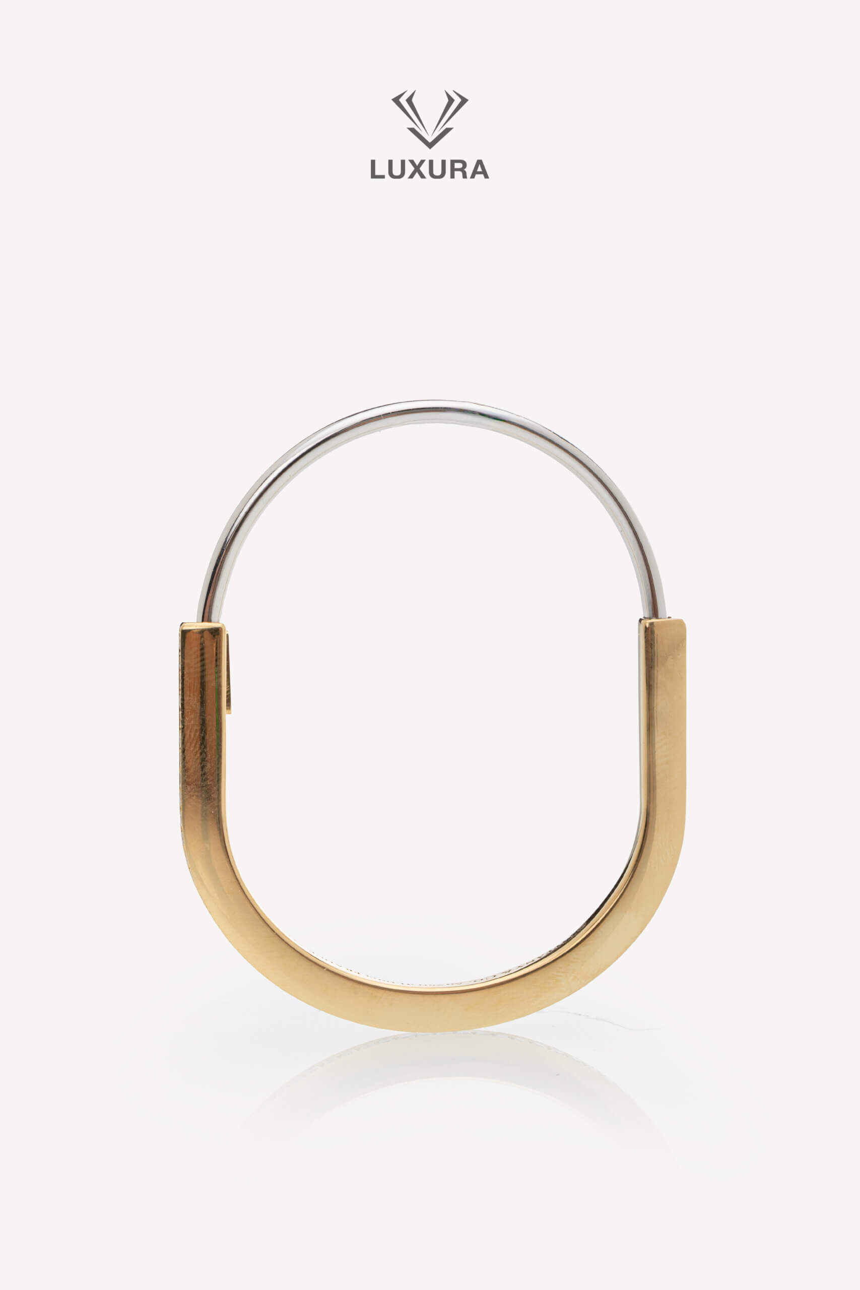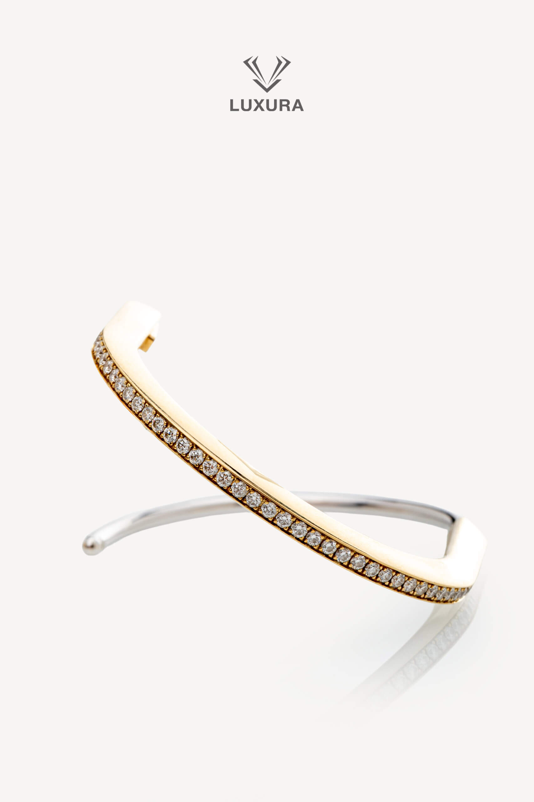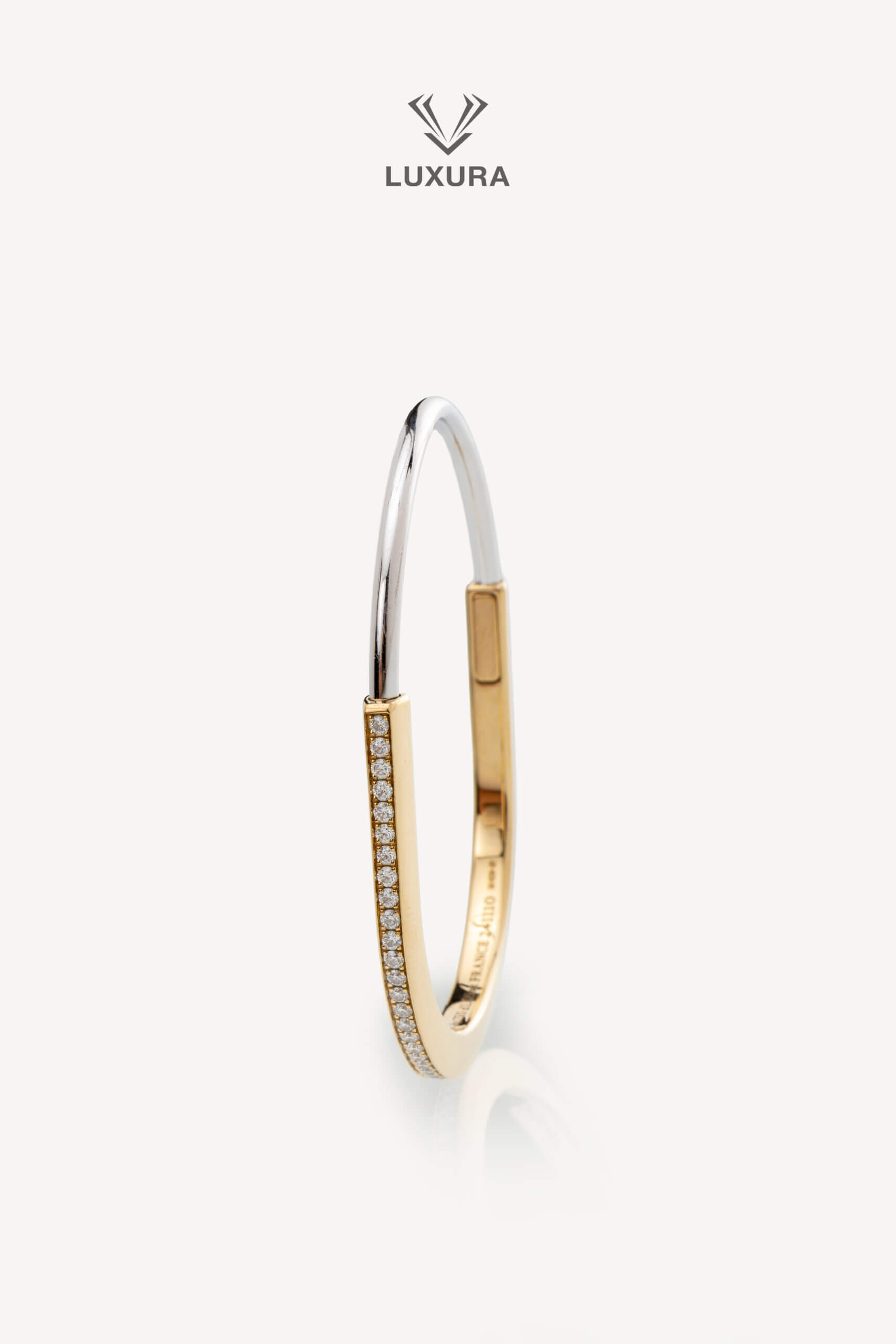 Lock Narrow Bangle in Yellow and White Gold with Half Pave Diamonds