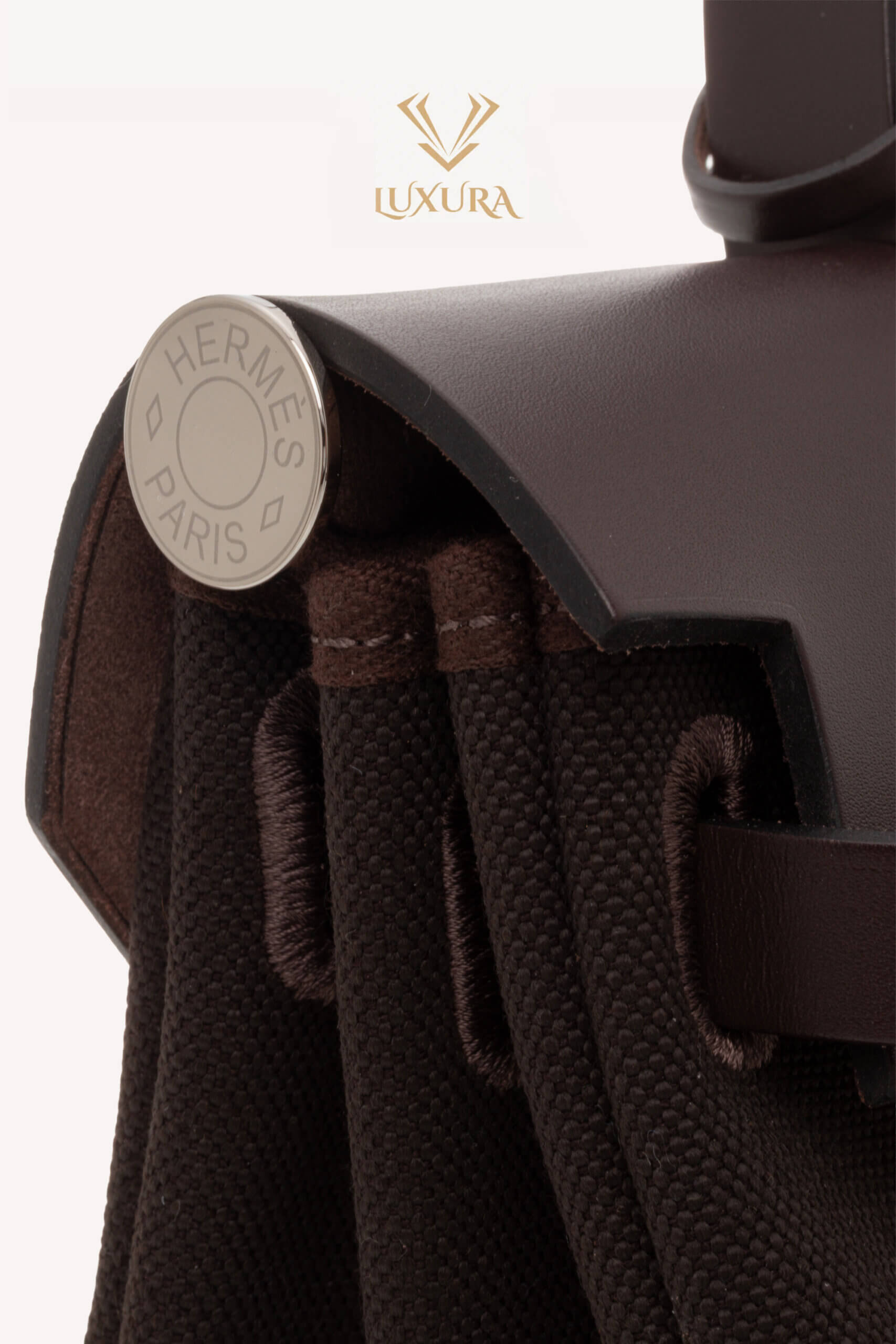 HERMES Herbag Zip RT 31 Toile Militaire Vache Hunter Dark Bronze Ebene – Genti de colecție