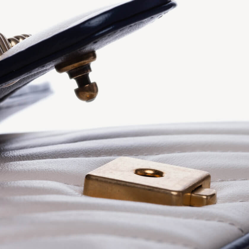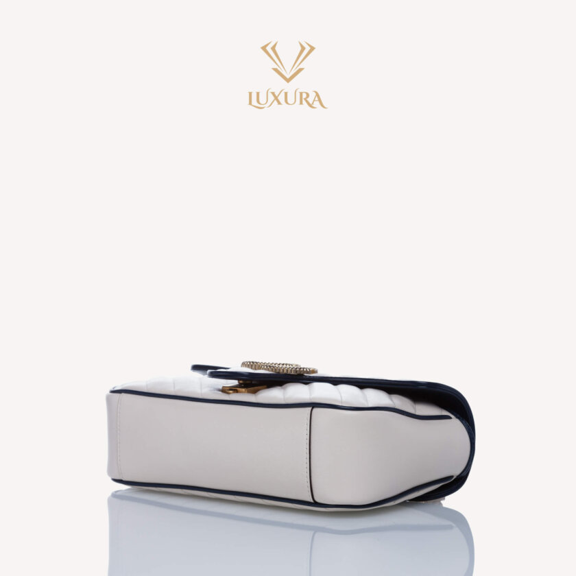 Calfskin matelasse Small GG Marmont in White Blue trim