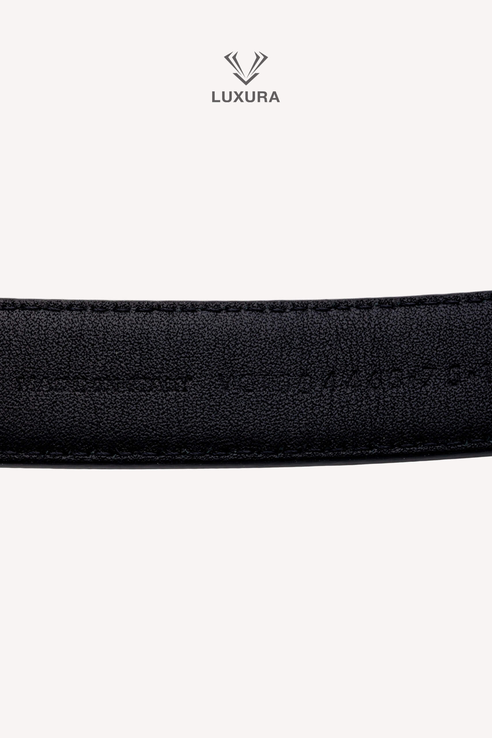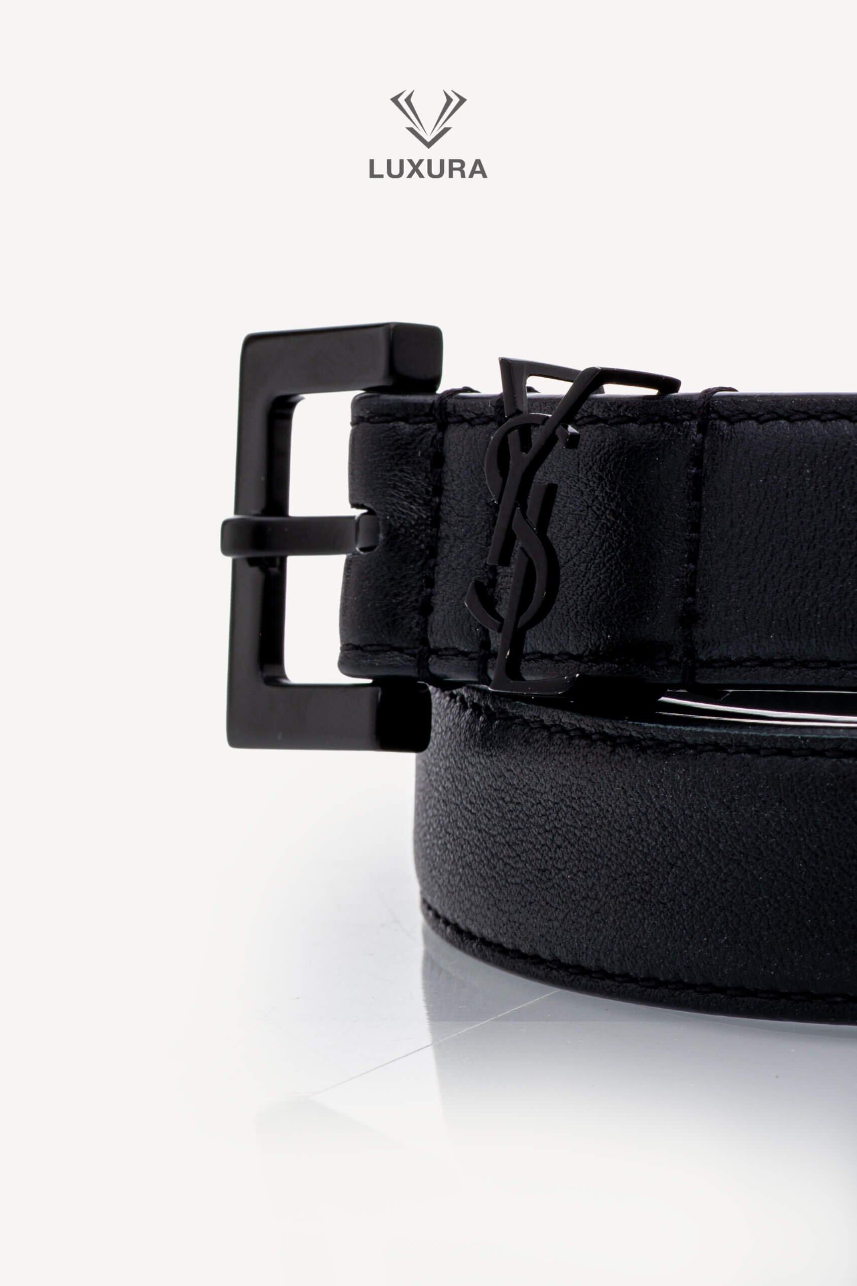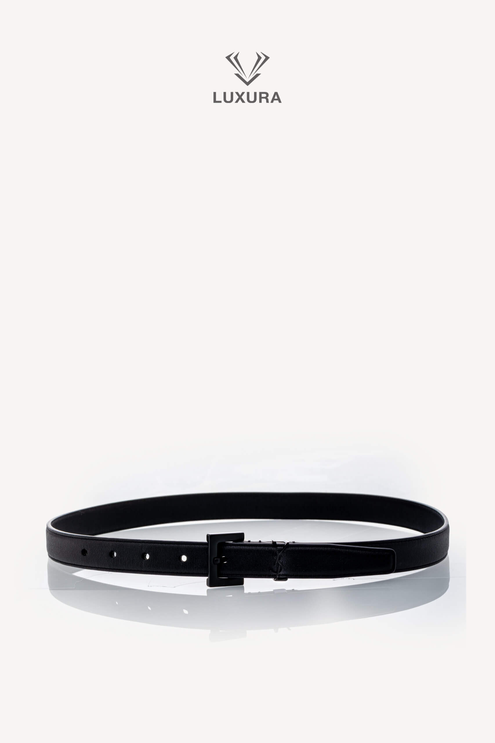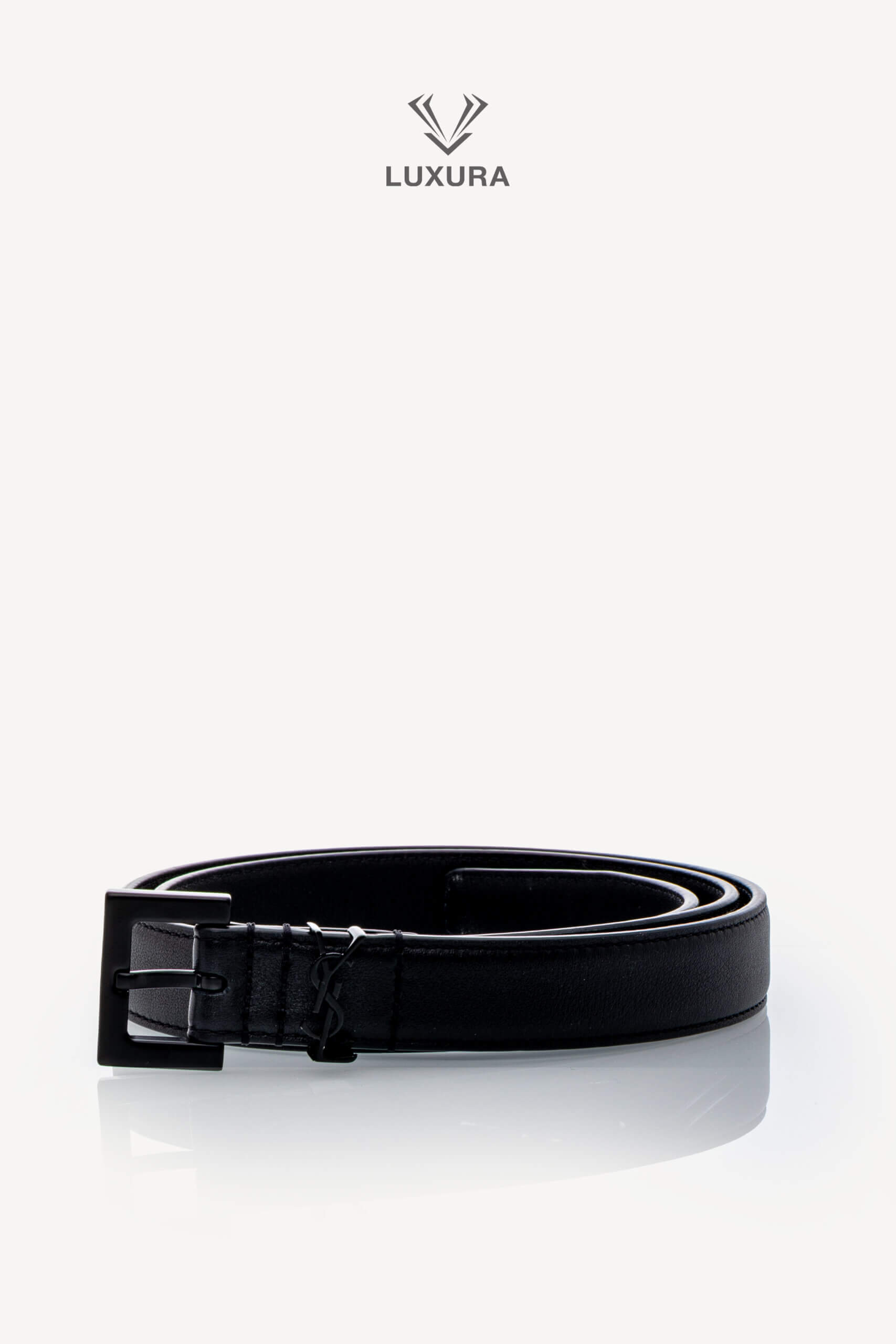 Cureaua Saint Laurent Monogram cu cataramă pătrată este confecționată din piele netedă ultramată, în culoarea negru. Măsoară 75 cm în lungime și 2 cm în lățime, fiind un accesoriu versatil pentru orice garderobă. Produsul este pre-owned, autentificat și livrat cu cutia originală și certificatul de conformitate. Luxura Elite este o platformă independentă de resale și nu este afiliată brandului Saint Laurent.