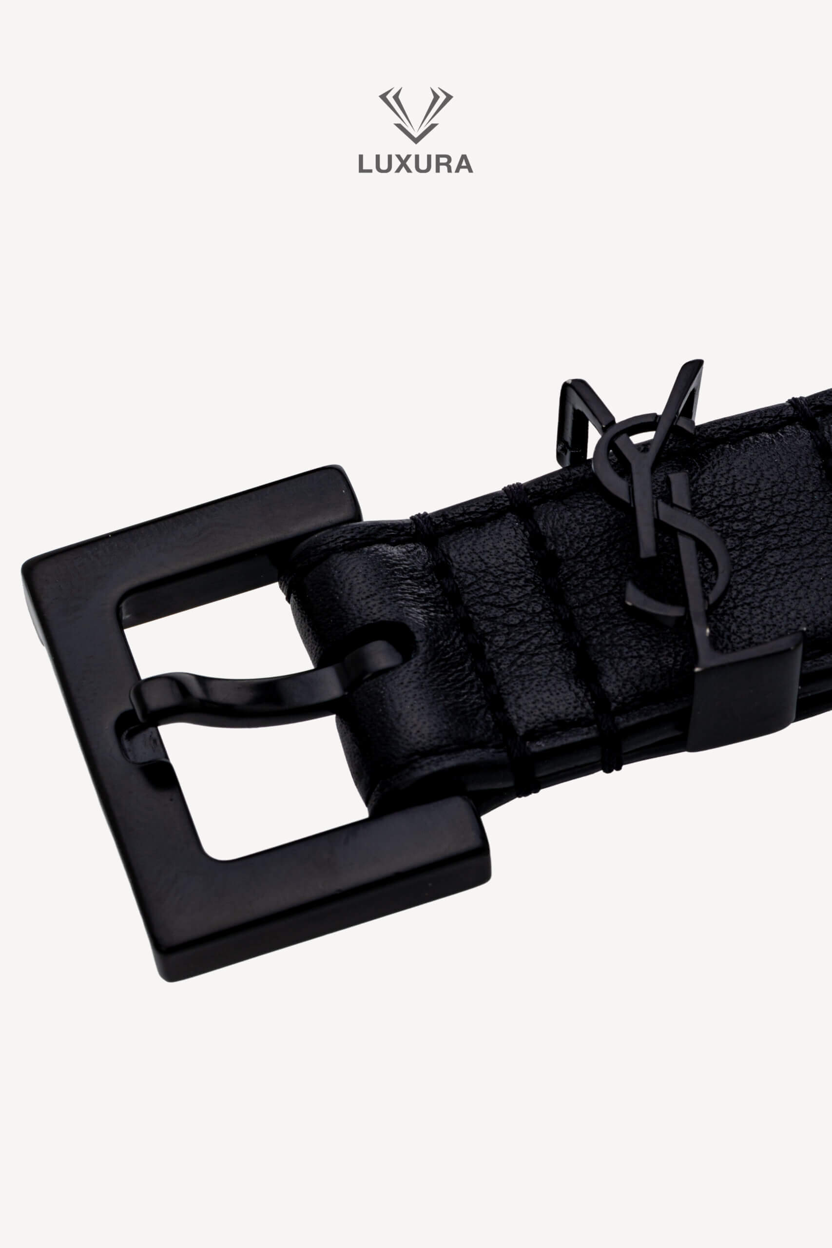 SAINT LAURENT Monogram Belt With Square Buckle In Smooth Leather Ultramatte Black Negru, Negru – Accesorii de colecție