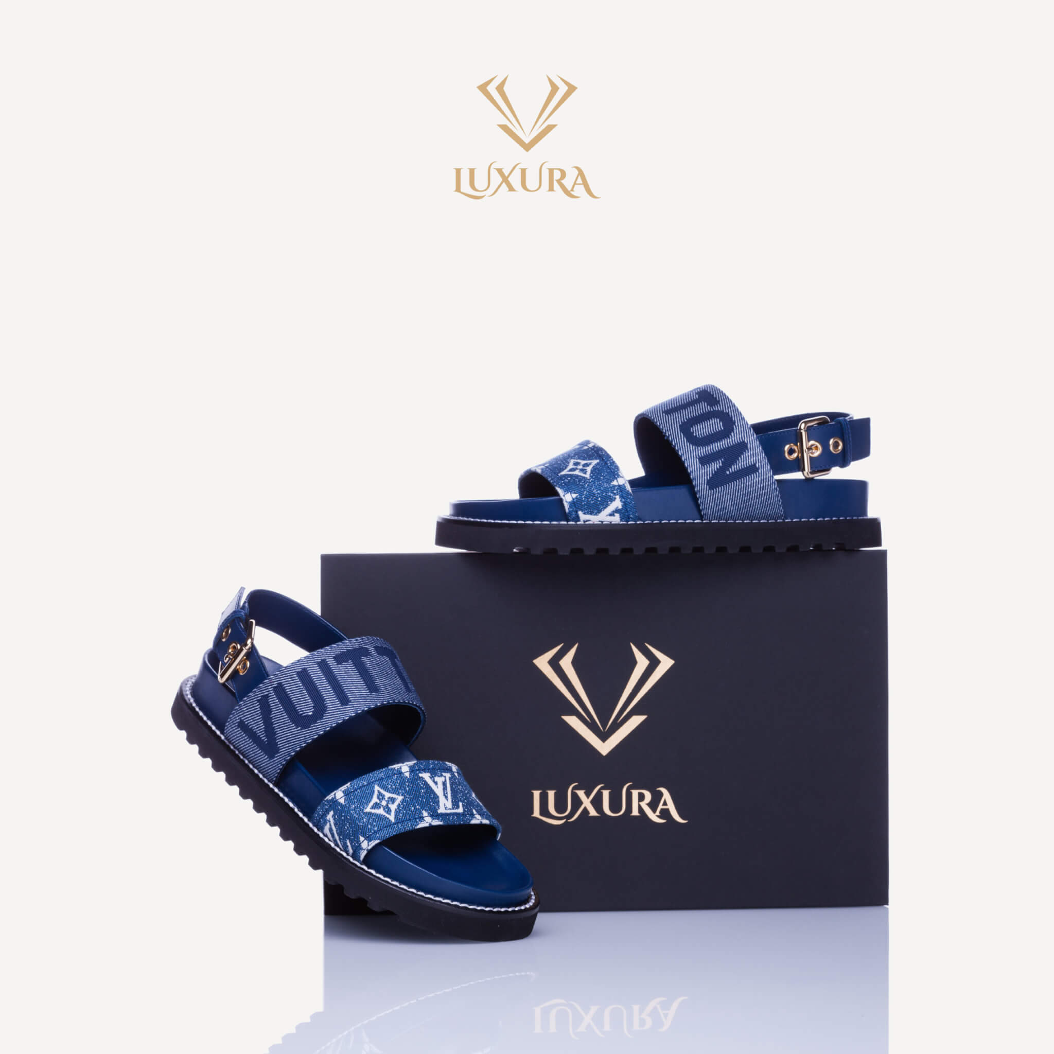 Sandala Paseo este realizata din pânză Monogram Denim, cu semnătură grafică Louis Vuitton pe una dintre cele două bretele din față. Pantoful sofisticat este caracterizat de cureaua din spate din piele de vițel ton pe ton, finisată cu o cataramă aurie gravată. Talpa anatomica si talpa de cauciuc ofera confort maxim.